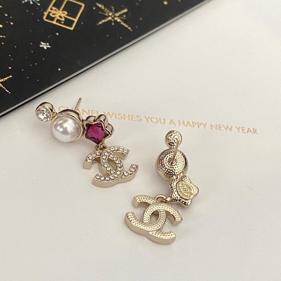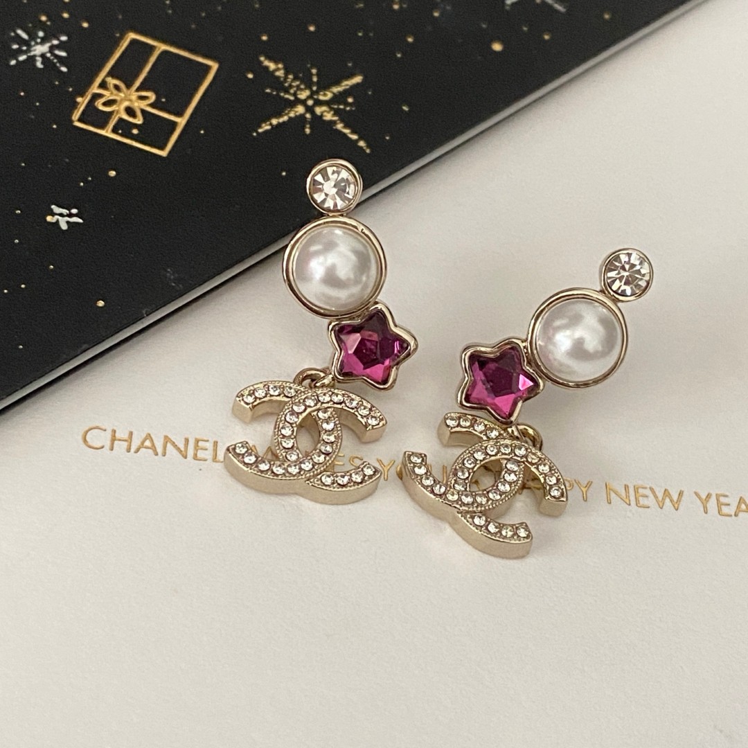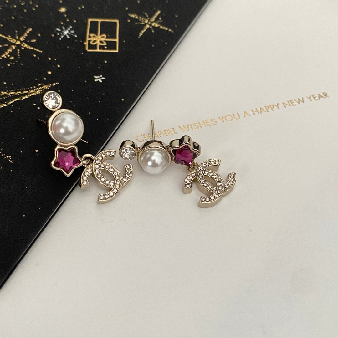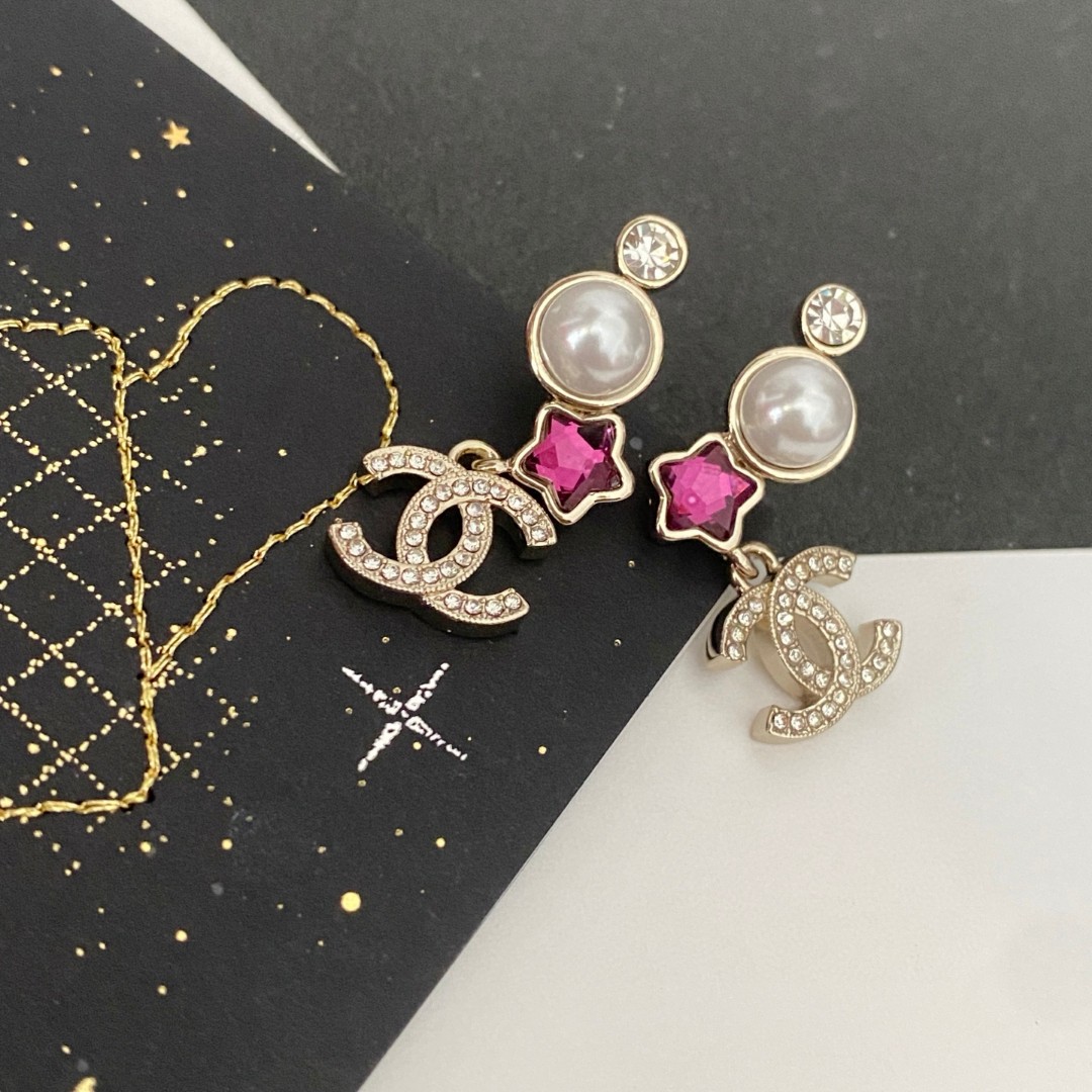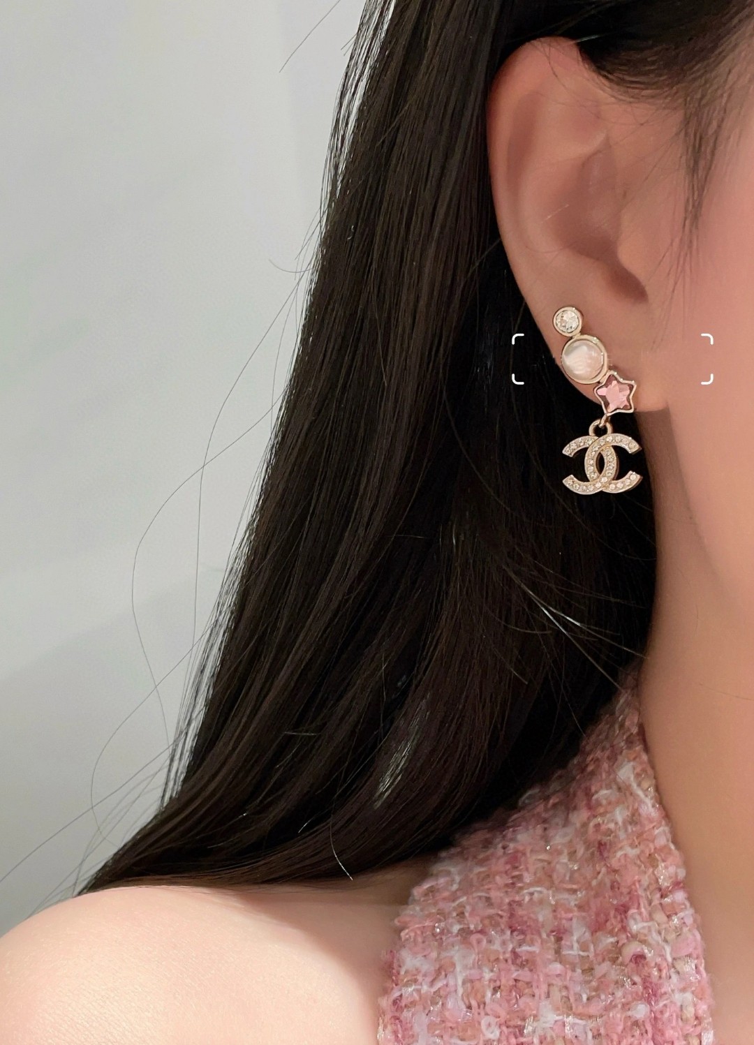 Home / Chanel Pink Diamond Star Pearl Double C Stud Earrings