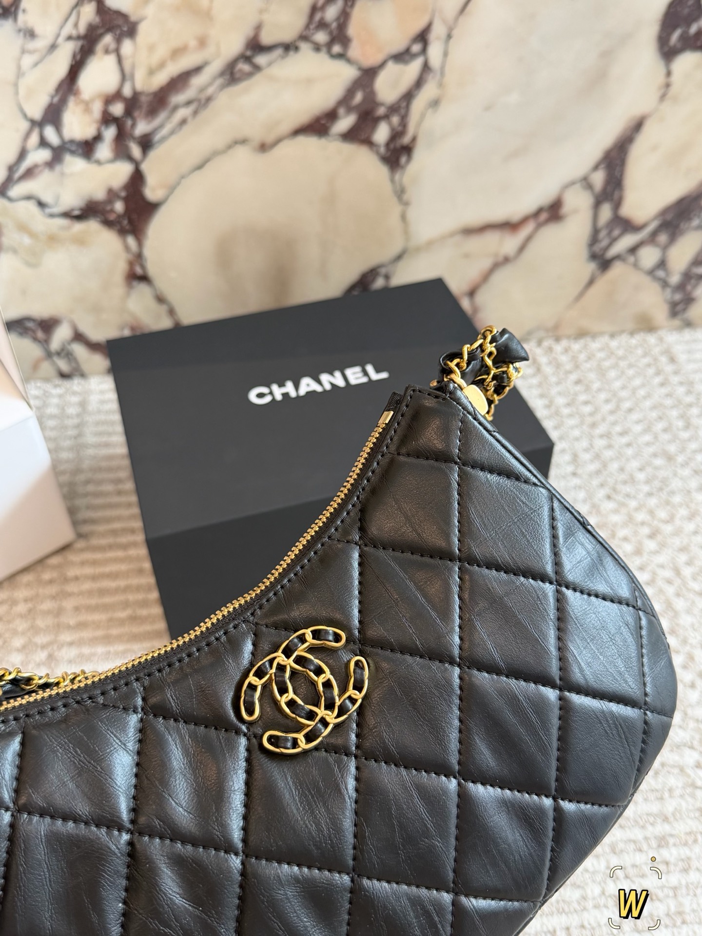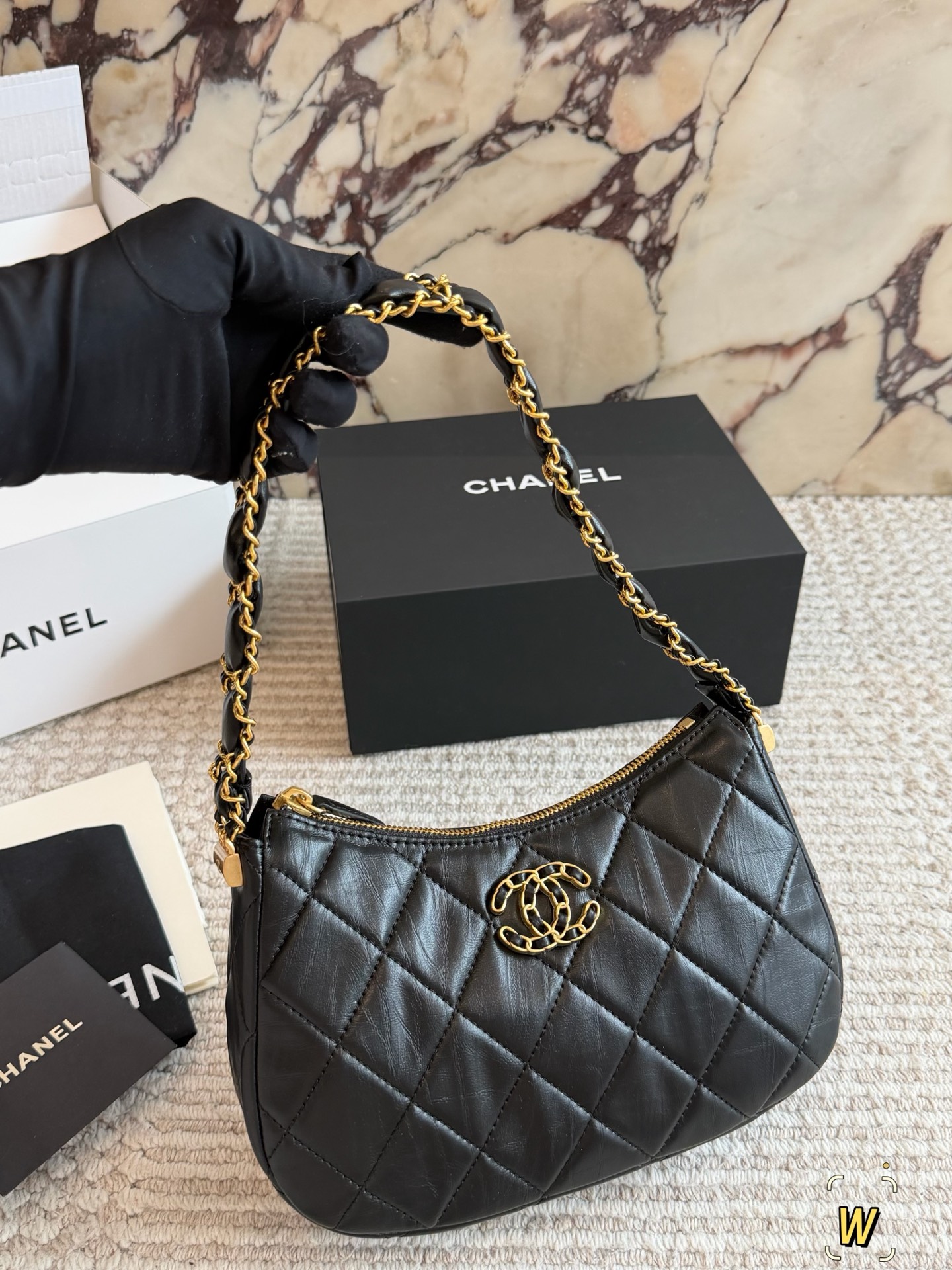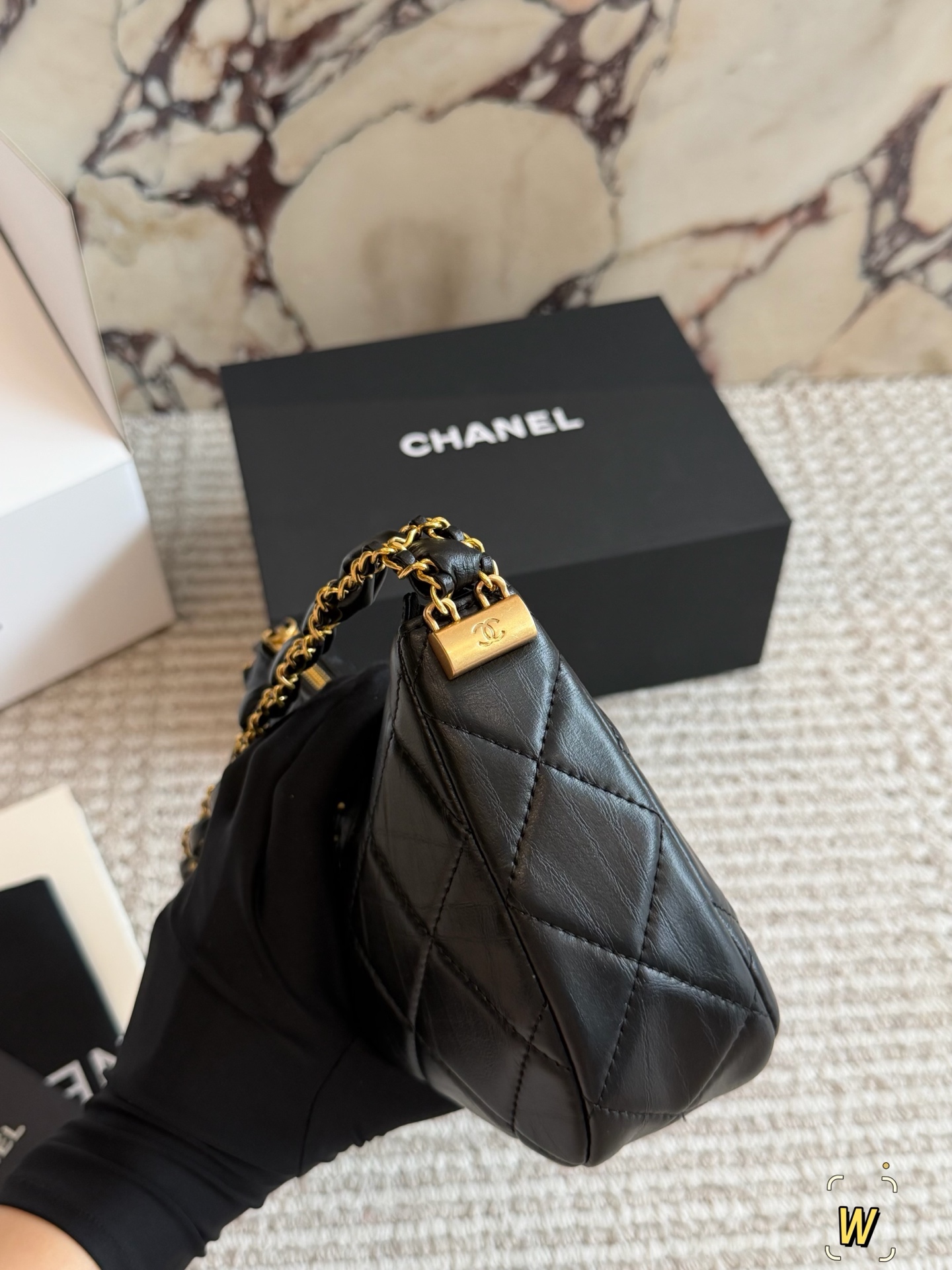 DetailChanel Mahjong BagA vintage black and gold 23k Chanel bag, a fashion "dark horse"!Exquisitely designed leather-threaded chain shoulder strapHigh-end, classic, and versatileThis 23k gold bestseller unlocks multiple styling possibilities.