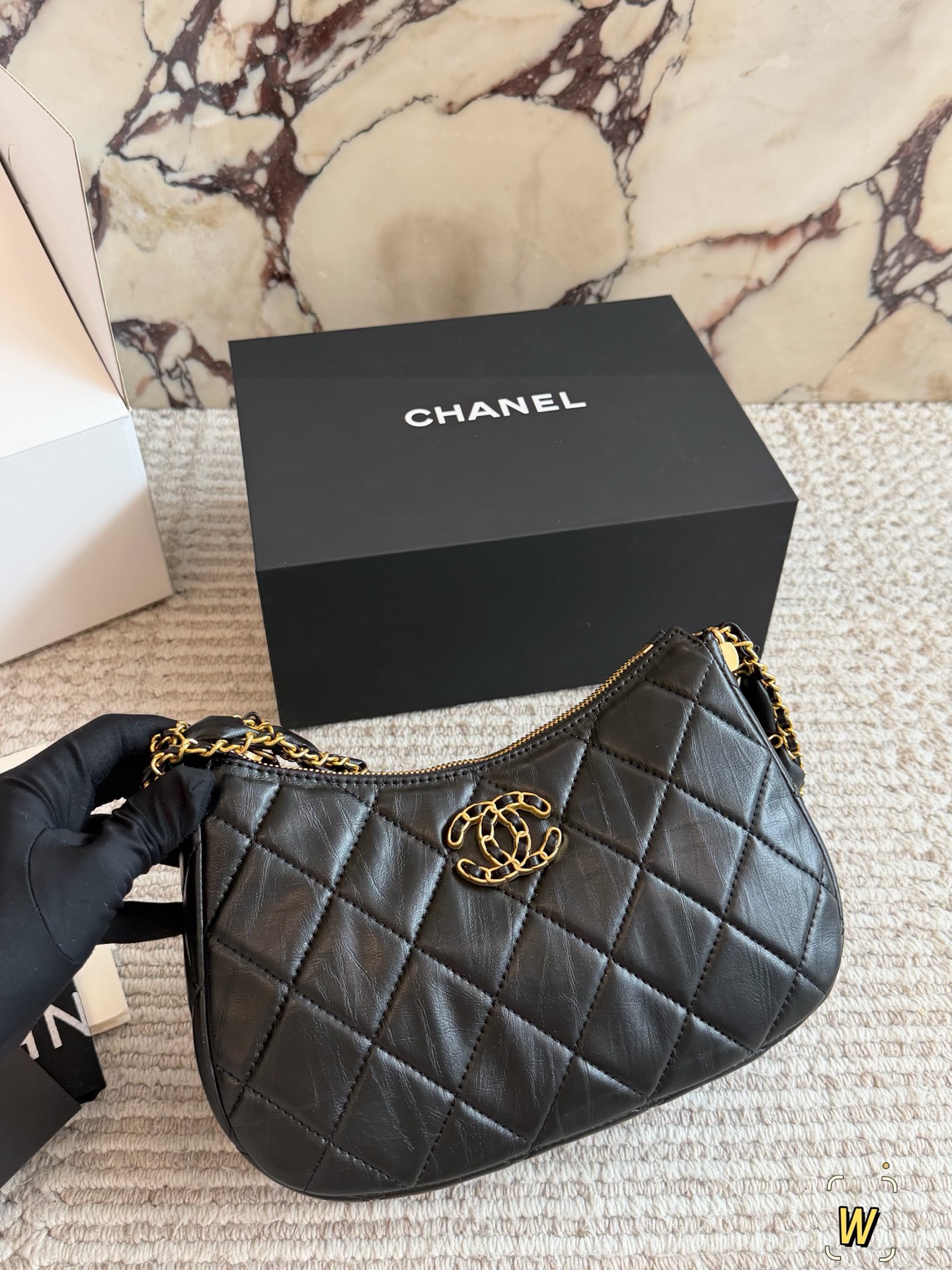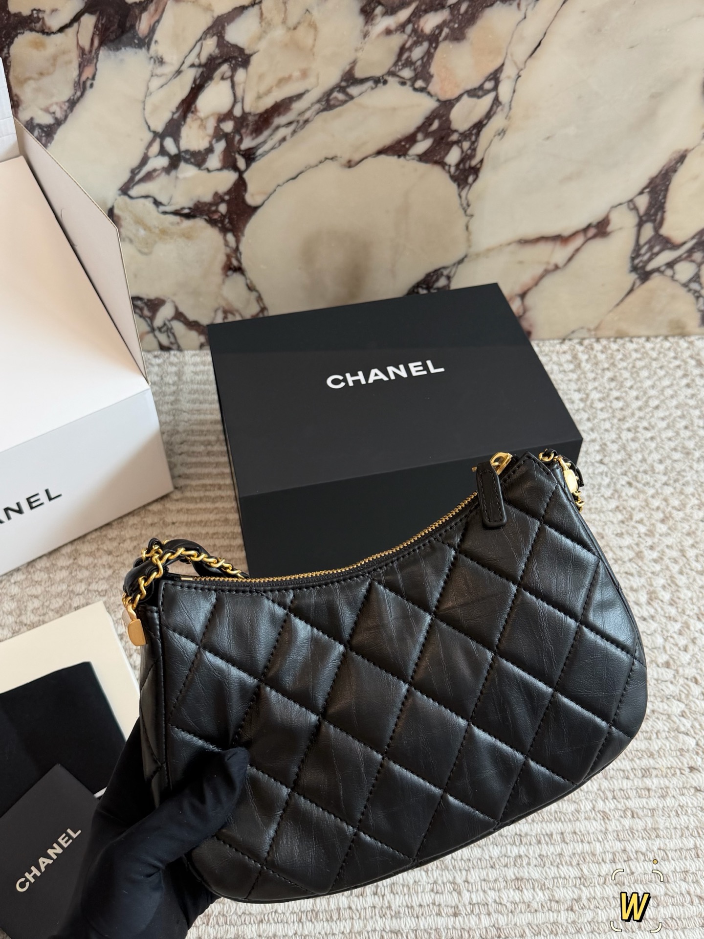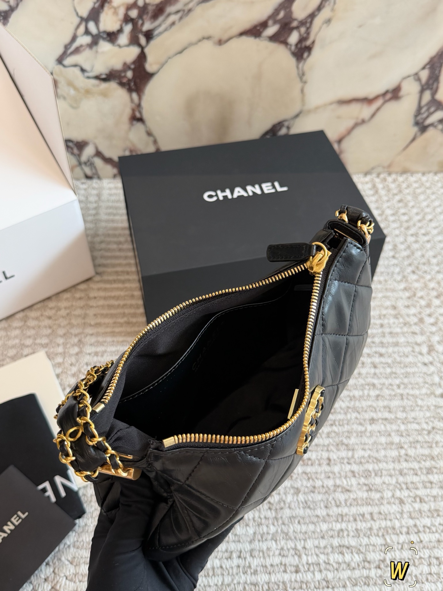 DetailChanel Mahjong BagA vintage black and gold 23k Chanel bag, a fashion "dark horse"!Exquisitely designed leather-threaded chain shoulder strapHigh-end, classic, and versatileThis 23k gold bestseller unlocks multiple styling possibilities.