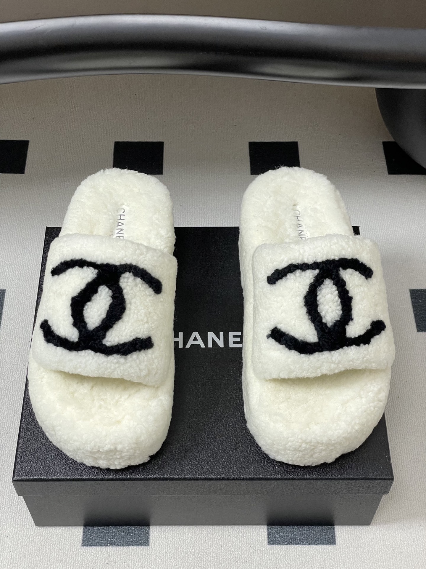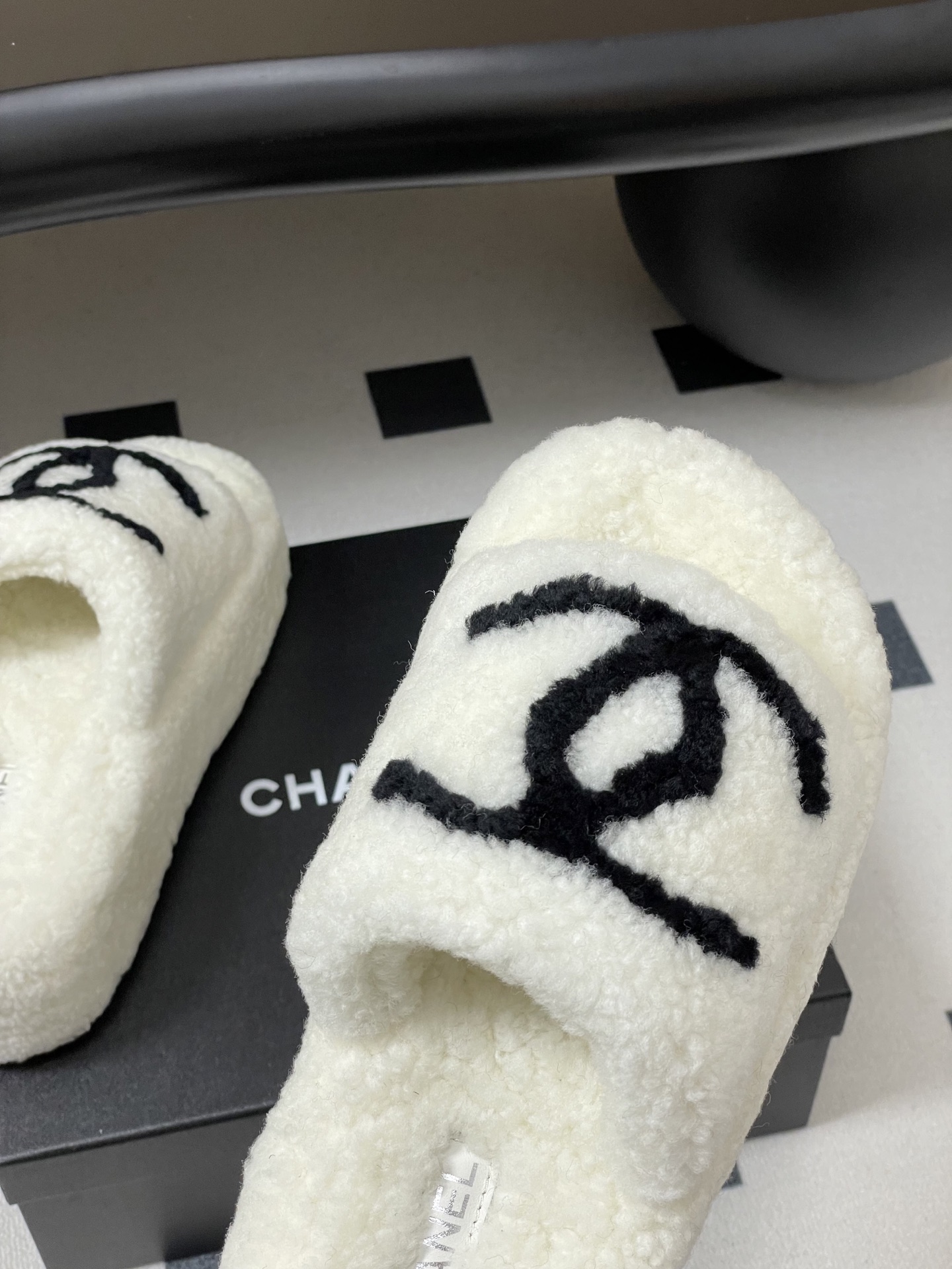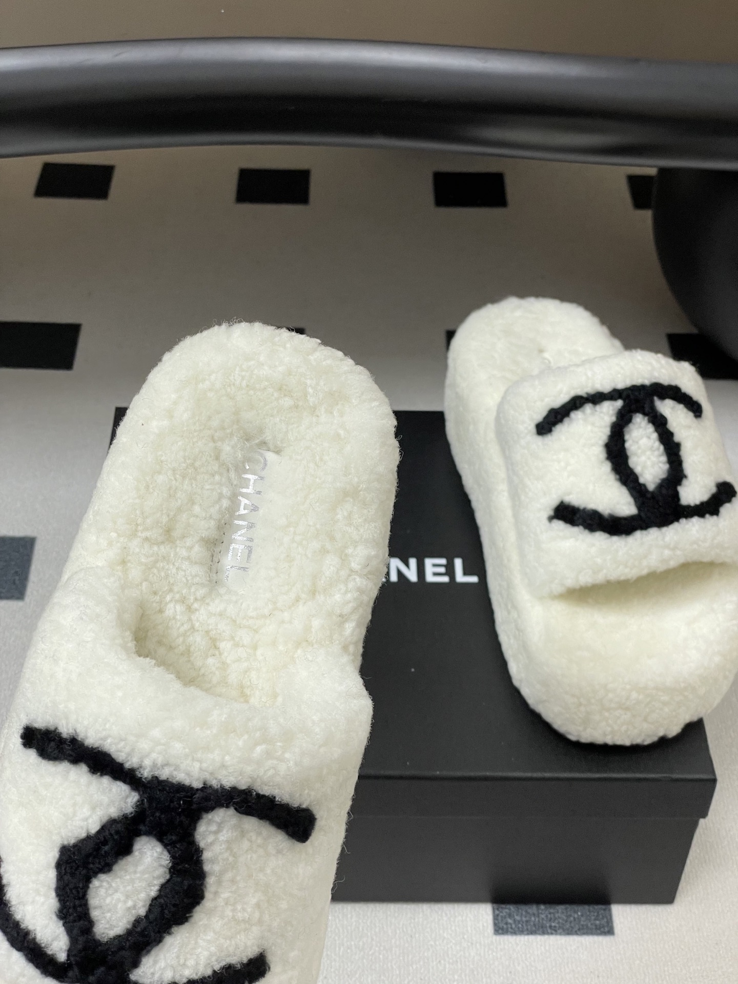 Chanel's new fall/winter classic Double C wool slippers