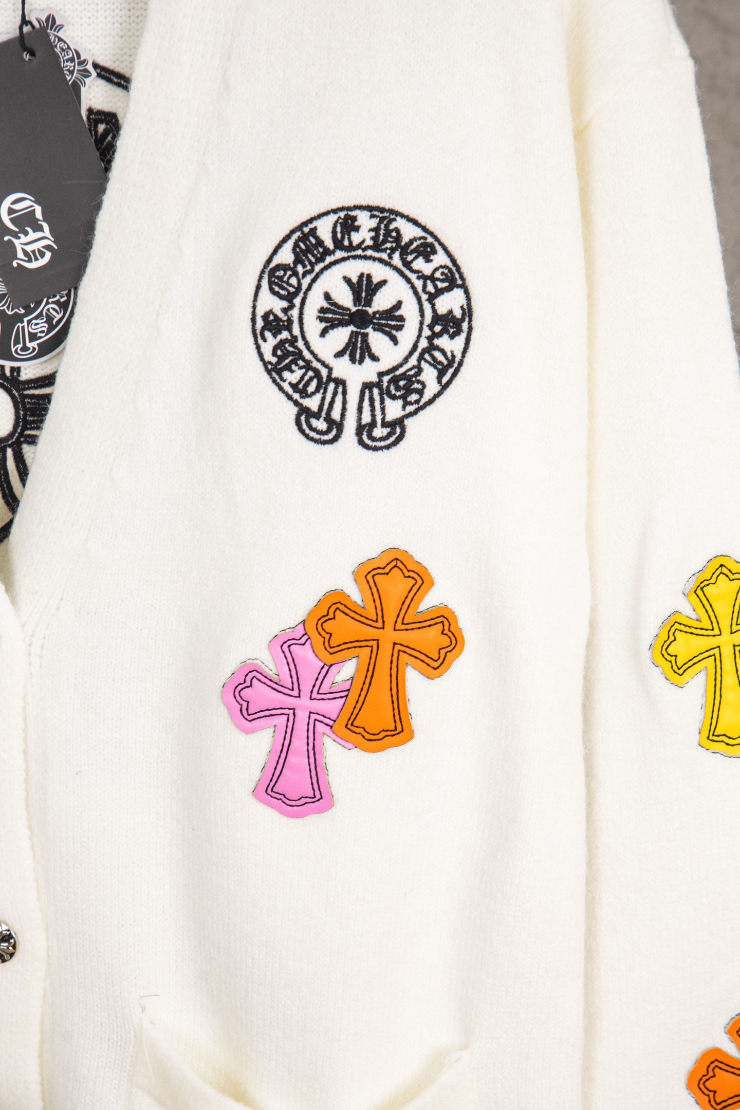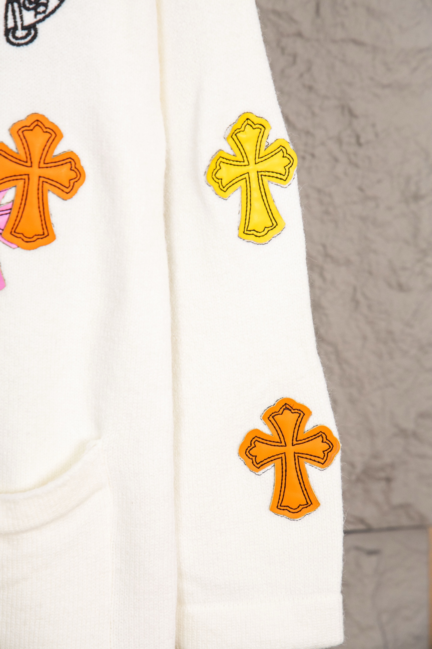 Chrome Hearts Colorful Cross Leather Patch Cardigan Sweater