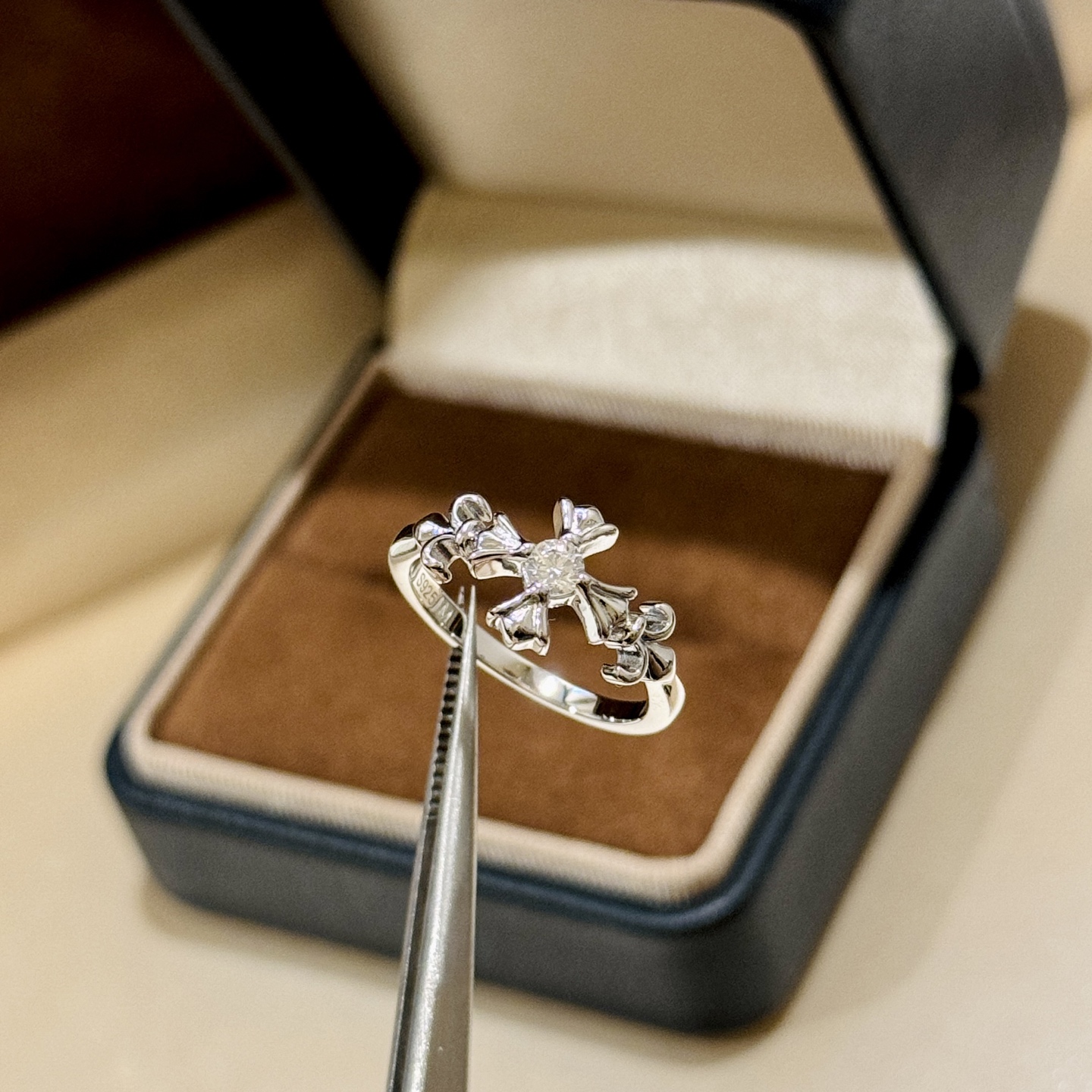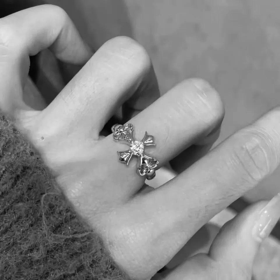 Chrome Hearts element iris cross diamond ring, niche design, classic and delicate, no fading and versatile, all body S925 sterling silver material, thick gold electroplated sterling silver ring.