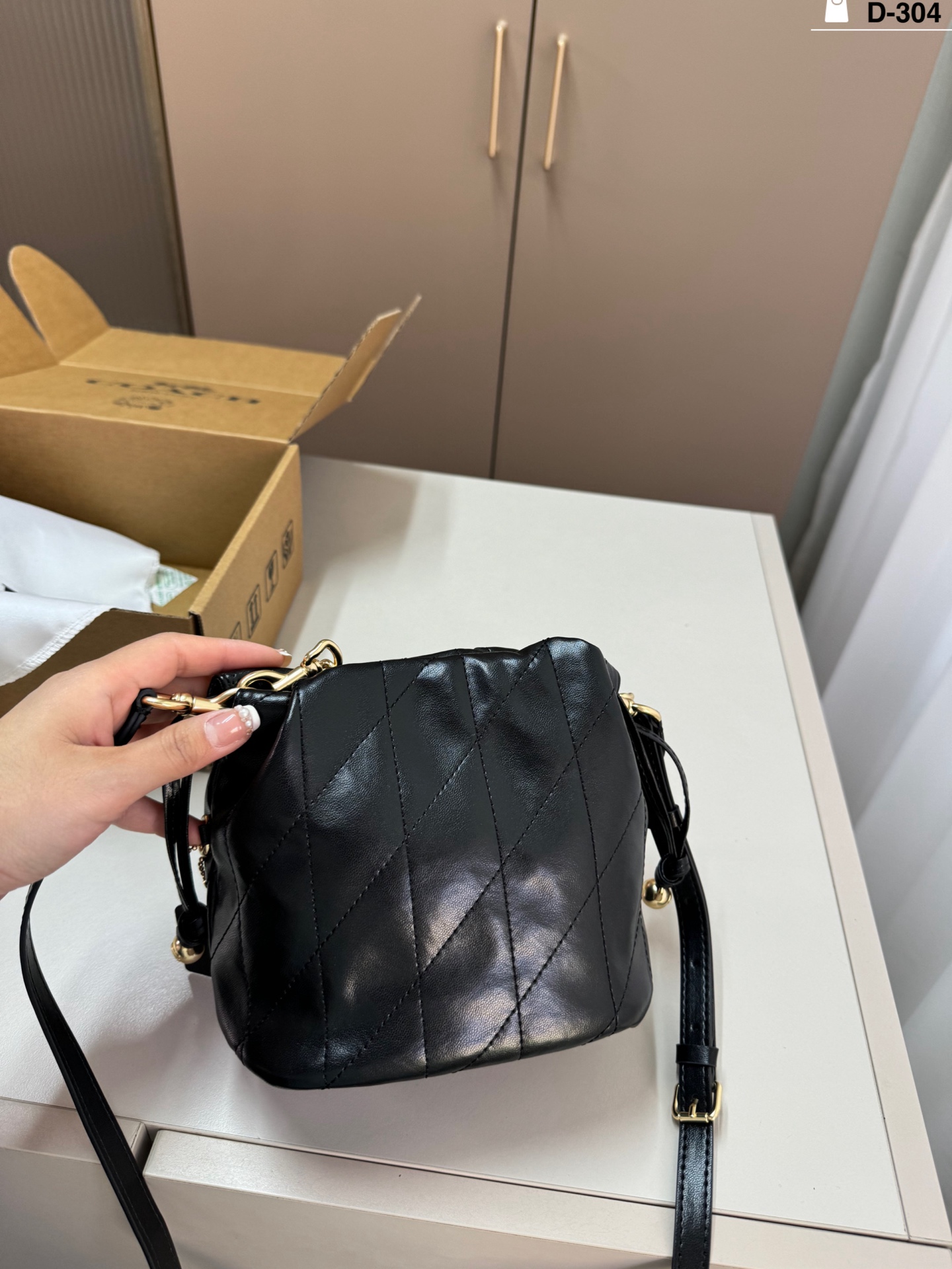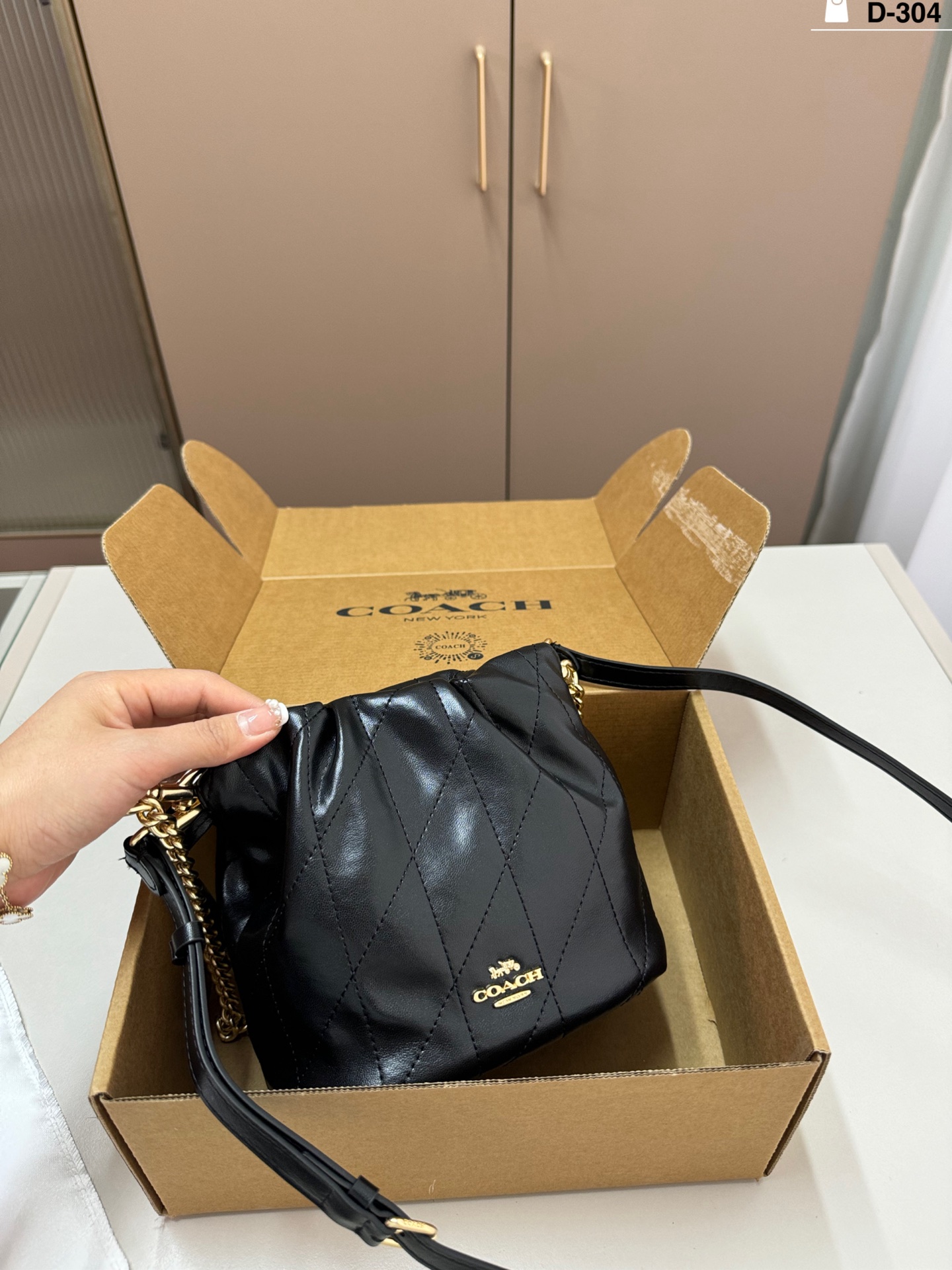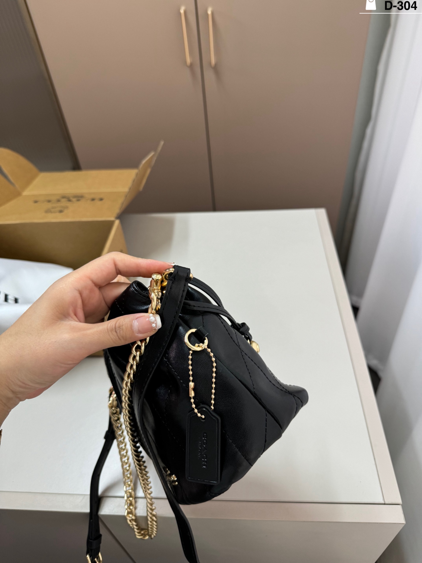 DetailThe Coach Faye mini drawstring bucket bag is simple, elegant, and versatile! The drawstring design is super flexible, and the chain is adjustable. It can be carried by hand, over the shoulder, or crossbody, making it suitable for both commuting and leisure.