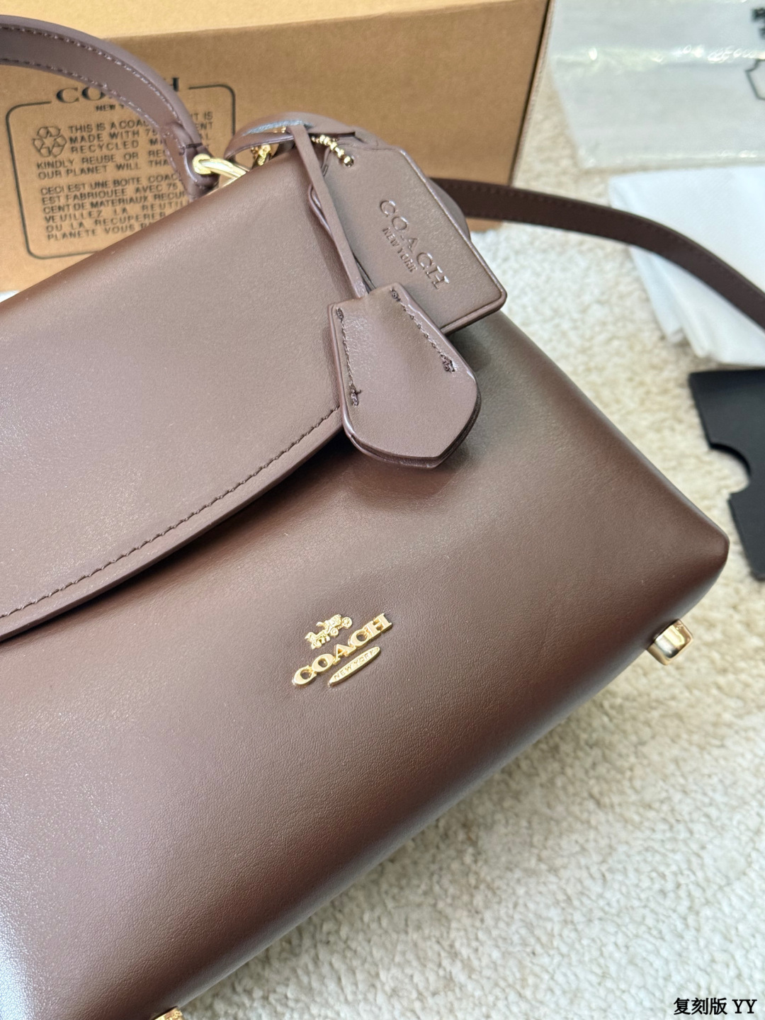 The Coach Manawa Bay tote bag is made of black pebbled calfskin, boasting a delicate and durable texture, accented with a metal logo for a subtle yet sophisticated look. The classic flap design and adjustable shoulder strap allow for both hand-carrying and crossbody wear, making it suitable for both commuting and casual occasions. Its moderate size and well-organized interior space easily accommodate everyday essentials. The Manawa Bay series emphasizes softness and lightweight design, making it a versatile and stylish choice for those starting out in accessible luxury. Practical yet sophisticated, it's a favorite among young people!