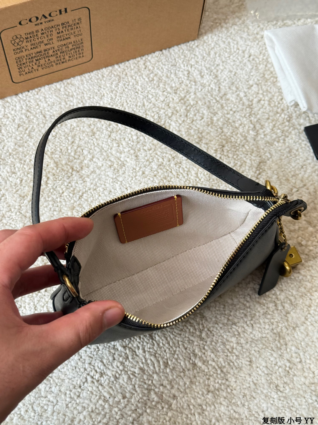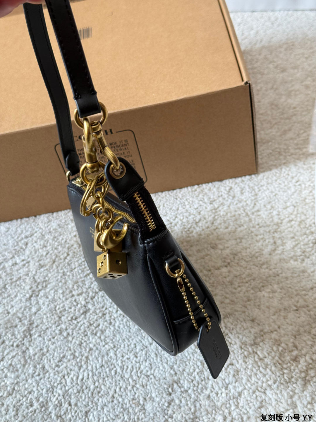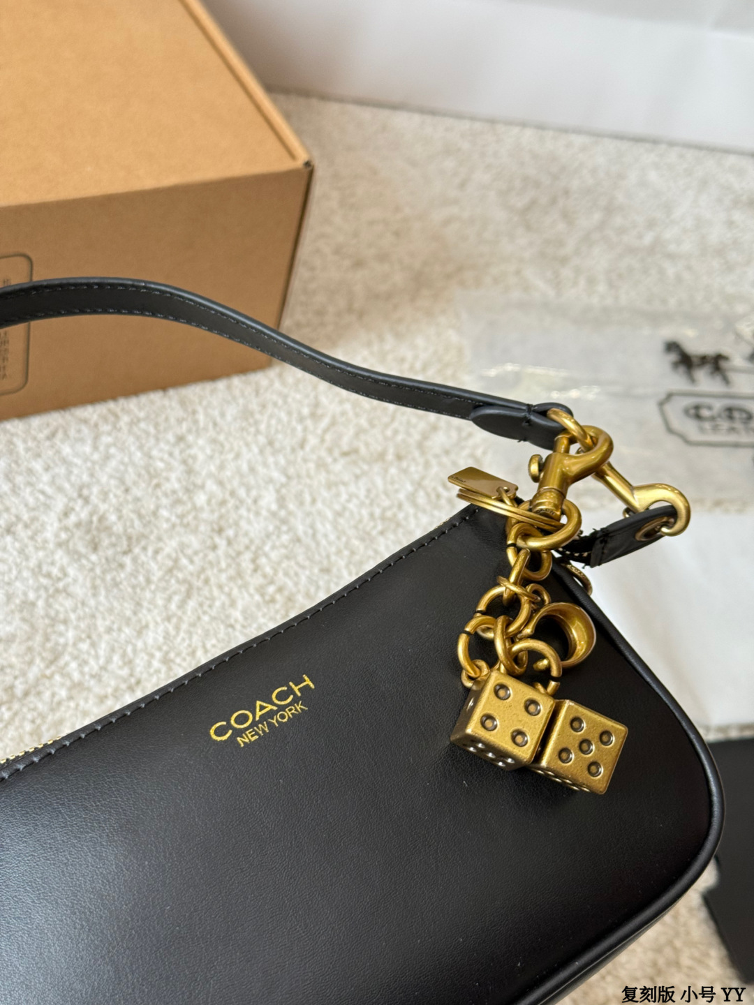 The COACH Plaza 18 Mini Mahjong Bag features black leather and gold hardware, exuding a simple yet sophisticated style. Measuring approximately 18x12x6cm, it's compact and lightweight, easily accommodating a phone, keys, and lipstick – perfect for commuting! The adjustable shoulder strap allows for hand-carrying, underarm, or crossbody wear. With the chain, it transforms into a crossbody bag, offering versatility and style. Its classic design and practicality make it suitable for everyday outings or as a gift, making it a great choice for Valentine's Day or birthdays.