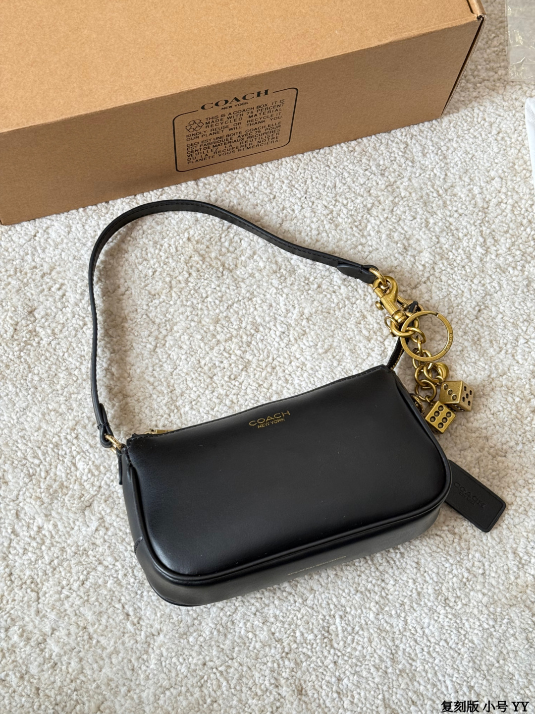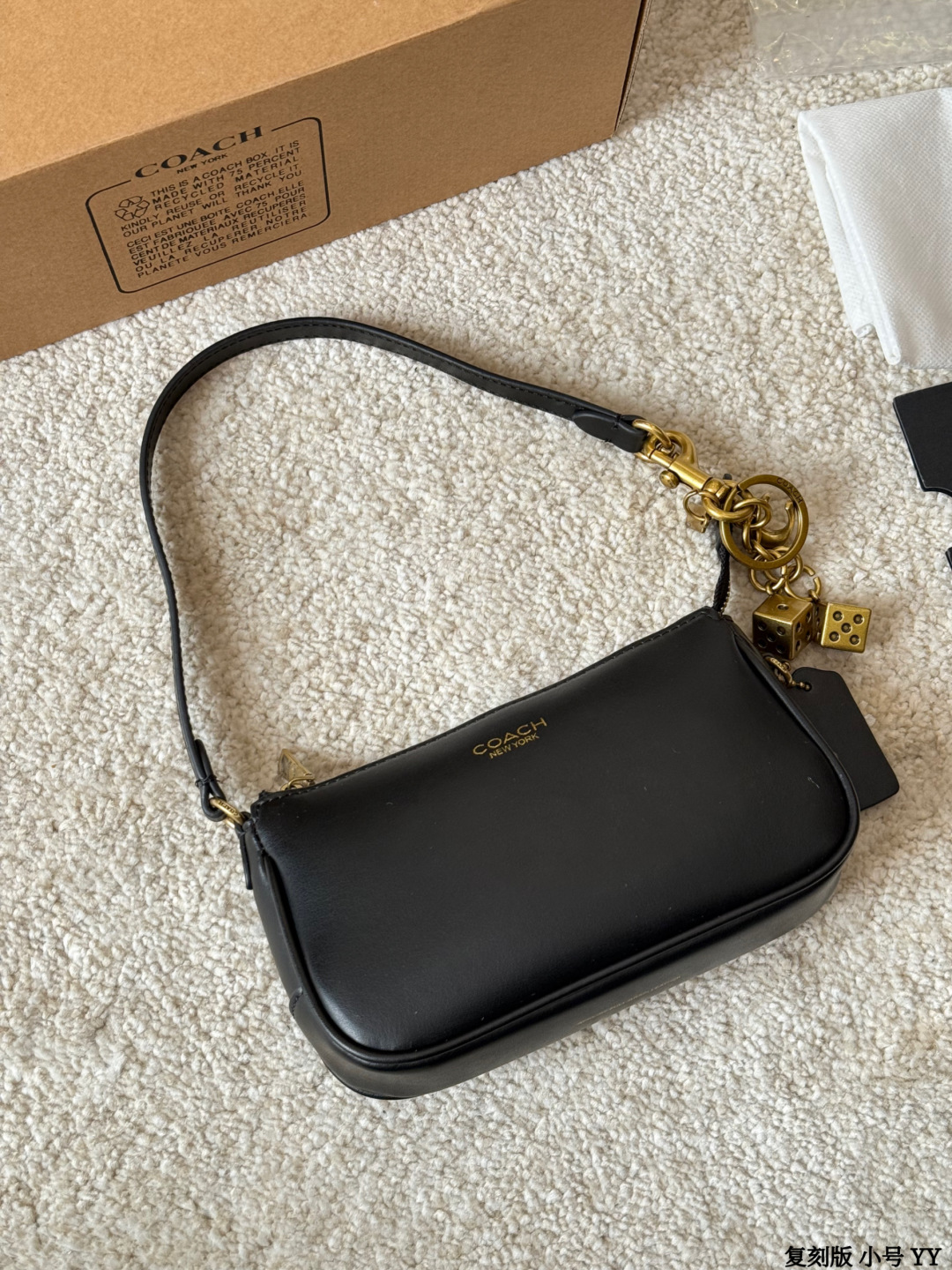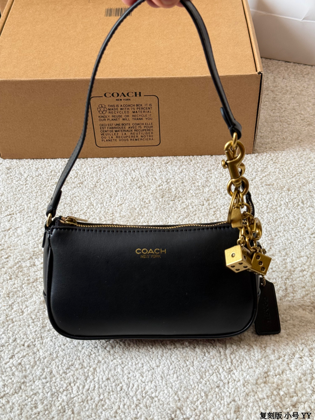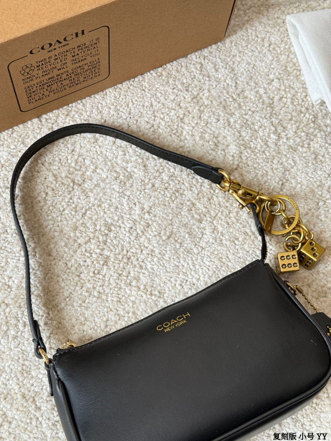 The COACH Plaza 18 Mini Mahjong Bag features black leather and gold hardware, exuding a simple yet sophisticated style. Measuring approximately 18x12x6cm, it's compact and lightweight, easily accommodating a phone, keys, and lipstick – perfect for commuting! The adjustable shoulder strap allows for hand-carrying, underarm, or crossbody wear. With the chain, it transforms into a crossbody bag, offering versatility and style. Its classic design and practicality make it suitable for everyday outings or as a gift, making it a great choice for Valentine's Day or birthdays.