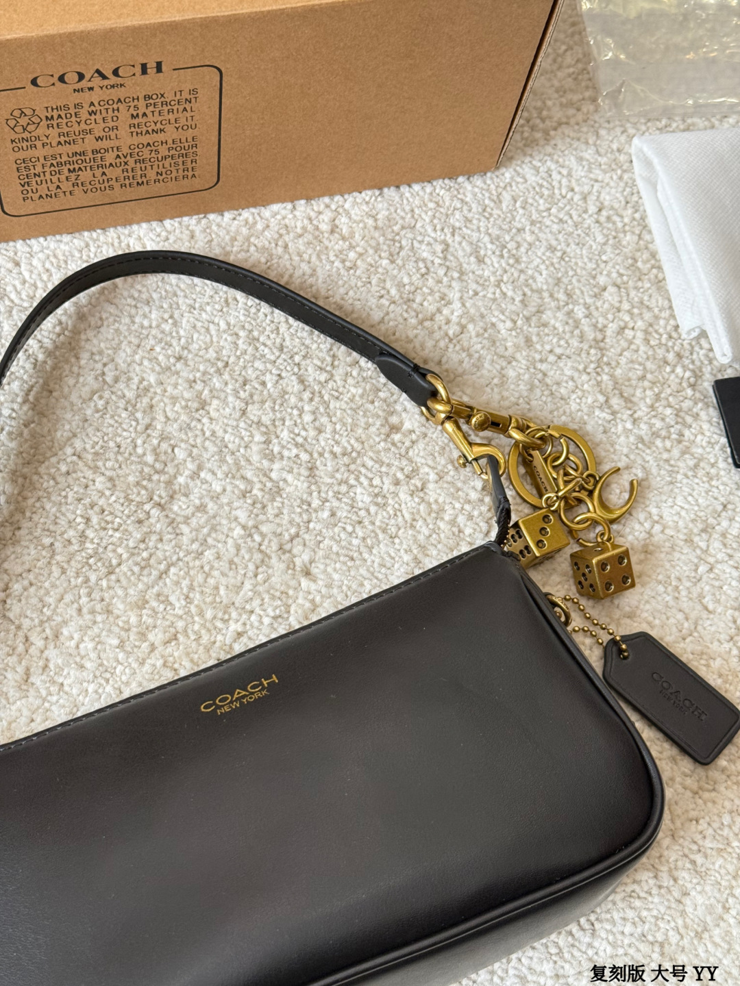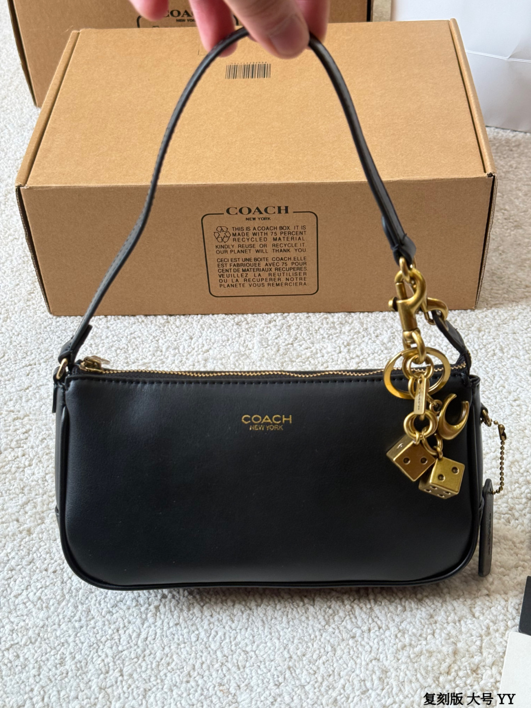 DetailThe COACH Plaza 21 Mini Mahjong Bag features black leather and gold hardware, exuding a simple yet sophisticated style. Measuring approximately 21x15x8cm, it's compact and lightweight, easily accommodating a phone, keys, and lipstick – perfect for commuting! The adjustable shoulder strap allows for hand-carrying, underarm, or crossbody wear. With the chain, it transforms into a crossbody bag, offering versatility and style. Its classic design and practicality make it suitable for everyday outings or as a gift, perfect for Valentine's Day or birthdays!