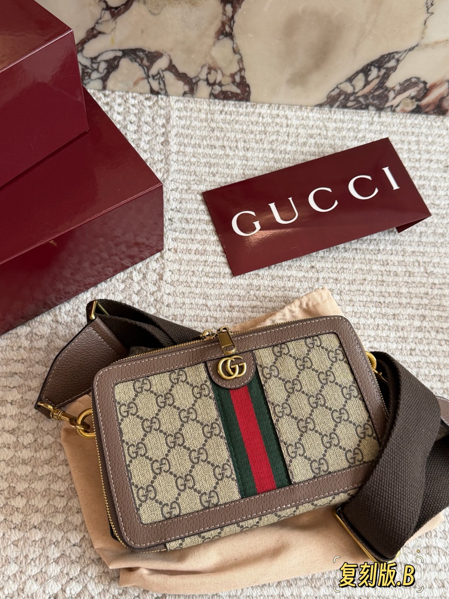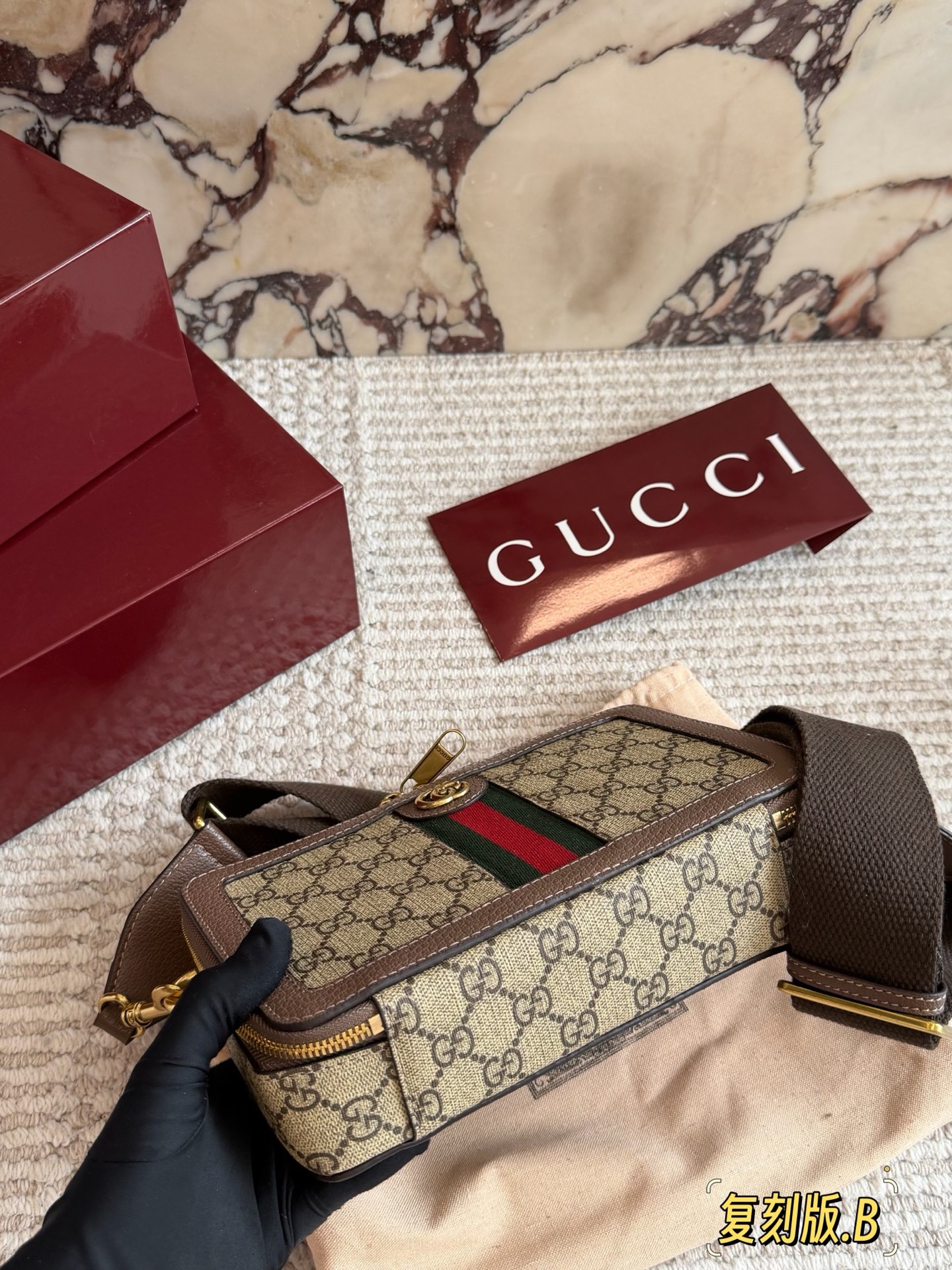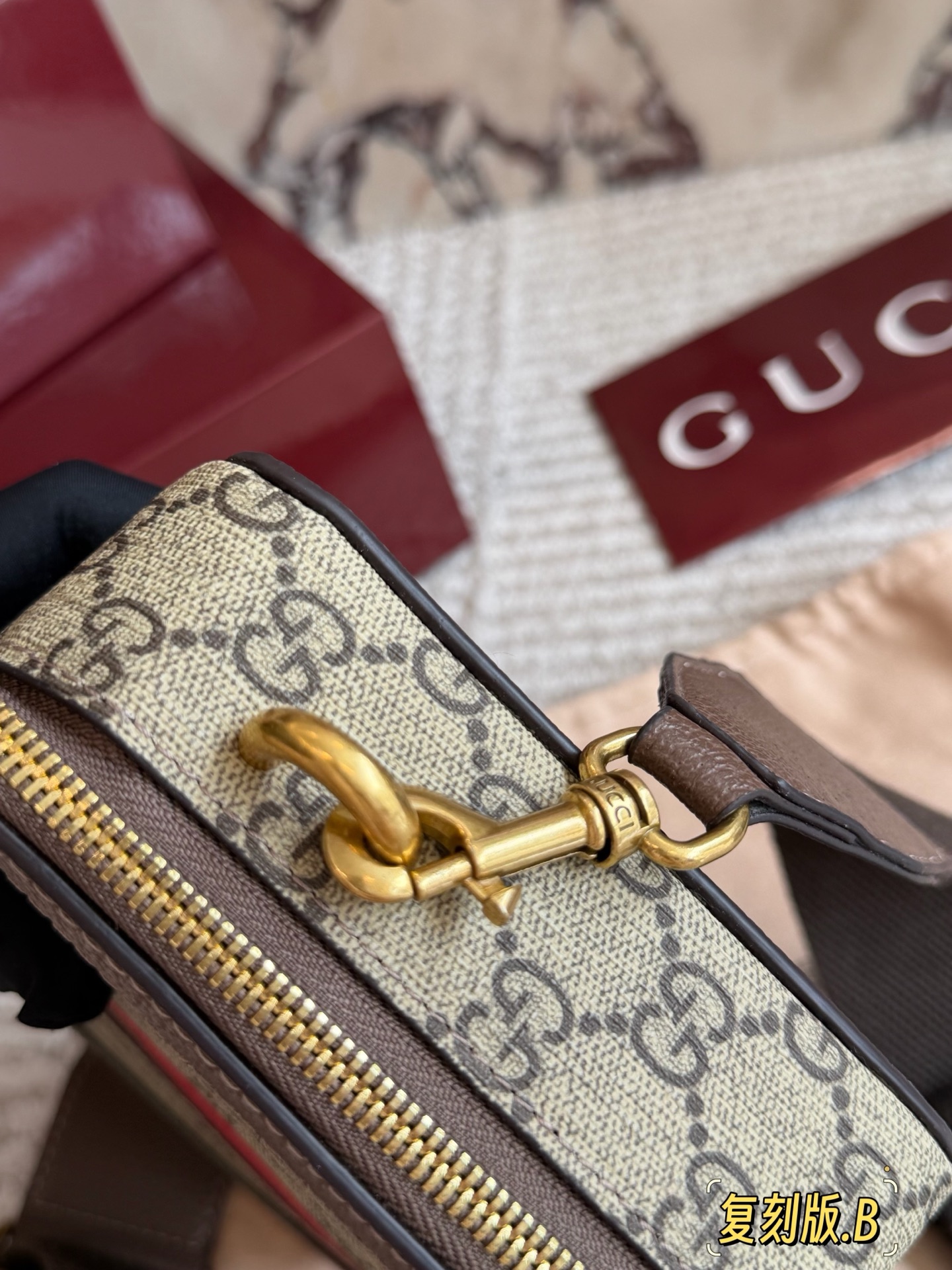 DetailThe slightly structured rectangular shape, combined with GG Supreme canvas, evokes the image of a traditional camera bag. The wide red and blue nylon striped webbing complements the meticulously crafted black and gray brand logo pattern, creating a distinctive shoulder bag design.
