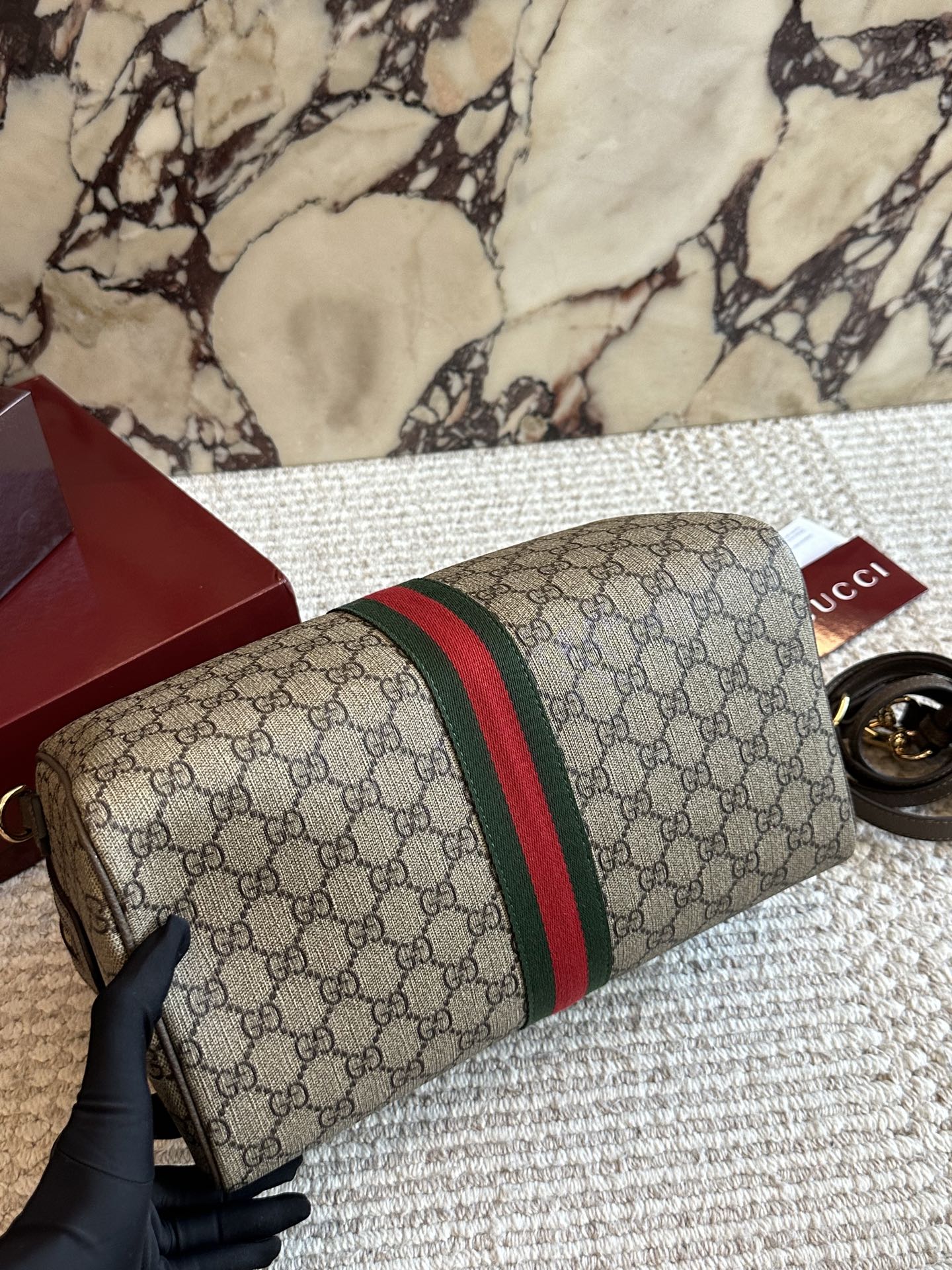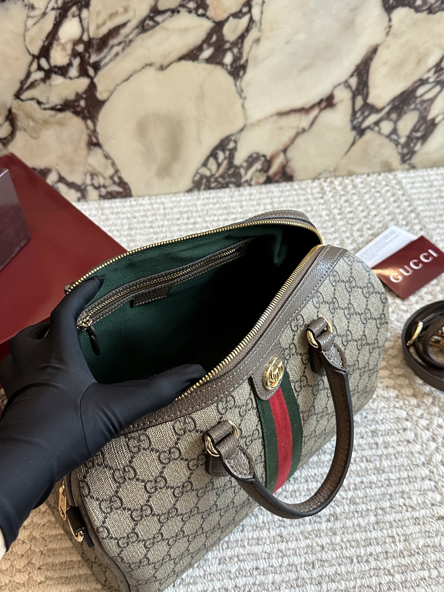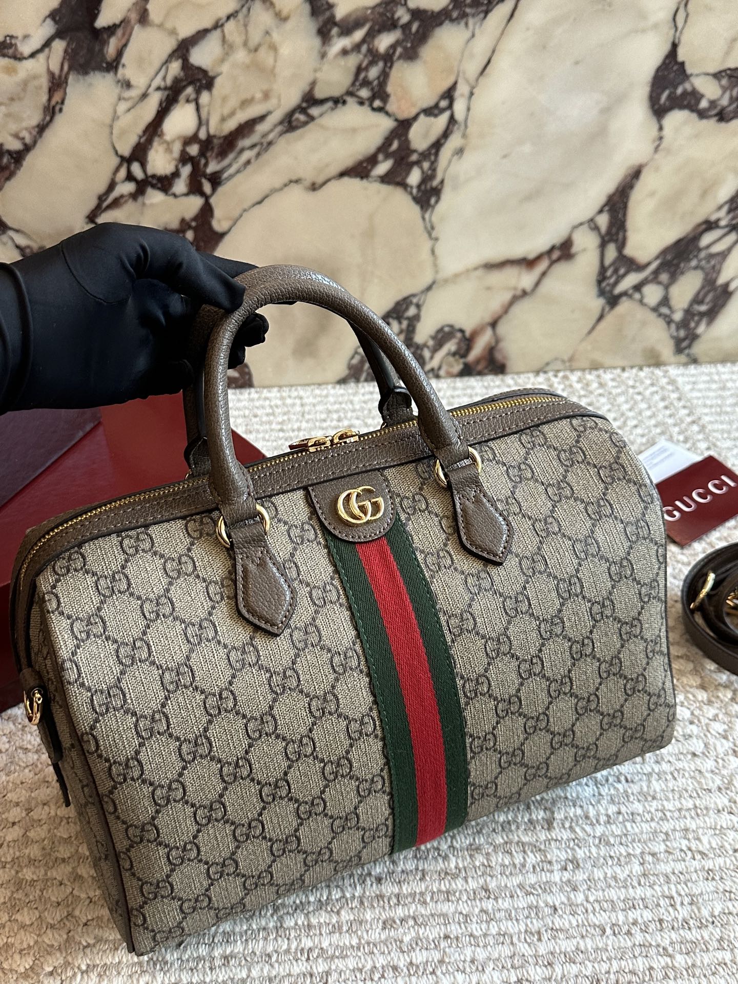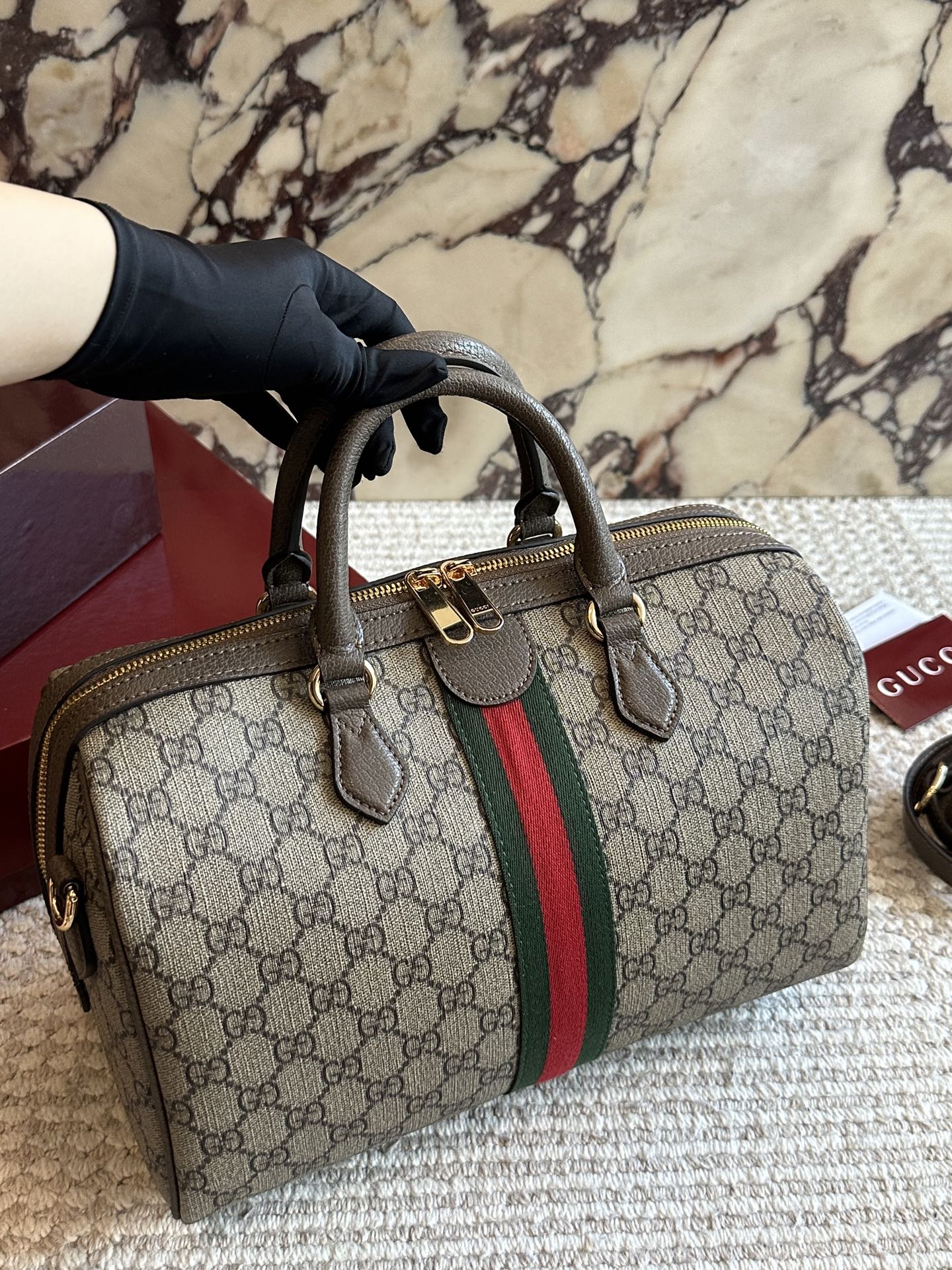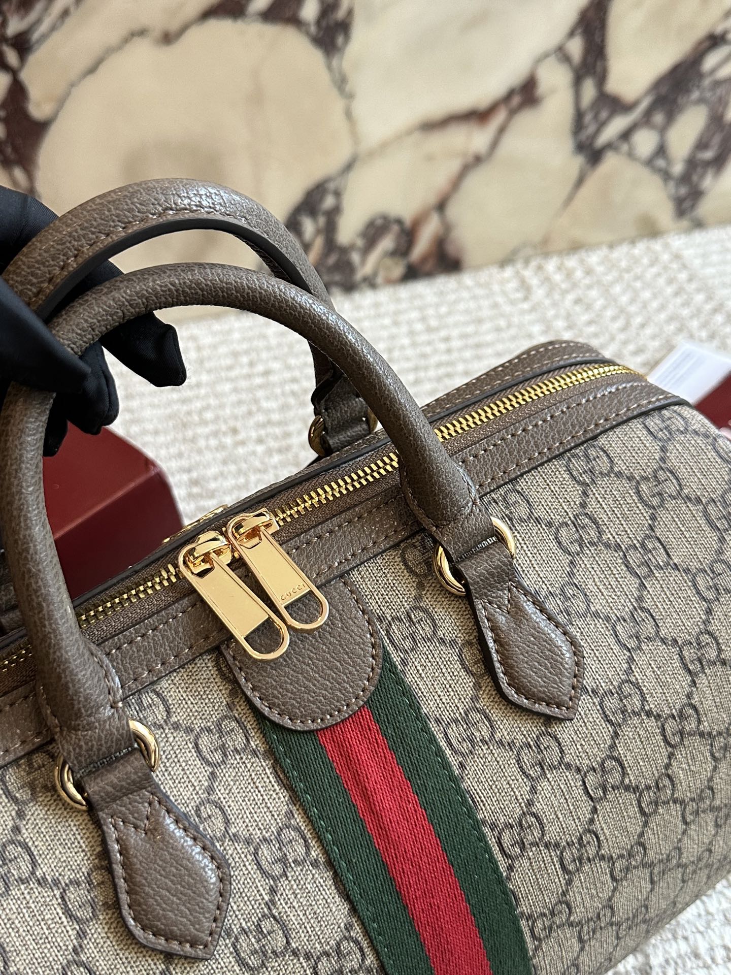 Gucci Boston shines in its new collection. The collection reinterprets classic patterns with creative designs and innovative features, injecting a touch of timeless style into everyday looks. The iconic Super G logo is presented in a striking and meticulously crafted manner, complementing the zipper closure and wrist strap design.