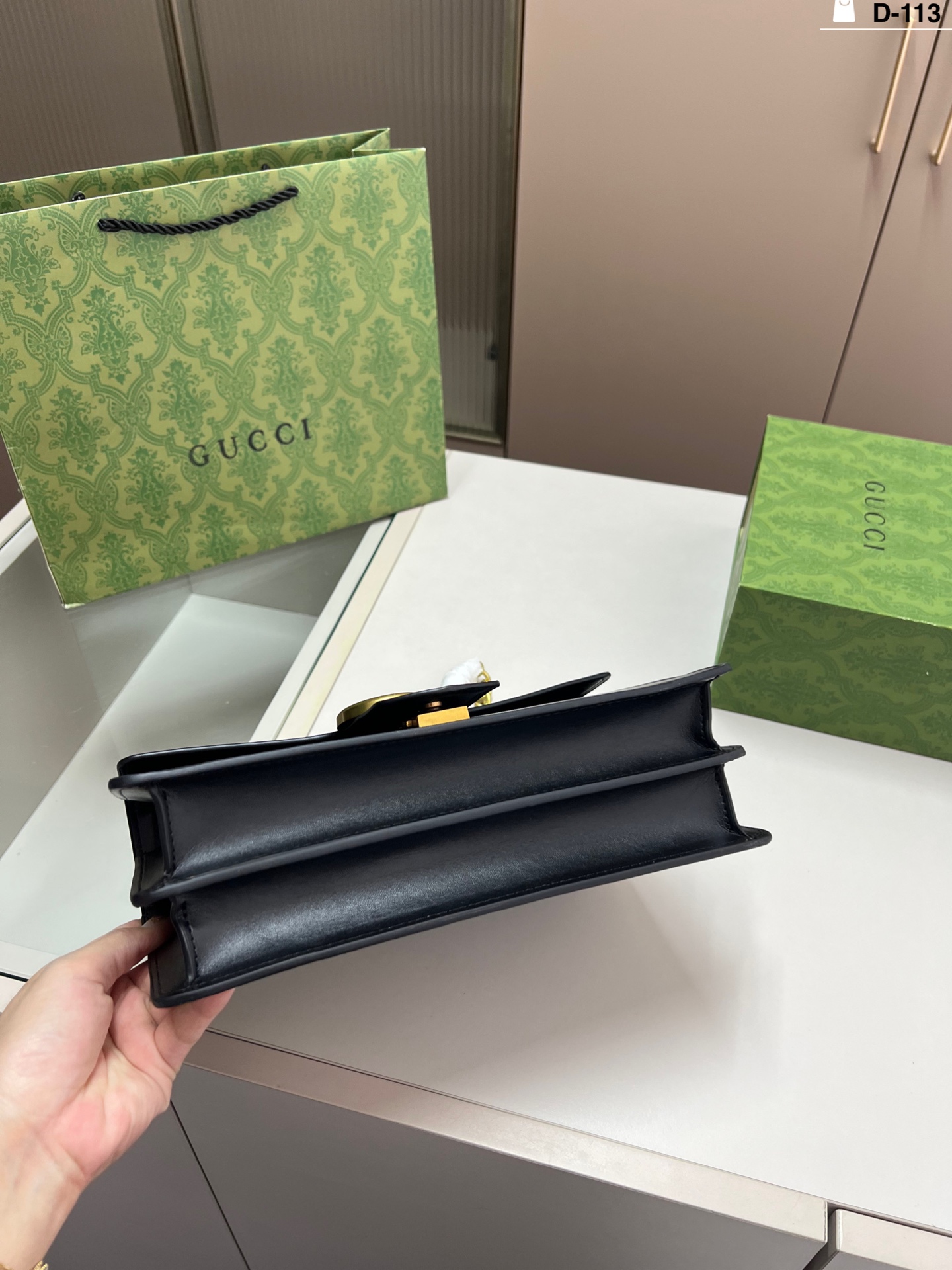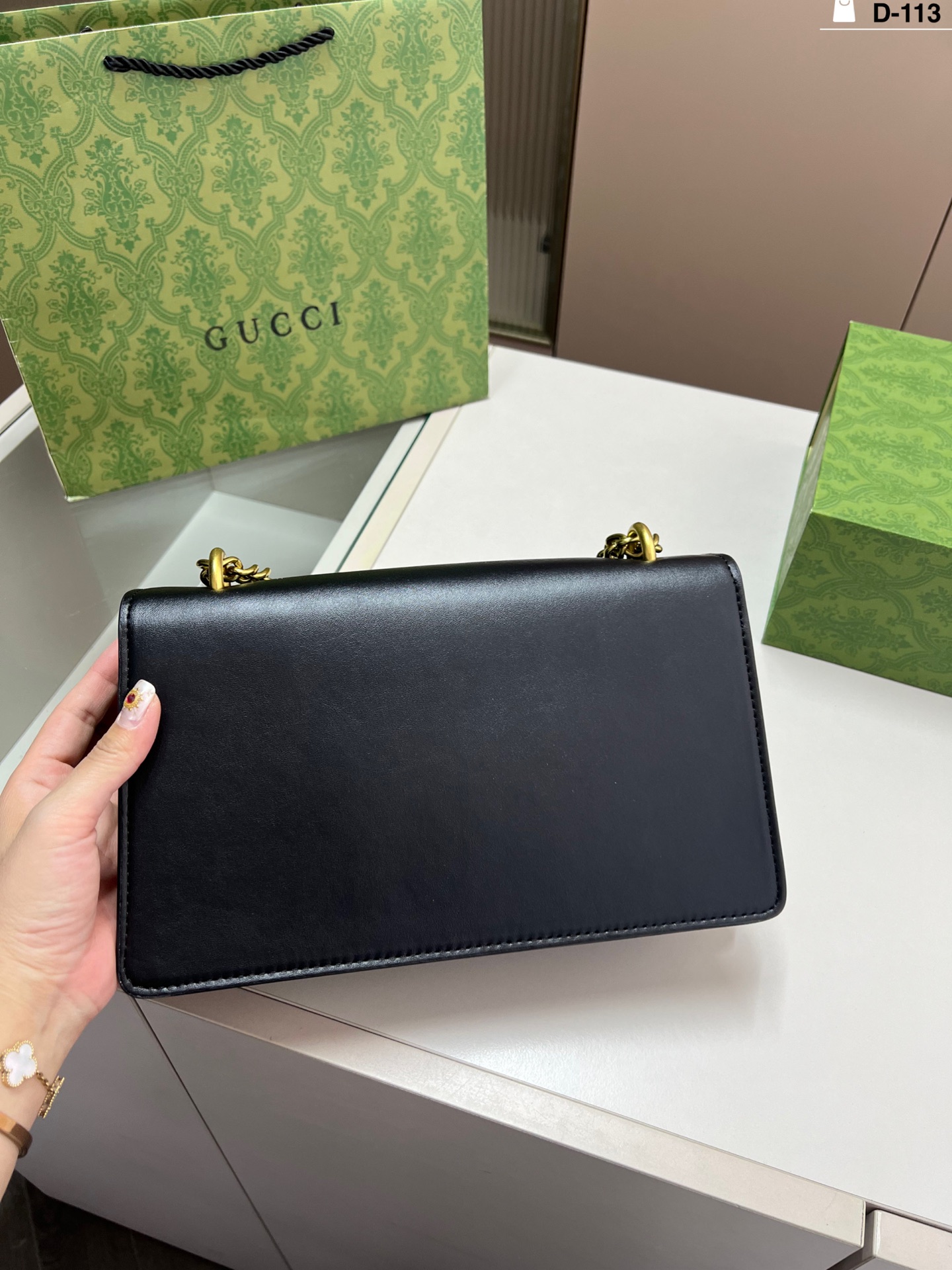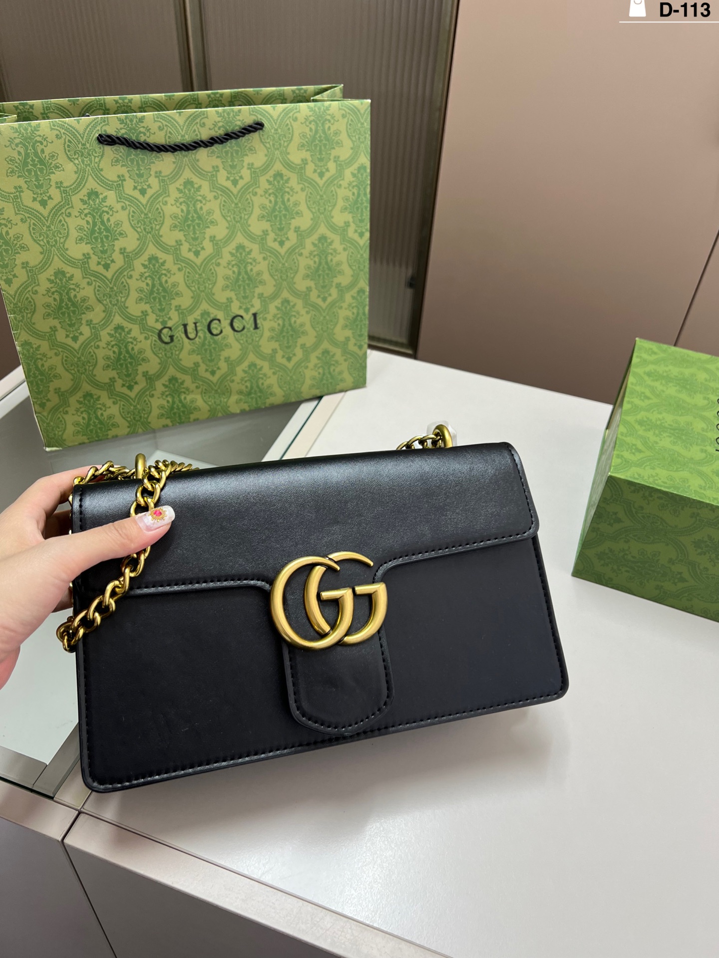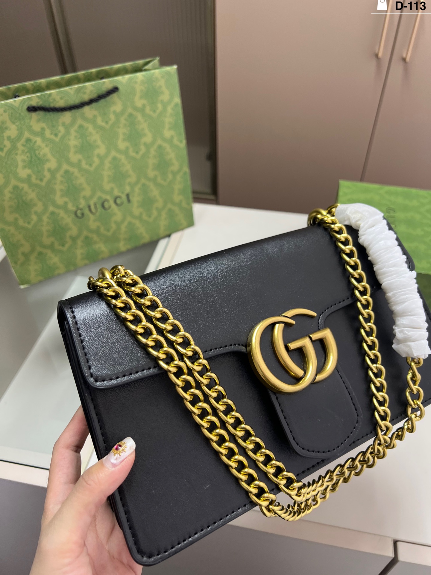 The GG Old School bag with logo and retro buckle chain is easy to wear for any height. It can be carried by hand or on the shoulder, very versatile.
