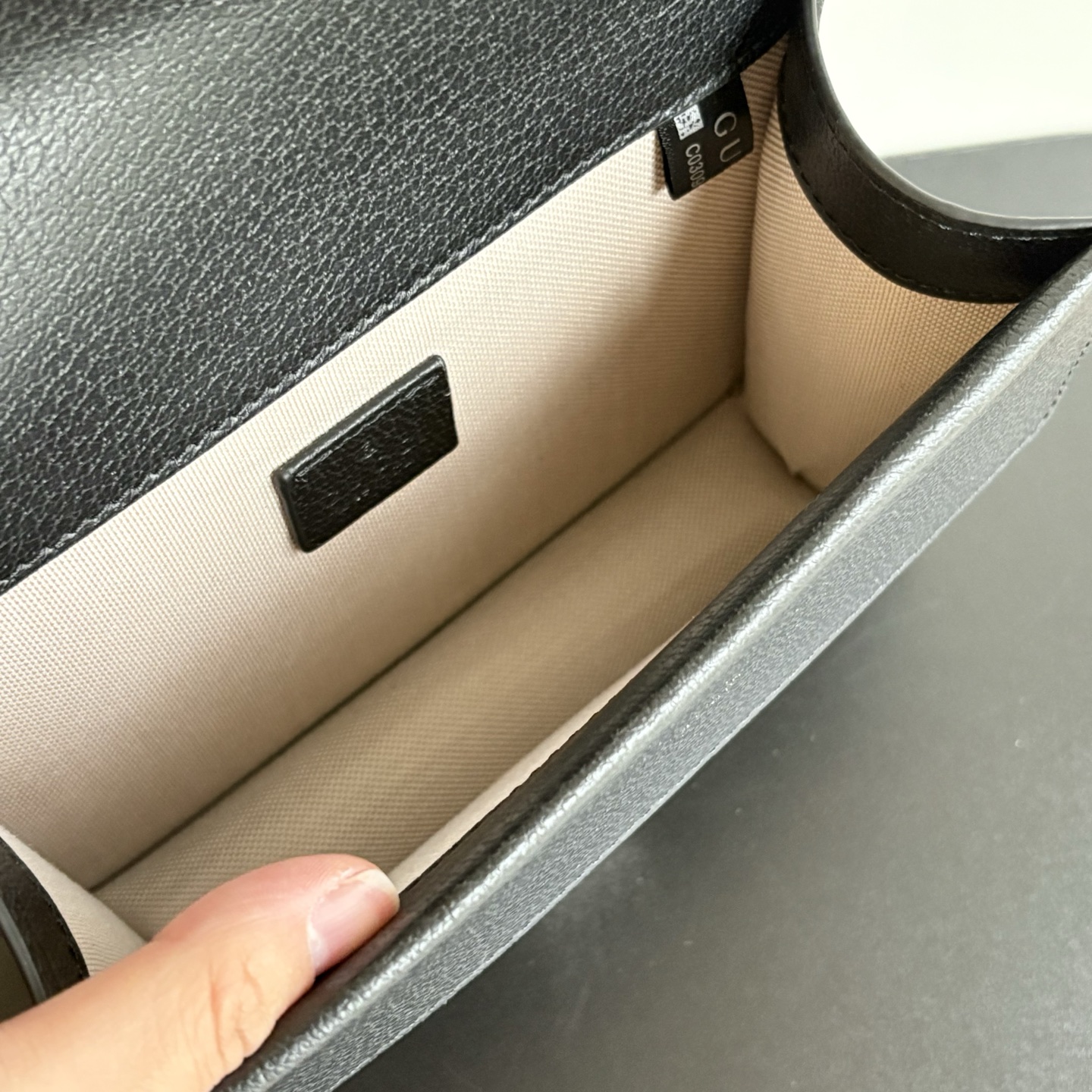 The single compartment is more than enough for compact powder, a phone, and lipstick.