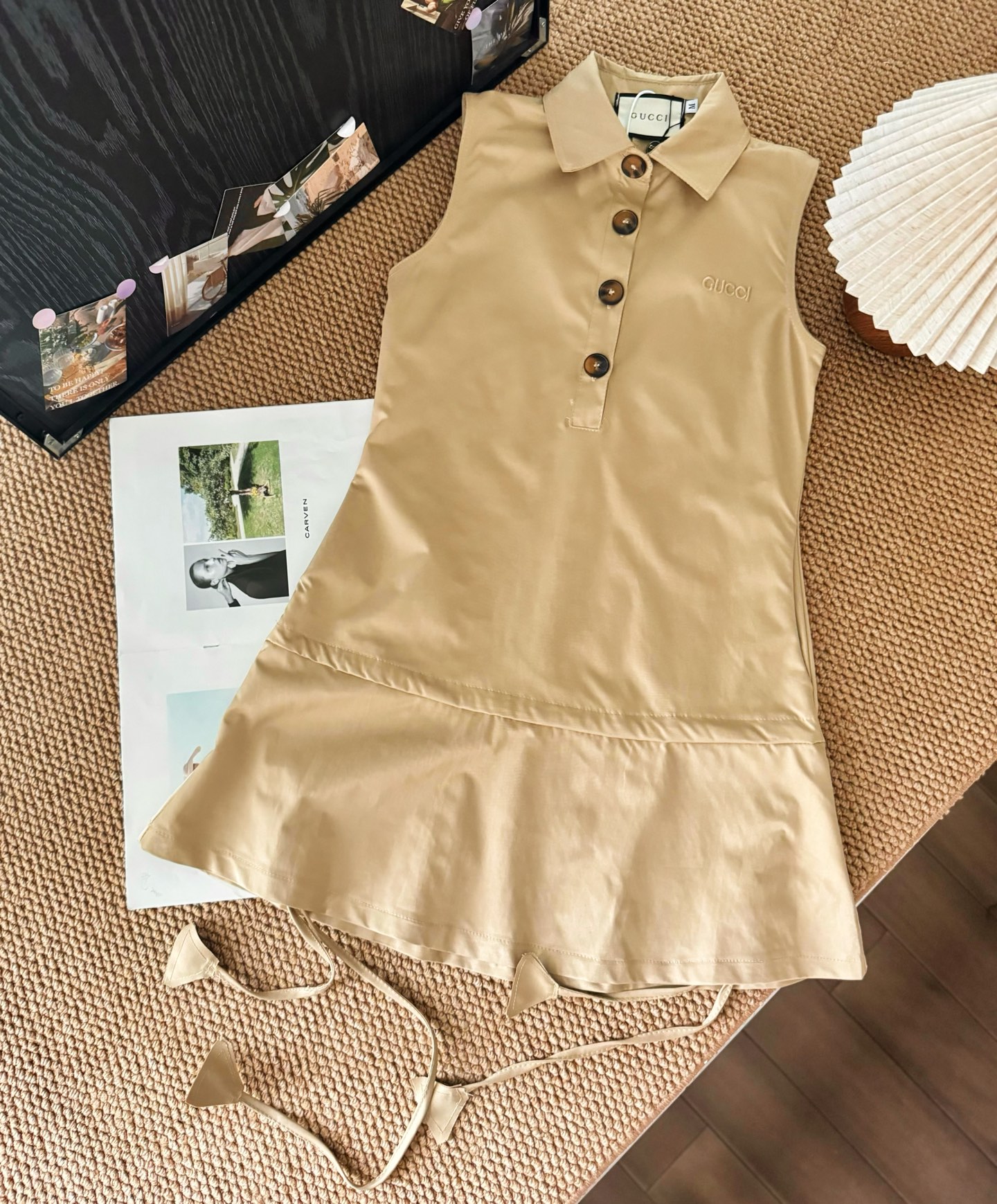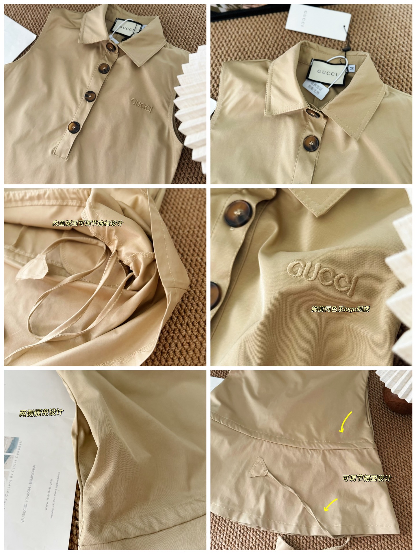 DetailGucci old money style drawstring vest skirt, simple yet individual French retro, elegant and feminine. The fabric is smooth and comfortable, and the upper body is very refreshing. There is a skirt belt inside the skirt, which can adjust the waist-to-hip ratio by yourself. There are pockets on both sides of the waist, which is practical and beautiful to wear.Size chartM waist 78 bust 80 length 77L waist 82 bust 84 length 79Manual measurement error 1-2cm