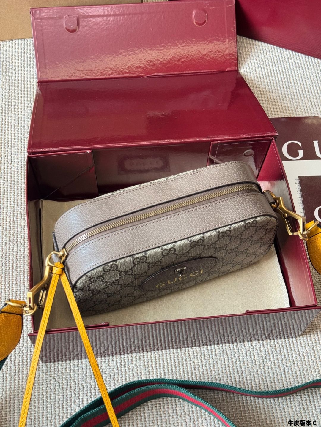 DetailThe Gucci Ophidia camera bag features original ebony split leather. This style has a strong vintage feel, with matching hardware and an original lining! It looks stunning on the body, with the exquisite and unique hardware elevating the overall texture.