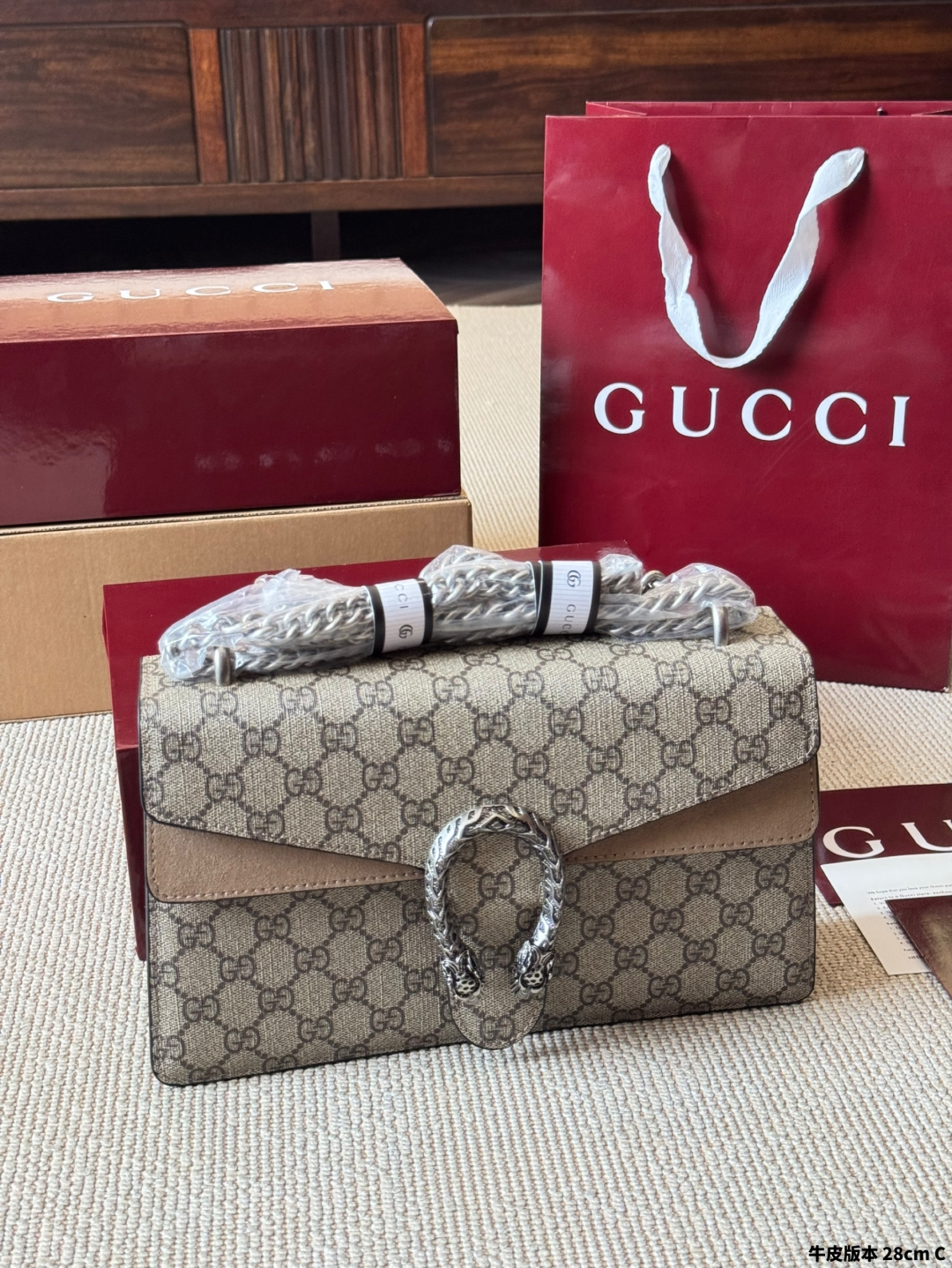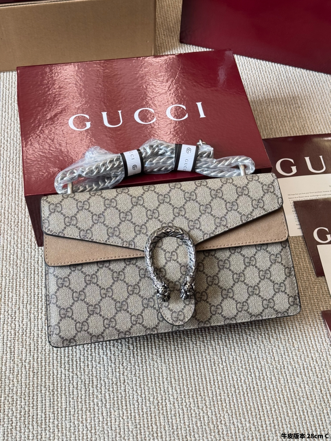 DetailThe Gucci classic Dionysus bag was designed by Alessandro himself. Its name comes from the god of wine in ancient Greek and Roman mythology. Classic PVC is paired with imported genuine suede to create a Gucci retro style. Although it is a newcomer in the handbag world, it still has a place among classic bags even in today's world where It Bags are emerging one after another.