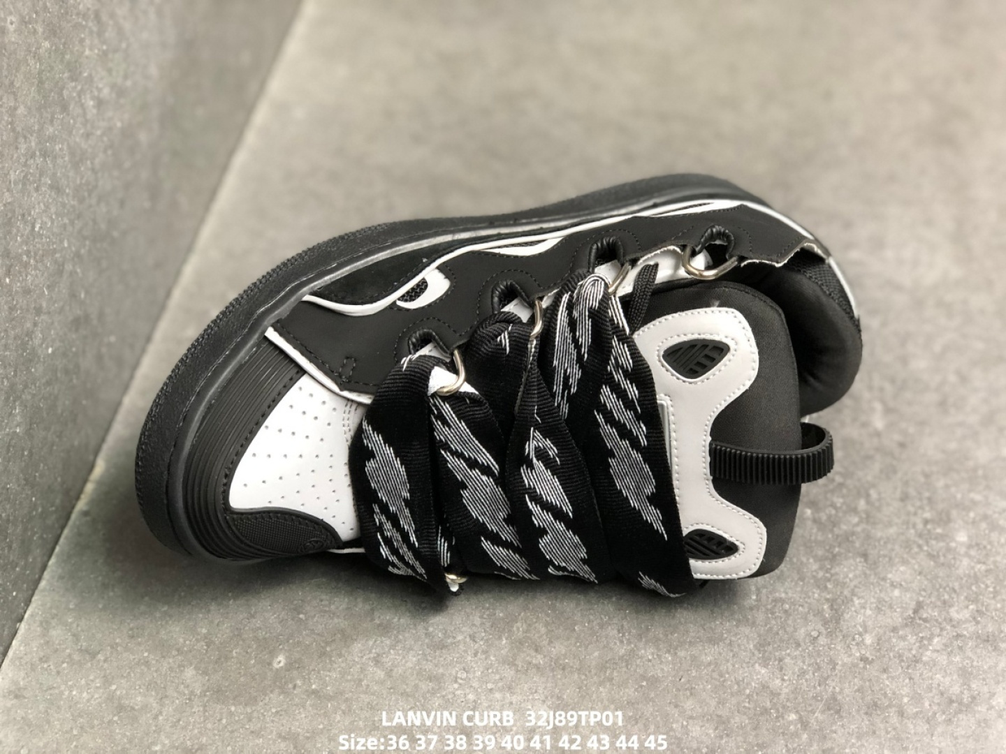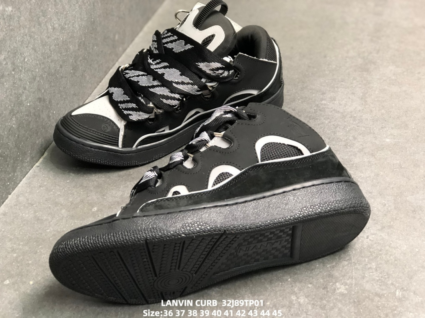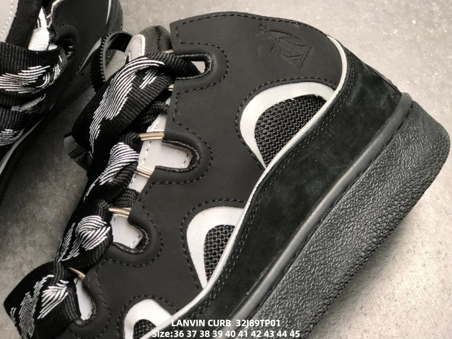 DetailInspired by 90s skateboarding culture, the Lanvin Curb sneaker blends French high-end craftsmanship with streetwear DNA. Its signature design features an exaggerated, rounded silhouette, a thick quilted tongue, and double-layered waxed laces inspired by Japanese kimono weaving techniques, giving it a highly recognizable, loaf-of-loaf-like shape. The upper is crafted from a combination of Nappa calfskin, suede, and breathable mesh, accented with curved metal eyelets and an embossed brand logo, showcasing luxurious details. The rubber outsole provides excellent traction, balancing everyday comfort with light exercise needs, and pairs effortlessly with wide-leg trousers or cargo pants for a retro streetwear look.