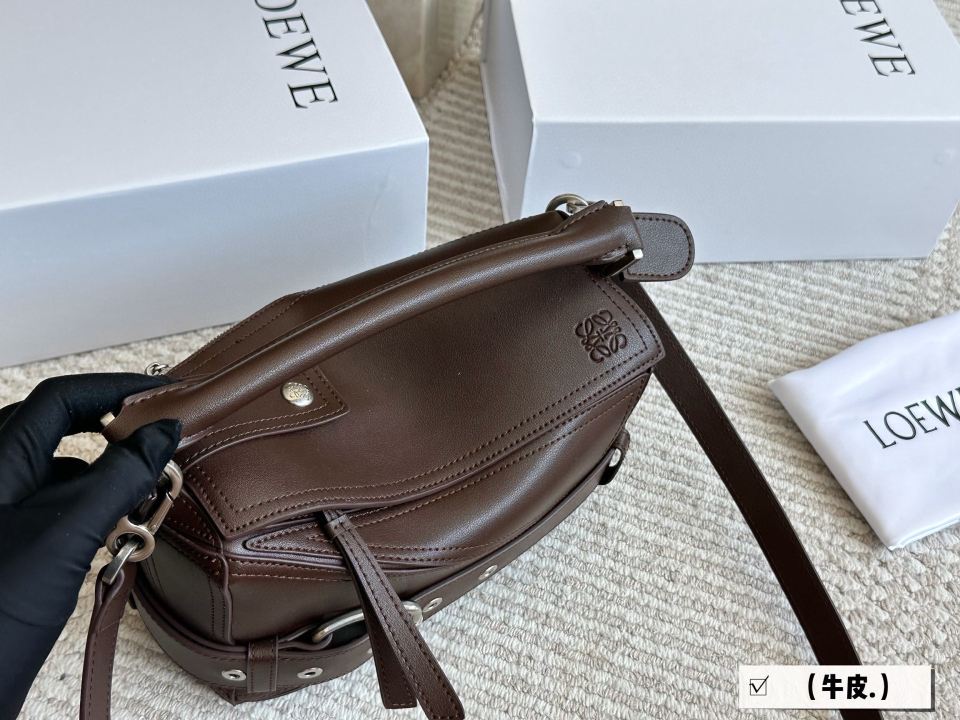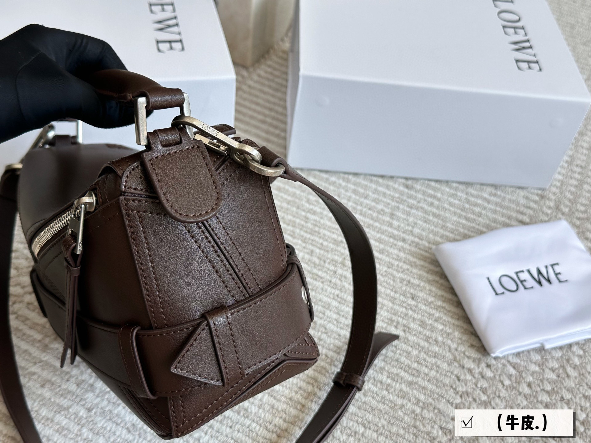 DetailLoewe's geometric puzzle bagfeatures a touch of craftsmanship in its biker-inspired designwho can truly appreciate the beauty of this special edition puzzle bag?It includes a belt design for a cool lookIt's also suitable for men!