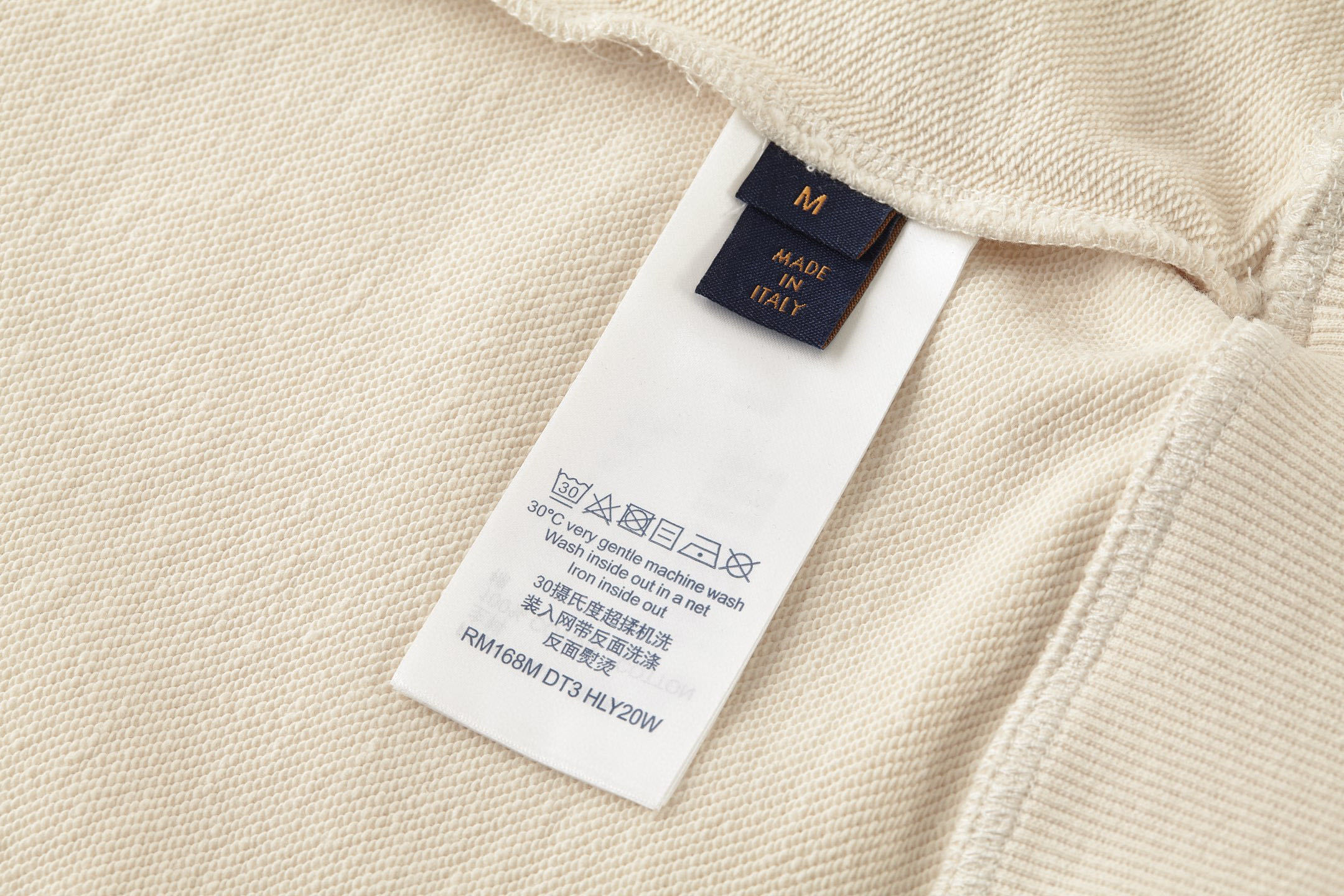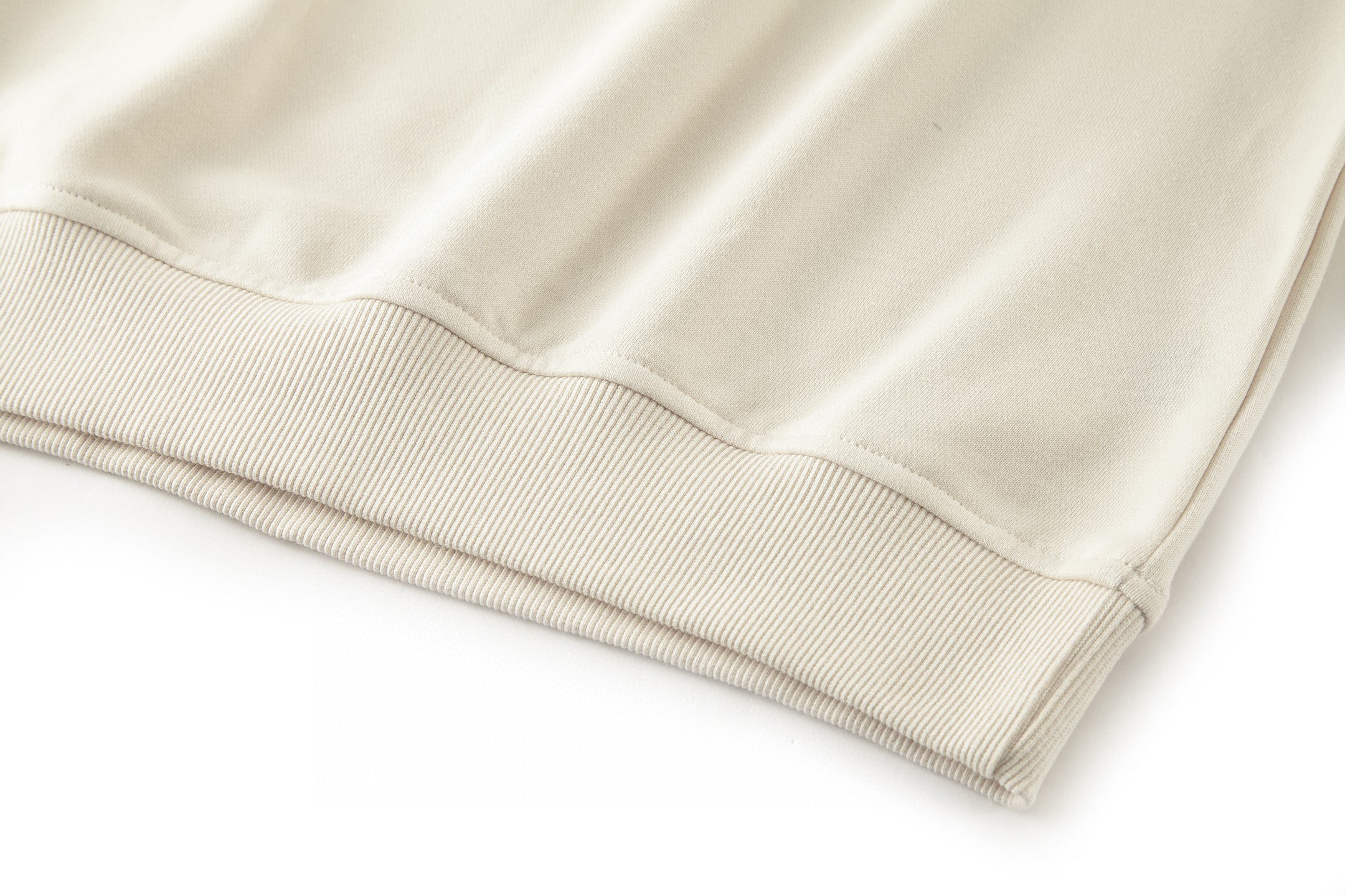 Fabric: 380 fish-scale single-ply terry, long-yarn cotton, custom-woven and custom-dyed. Yarn is a 2x2 double-yarn yarn, custom-dyed in the same vat.