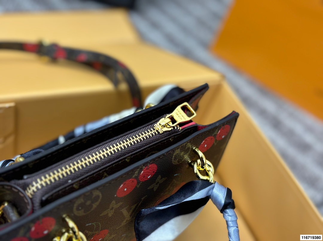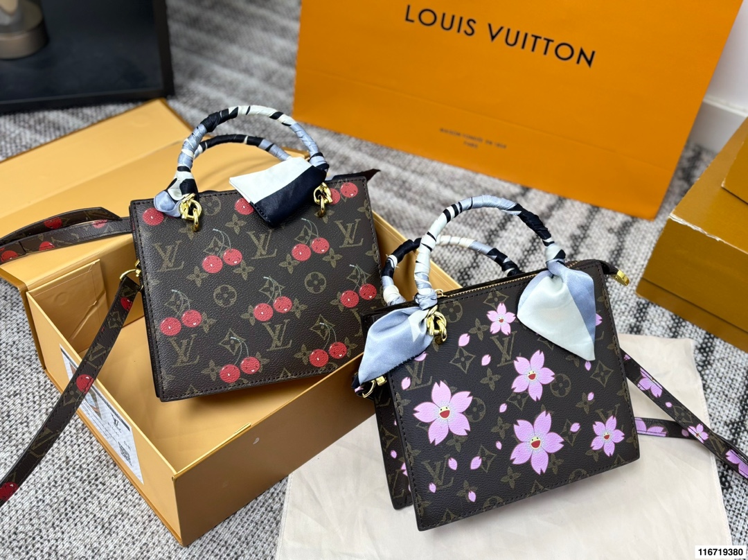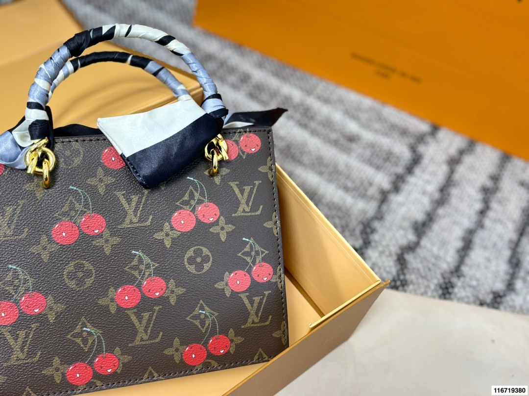 The LV cherry blossom tote bag looks absolutely stunning on! It's sure to turn heads when you're out shopping.