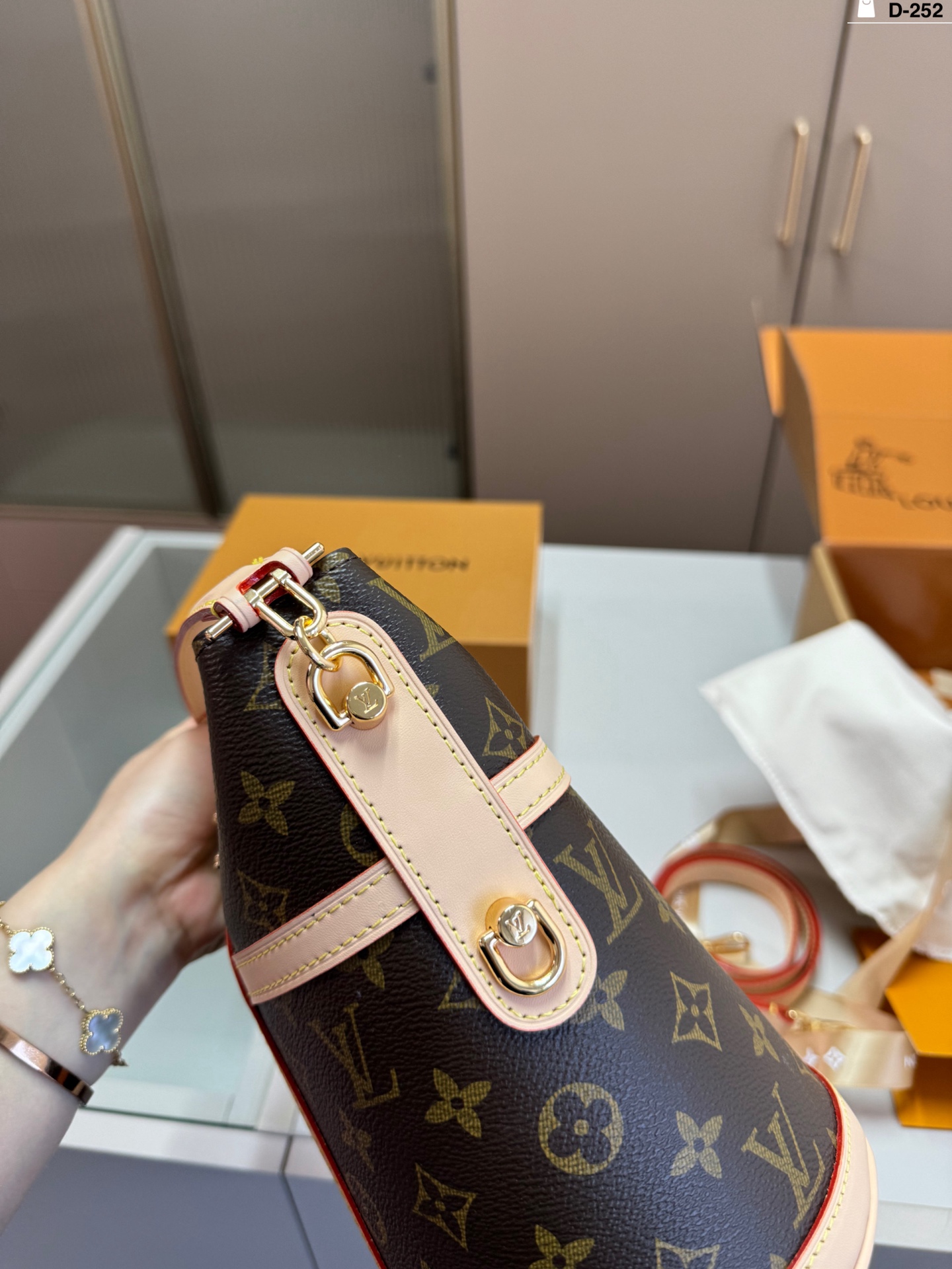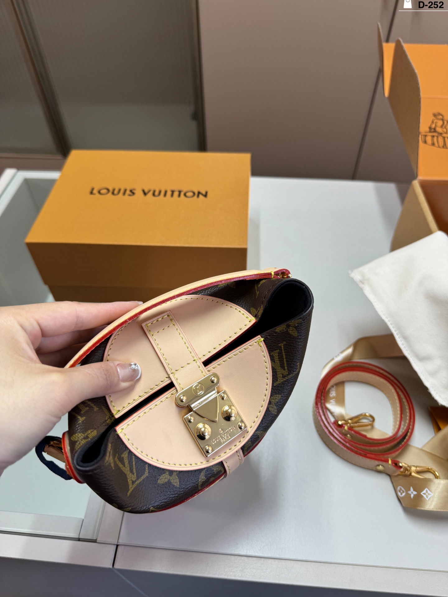 The LV Duffle bag (chip version) is incredibly cute, resembling a French fry box 🍟. It can be worn over the shoulder, crossbody, carried by hand, or worn on the wrist—a perfect prop for street style photos! The classic monogram color scheme is easy to match with any outfit, adding a touch of elegance. The bag's shape is anything but tacky, making it a fashionable and trendy choice.