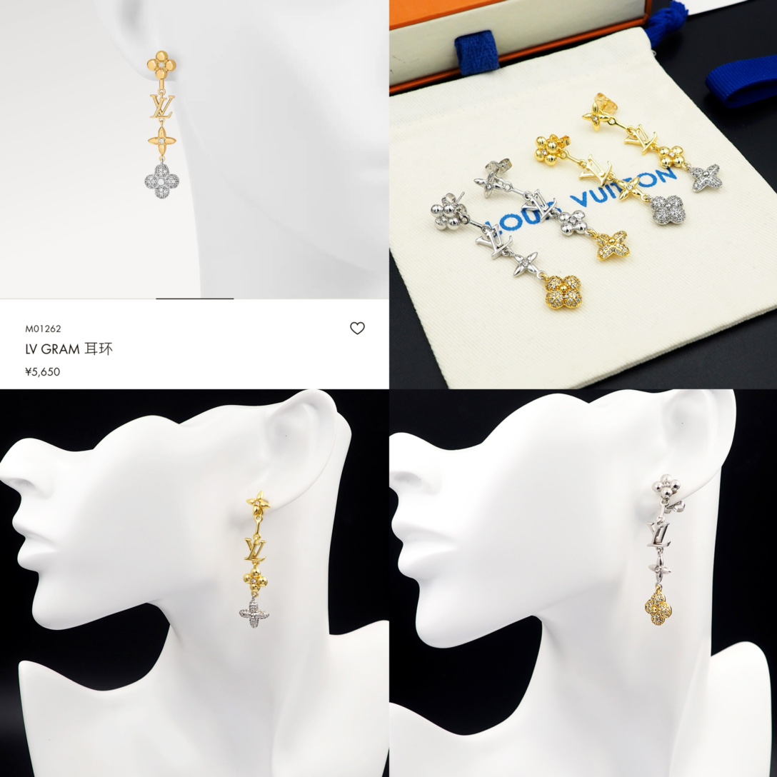 DetailThe LV Gram earrings are carved from metal in various shapes of Monogram flowers, some of which are inlaid with crystal clear zircons, and are intricately linked with the LV letters, sparkling with brilliance with every move.