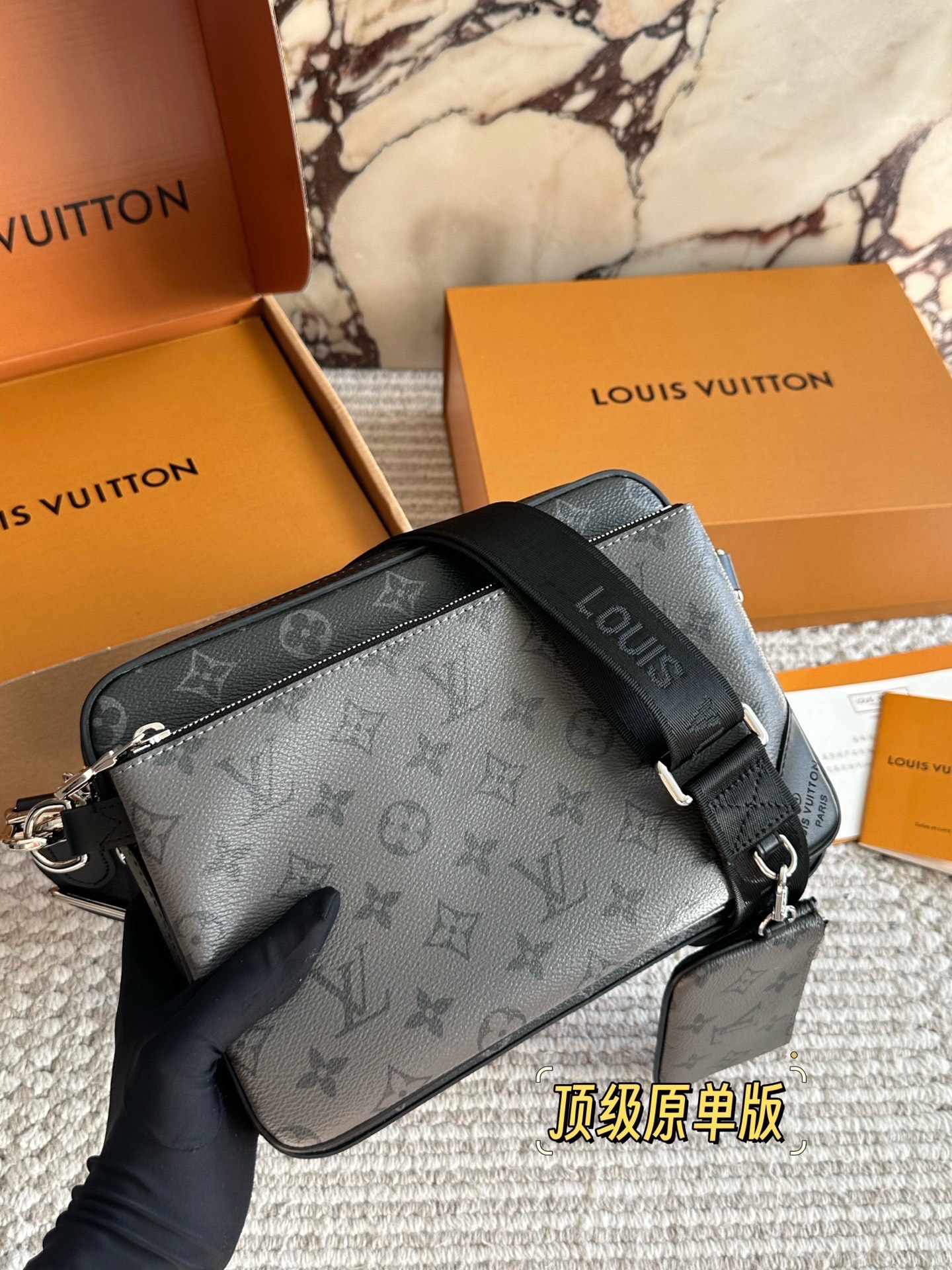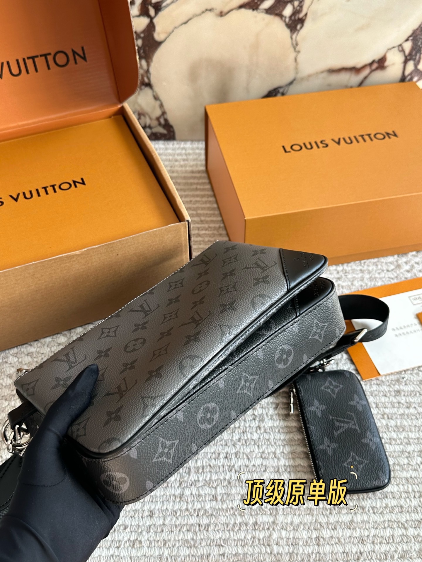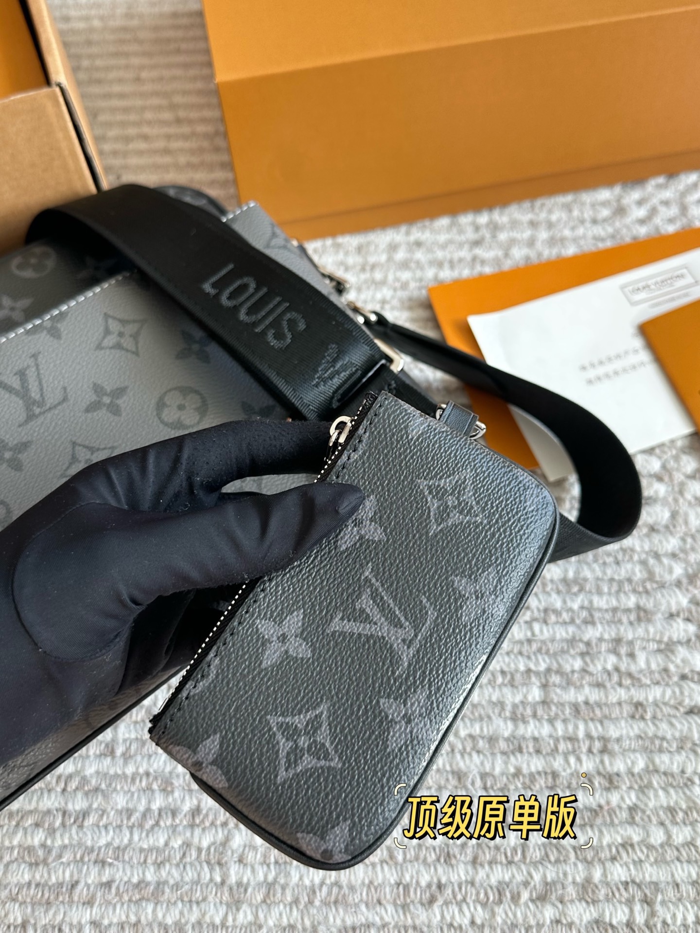 Louis Vuitton men's Trio messenger bag, a three-in-one design in black. The three-in-one style has been updated to a men's version! It features a combination of black monogram and contrasting black monogram, a must-have for black monogram enthusiasts! All parts of the men's three-in-one bag can be disassembled and combined in various ways.
