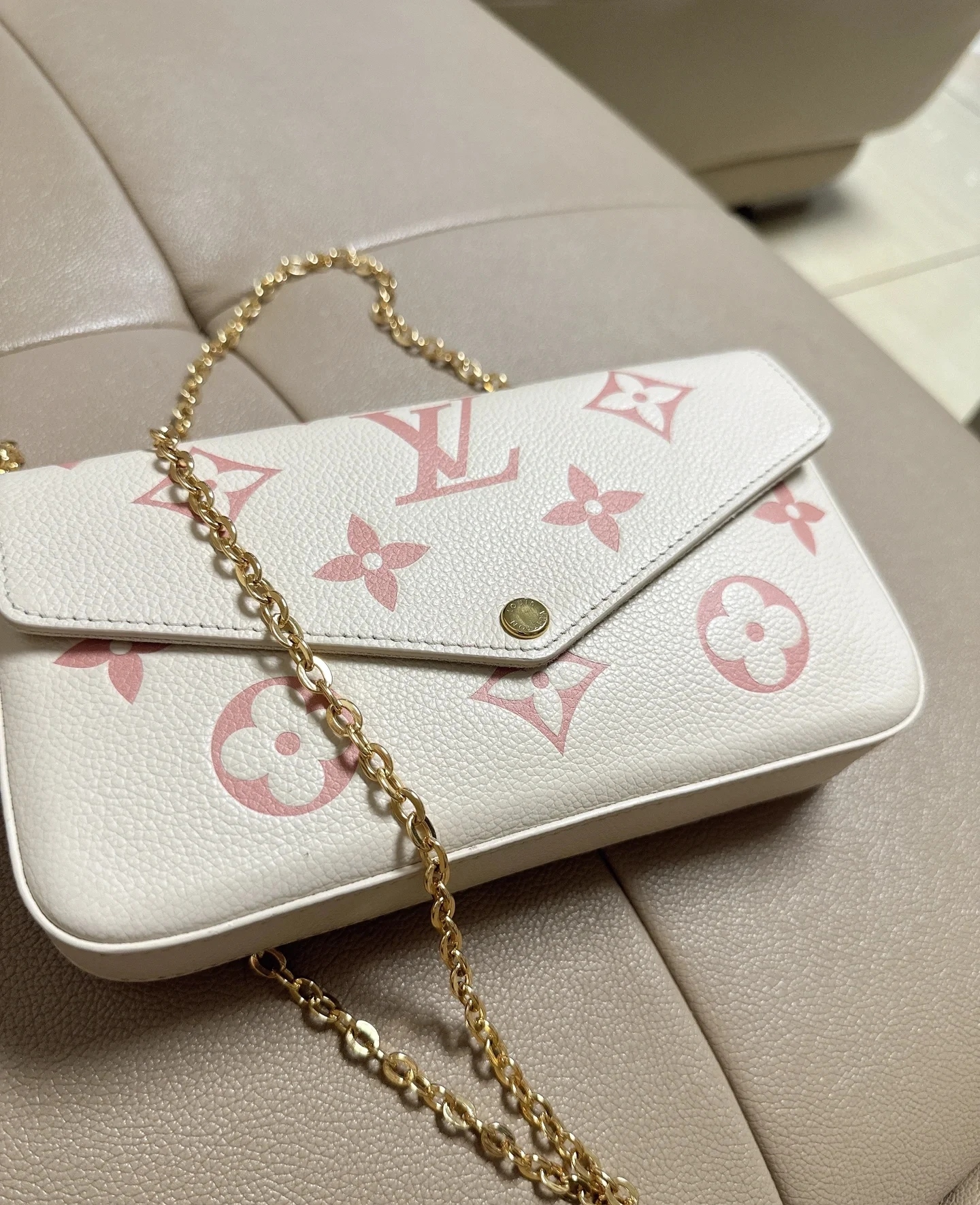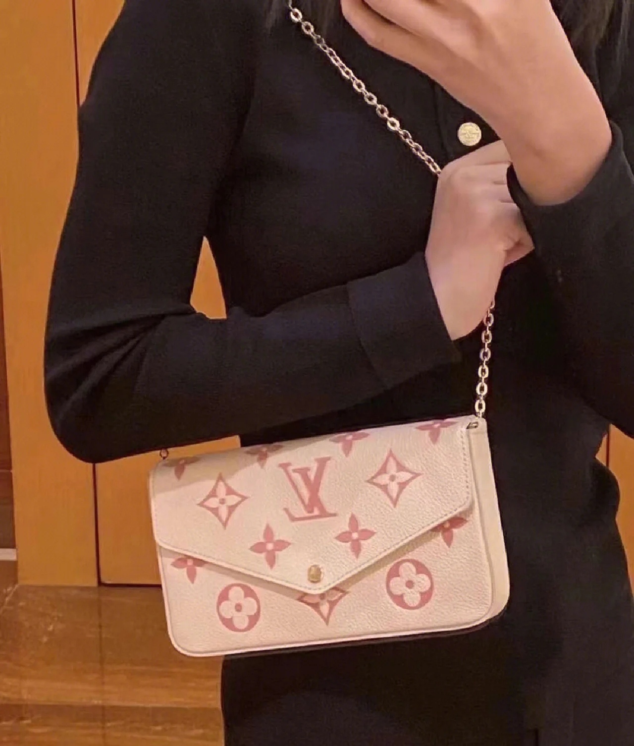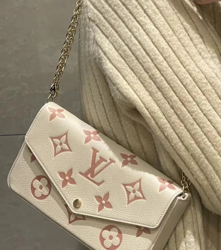 DetailLV Women's POCHETTE FÉLICIE Classic Three-piece Removable Metal Chain Bag.The design of this three-in-one chain bag is really a big surprise. It can accommodate mobile phones, ID cards, cash, keys, lipsticks and other daily small items. The point is that the three colors inside are so pleasing. The price is also very attractive. Strong recommendation!