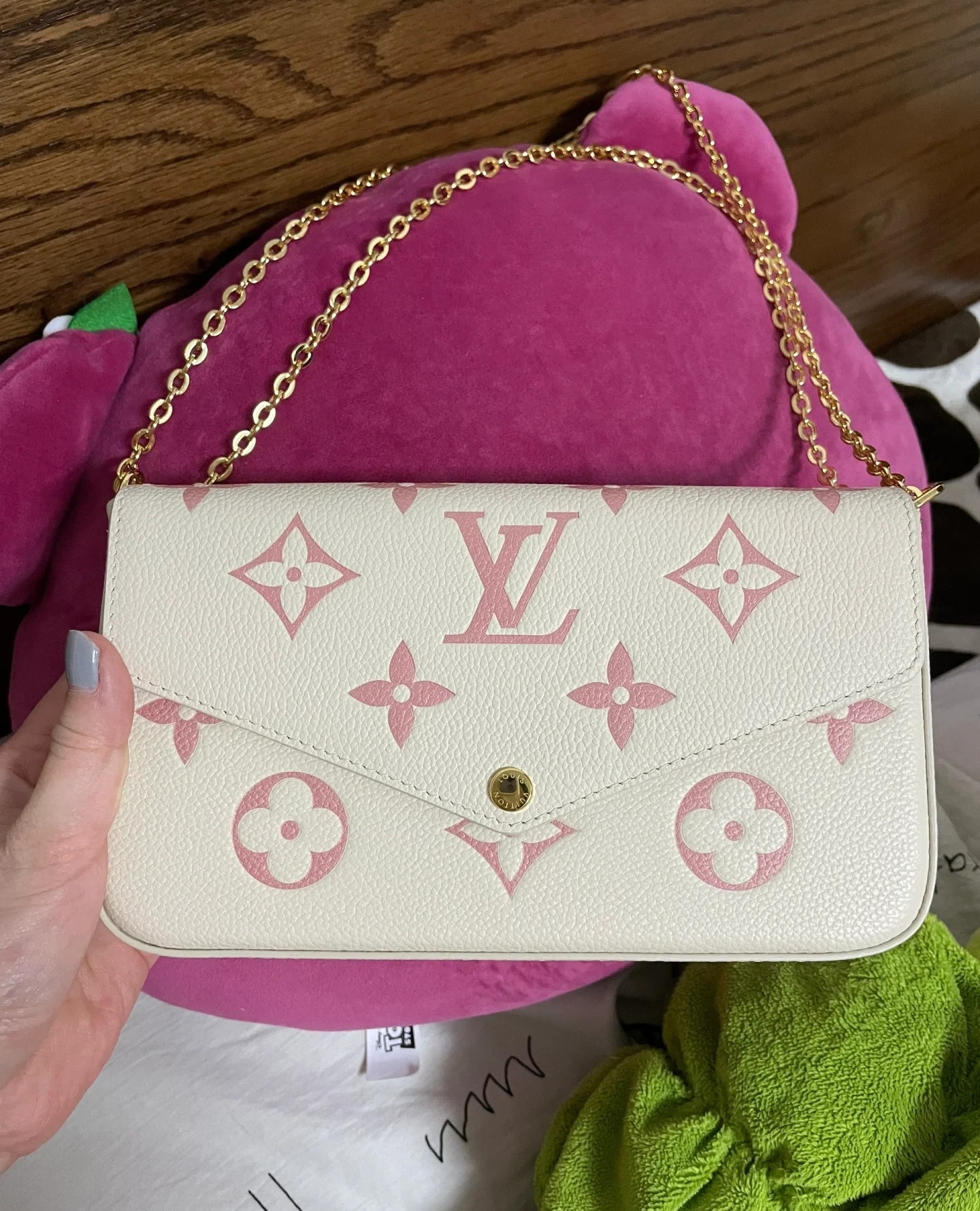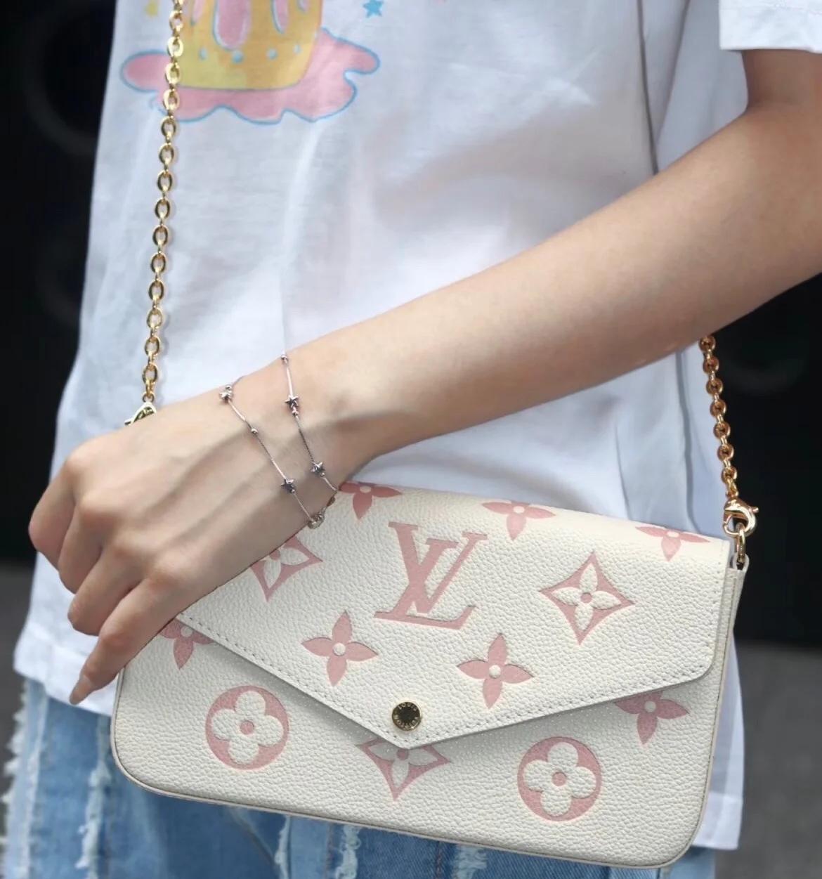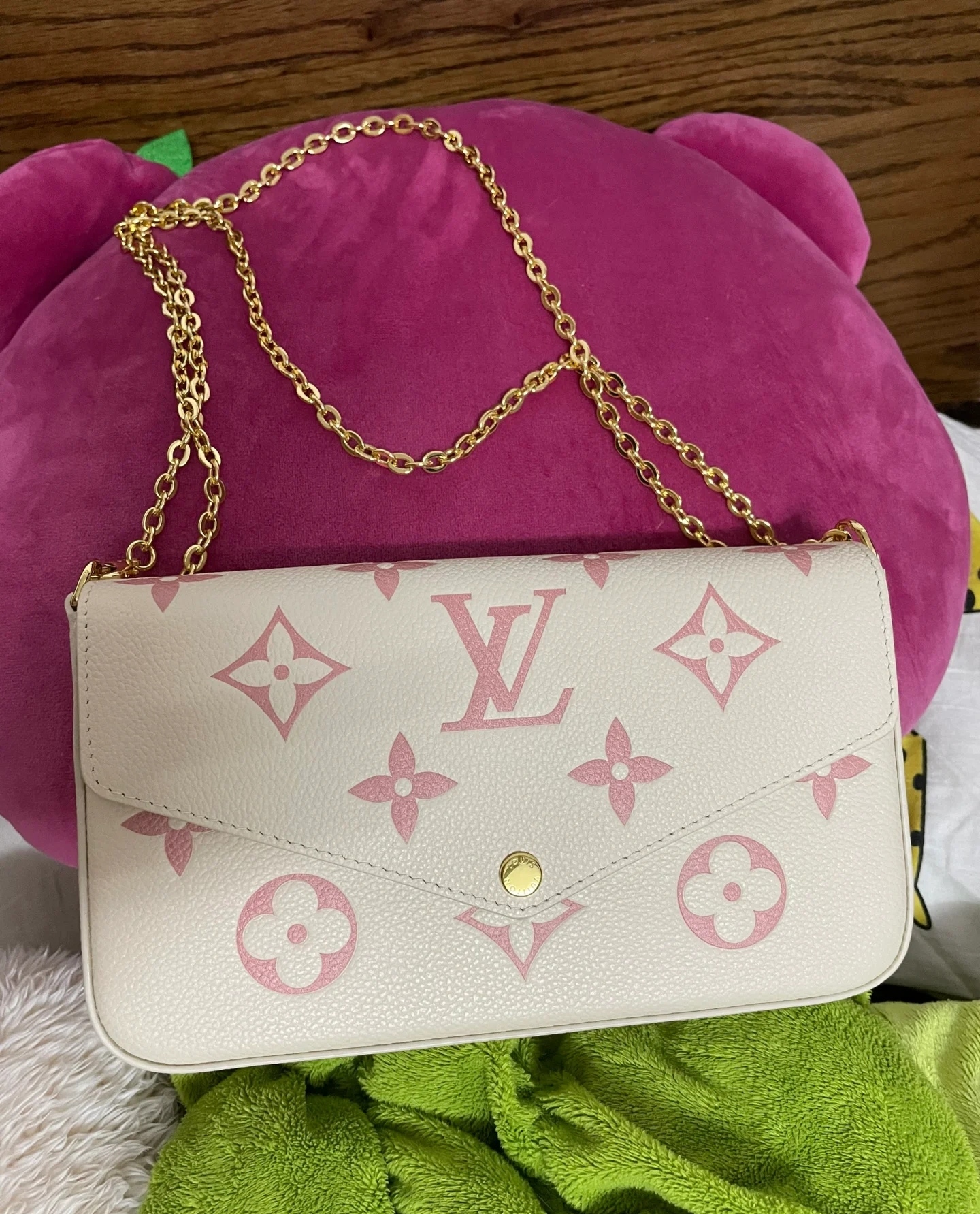 DetailLV Women's POCHETTE FÉLICIE Classic Three-piece Removable Metal Chain Bag.The design of this three-in-one chain bag is really a big surprise. It can accommodate mobile phones, ID cards, cash, keys, lipsticks and other daily small items. The point is that the three colors inside are so pleasing. The price is also very attractive. Strong recommendation!