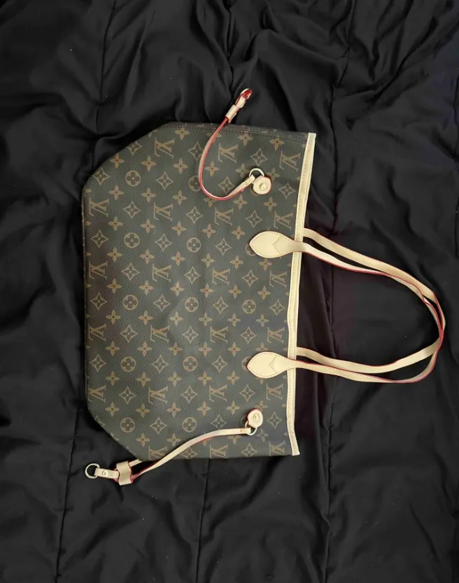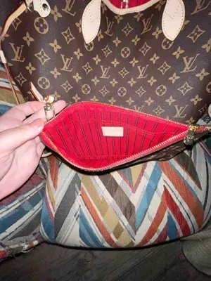 This bag is super cute! Btw 100% good review. I love this bag. Came with a dust bag and genuine tag. Has the inside pocket. it is super cute. Looks wrinkled in pictures but trust me it's not. Super cute bag and totally worth the price in my opinion. Thanks so much seller!!!
