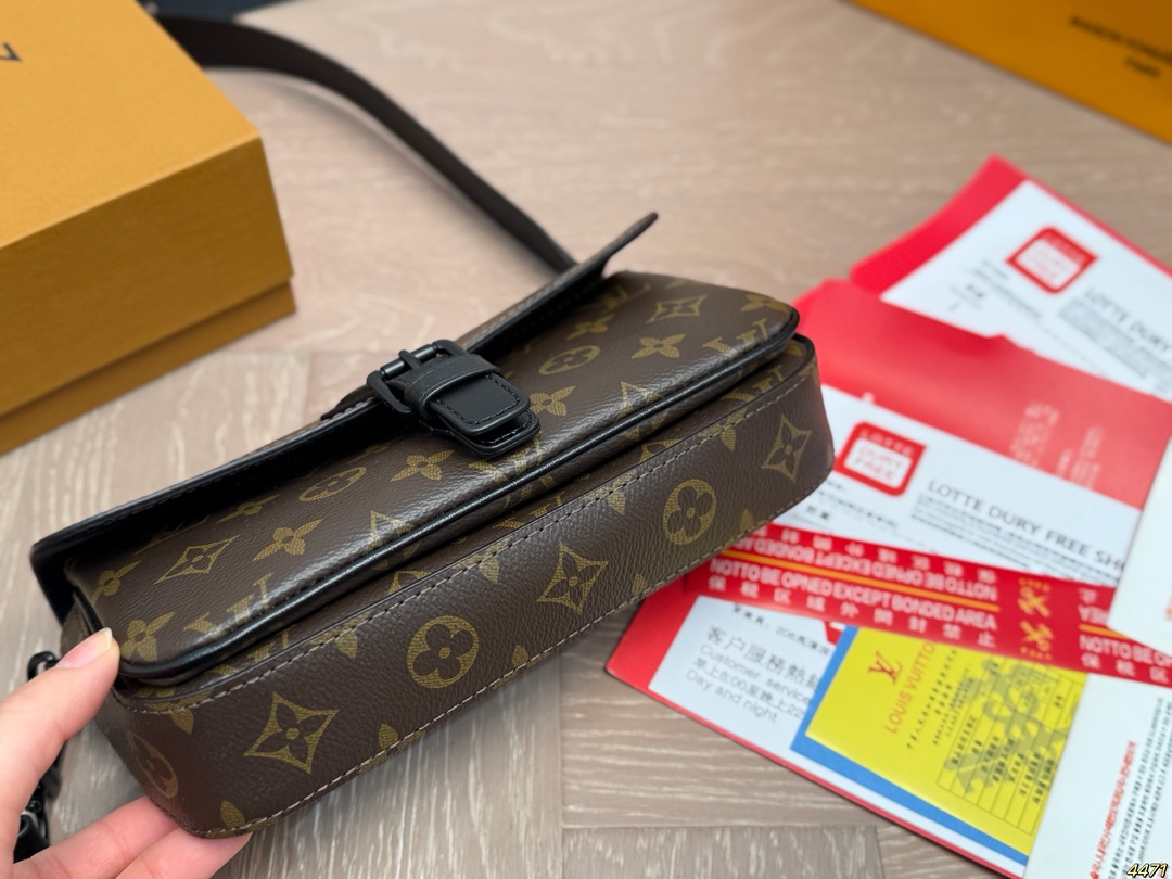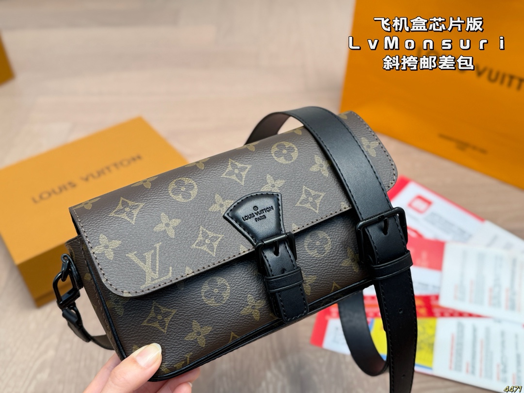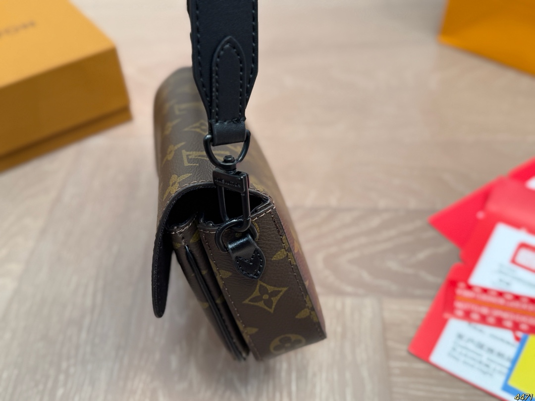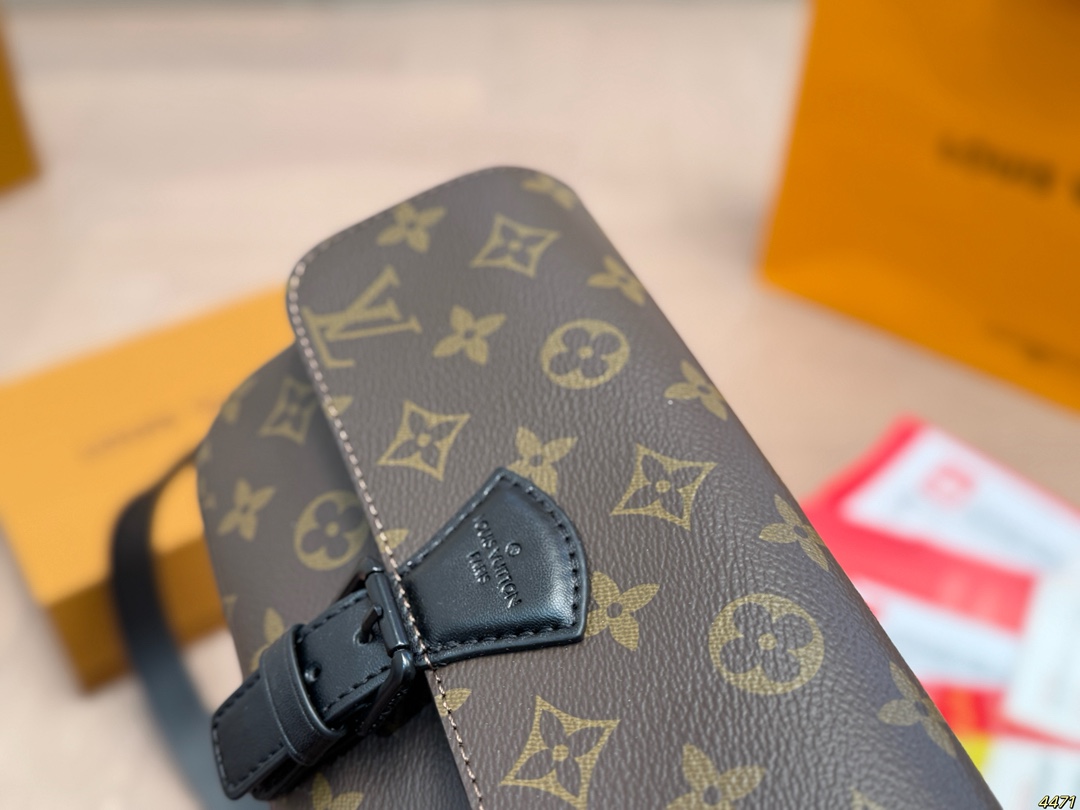 DetailLV Monsuri Crossbody Messenger BagLatest Spring/Summer Montsouris Collection Men's Small Crossbody BagThe rectangular shape has a bit of a baguette feelThe overall all-black design is so cool! The wide leather shoulder strap is also understated and versatile.