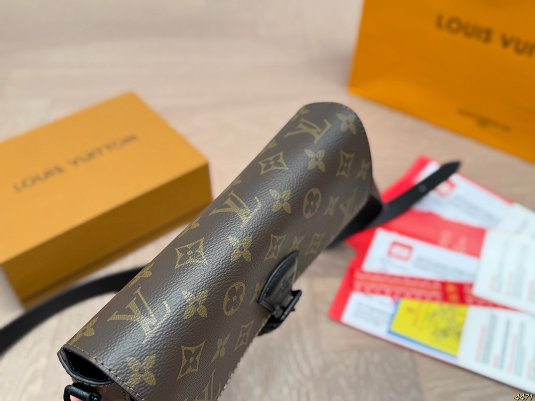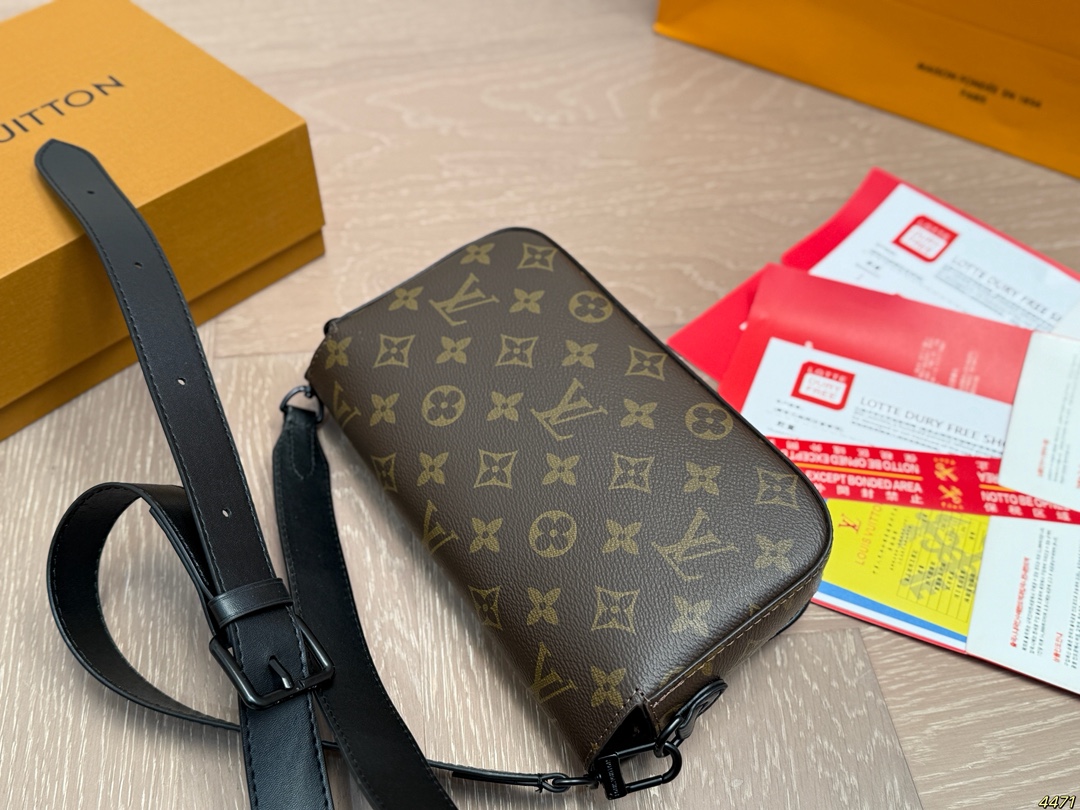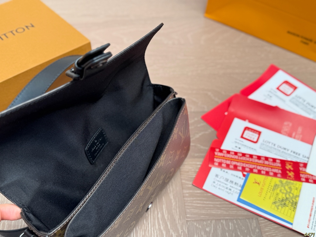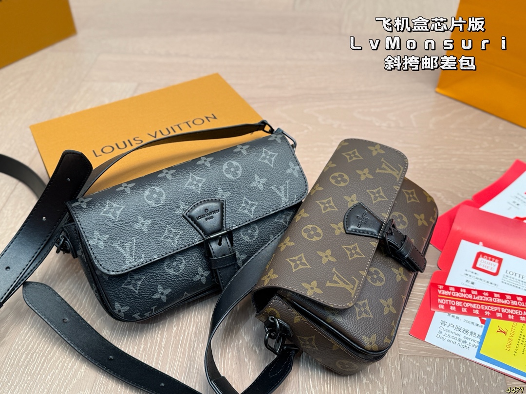 DetailLV Monsuri Crossbody Messenger BagLatest Spring/Summer Montsouris Collection Men's Small Crossbody BagThe rectangular shape has a bit of a baguette feelThe overall all-black design is so cool! The wide leather shoulder strap is also understated and versatile.