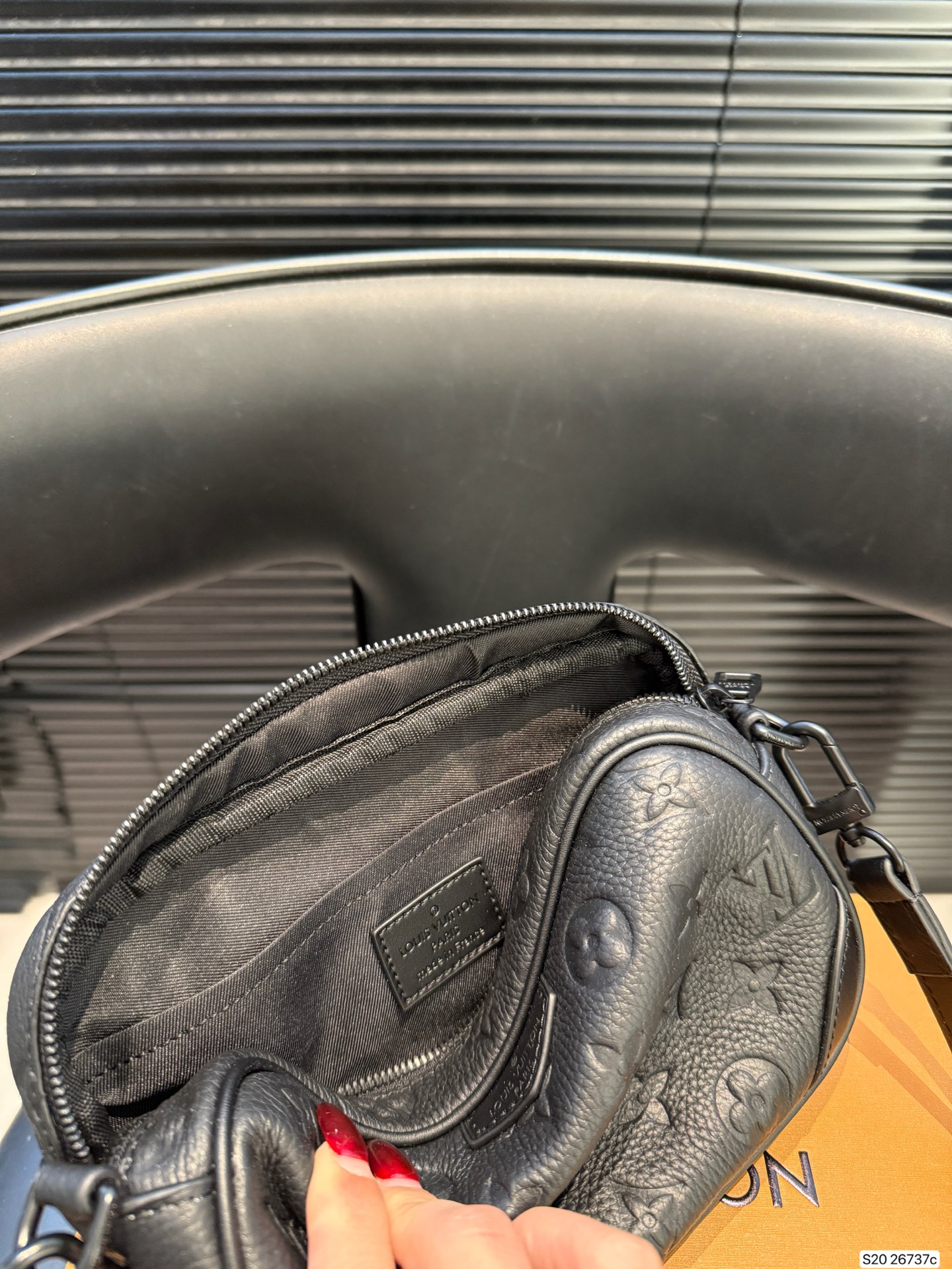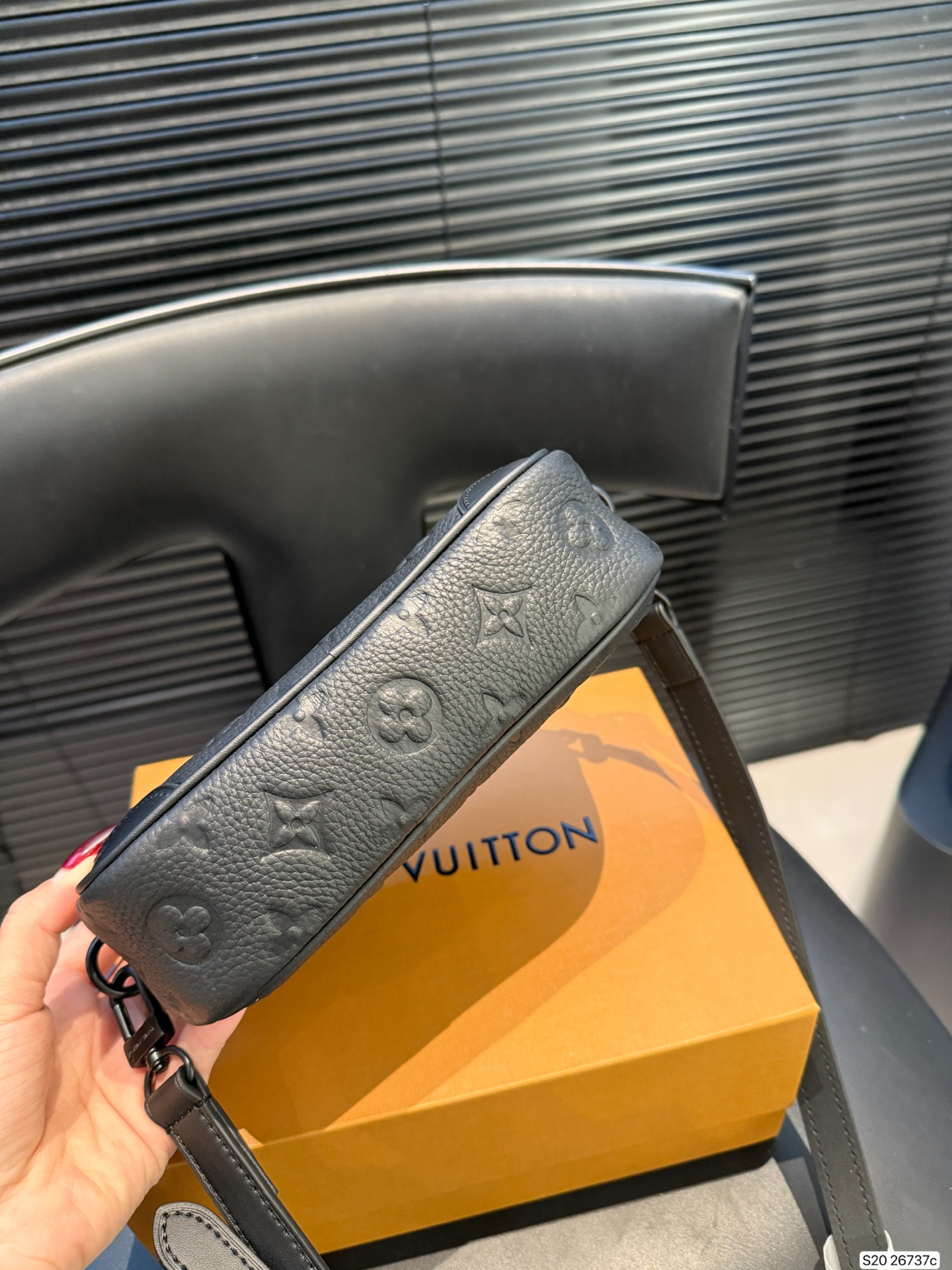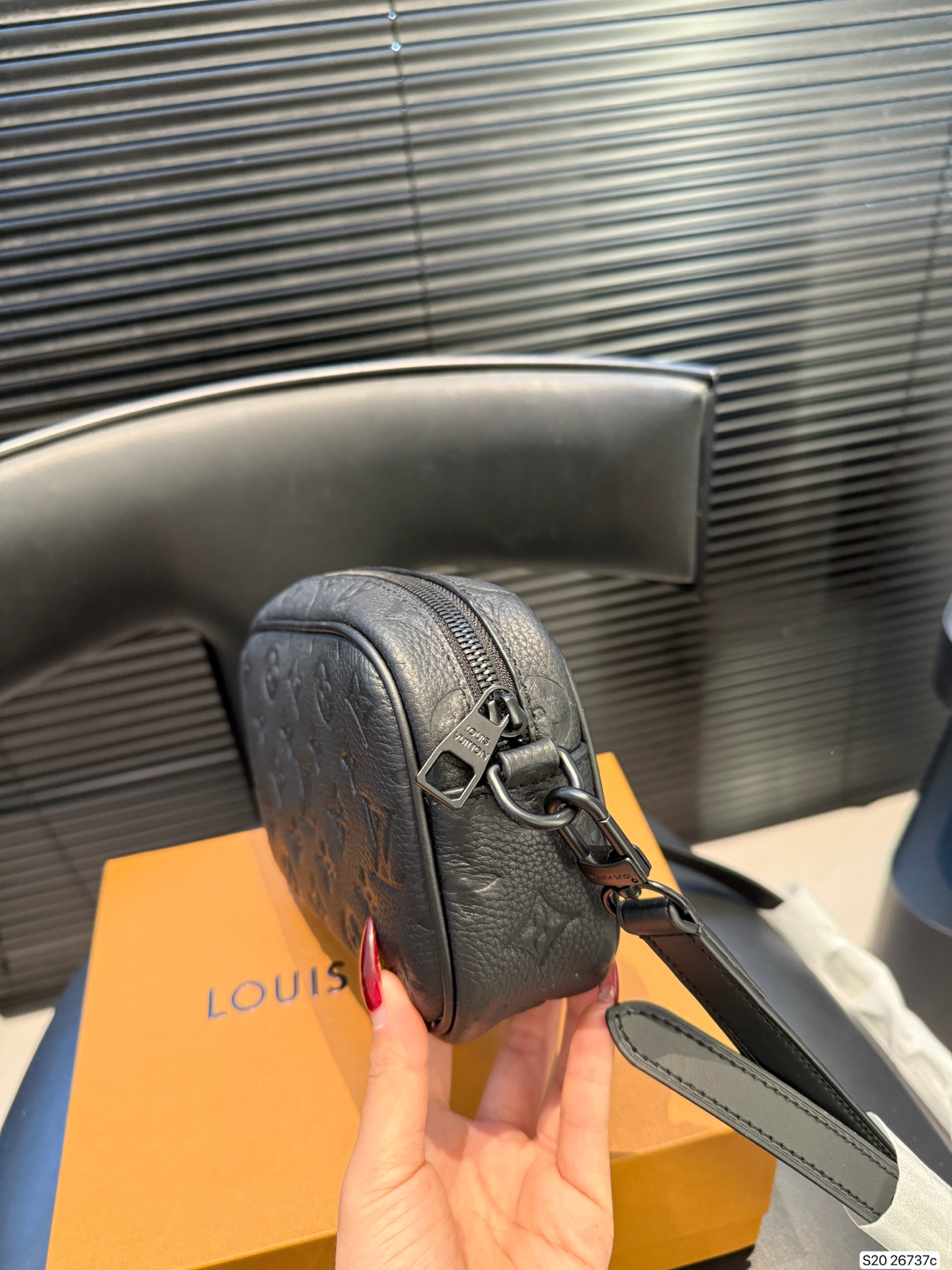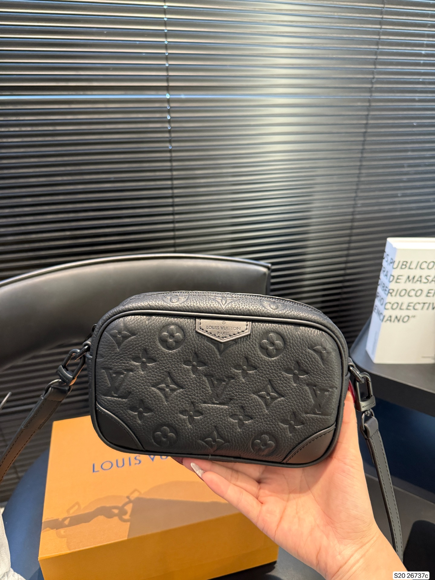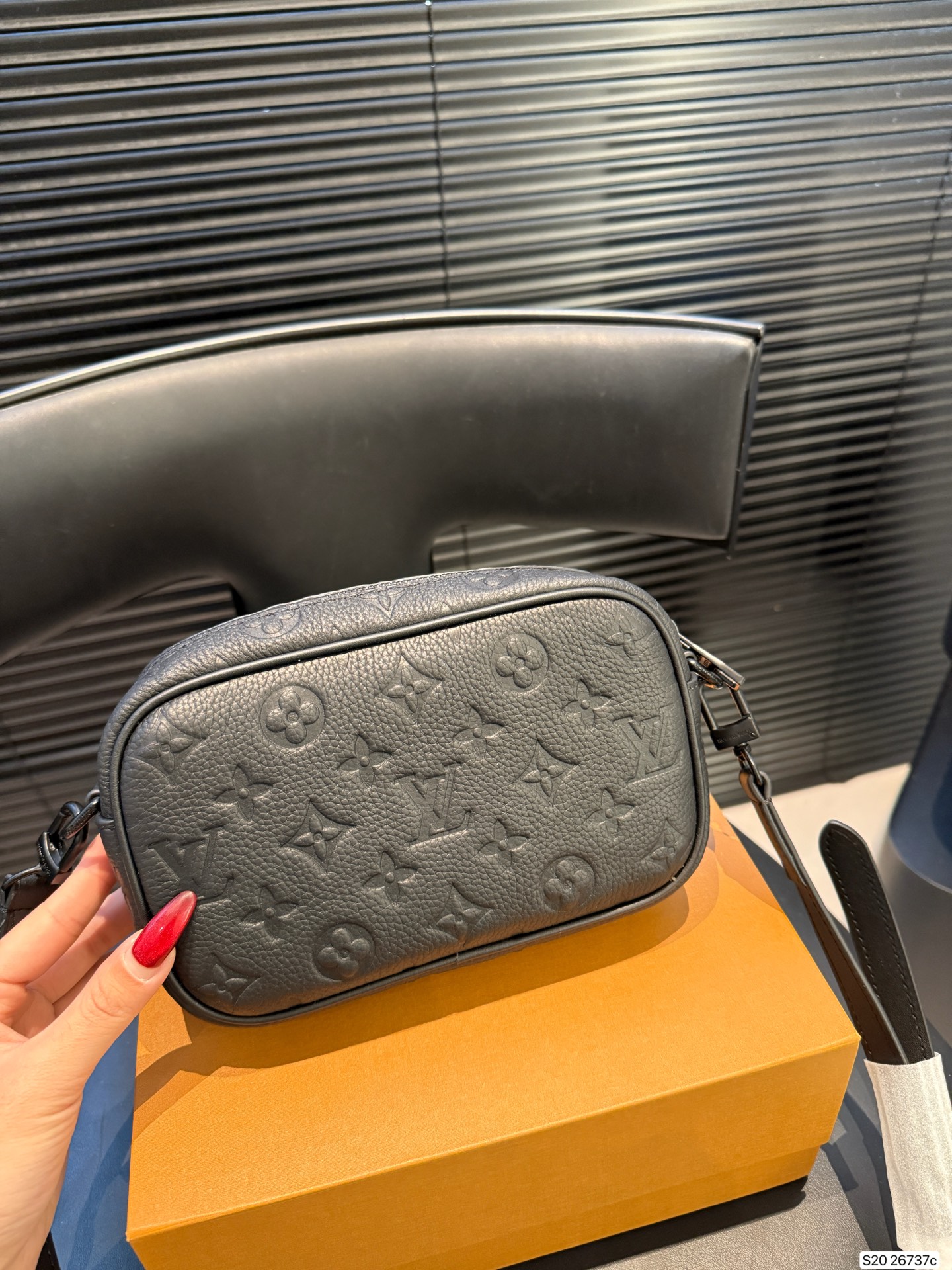 The LV Nano Alpha men's camera bag is crafted from Monogram Empreinte embossed calfskin, offering a delicate and durable texture. The all-black color scheme and zipper closure create a simple yet stylish look. Compact and portable, the adjustable shoulder strap allows for crossbody or shoulder carrying, making it perfect for commuting. The well-organized interior easily accommodates a phone and wallet, combining practicality with style.