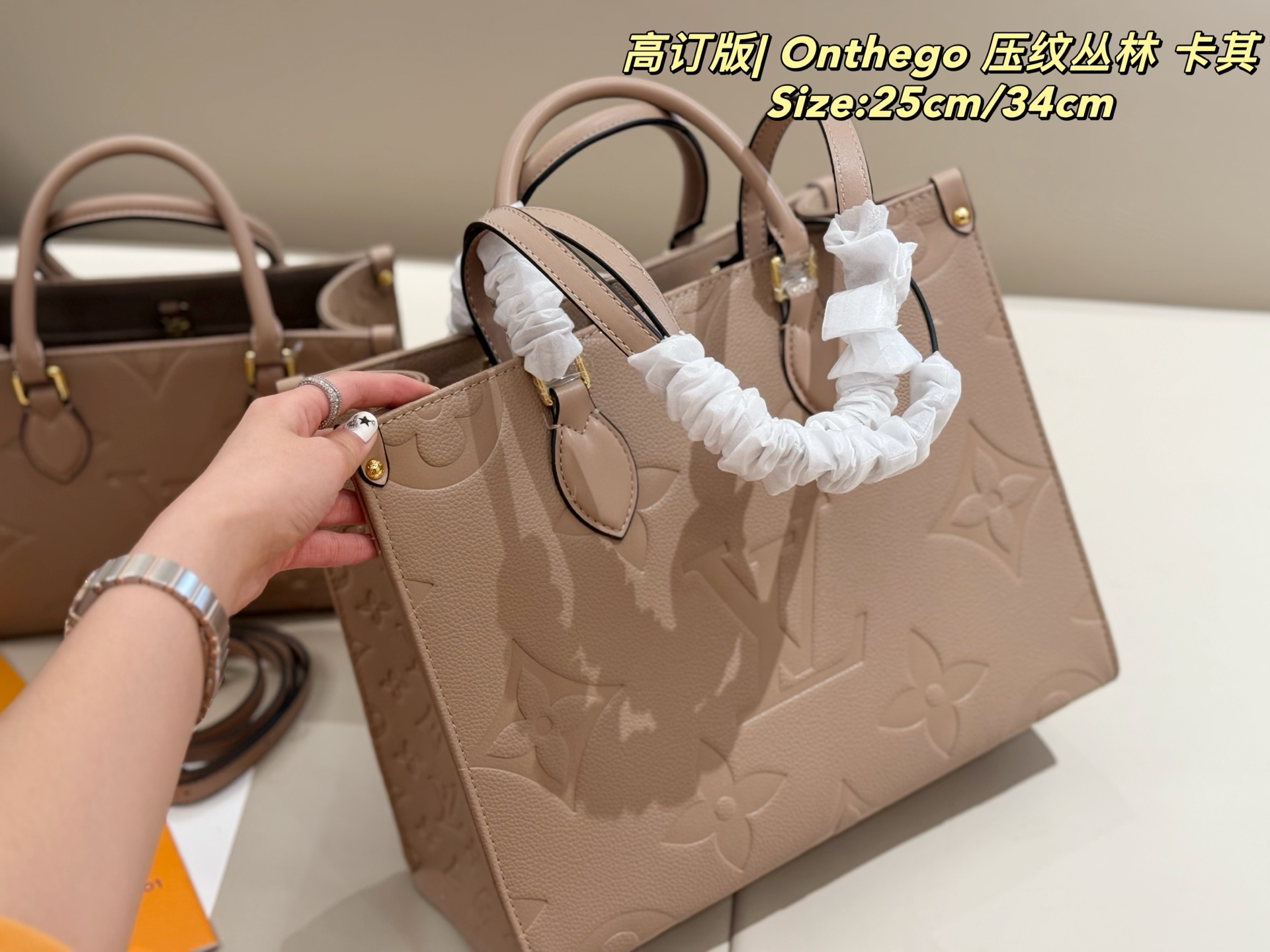 • LV Onthego Embossed Jungle Khaki Tote Bag