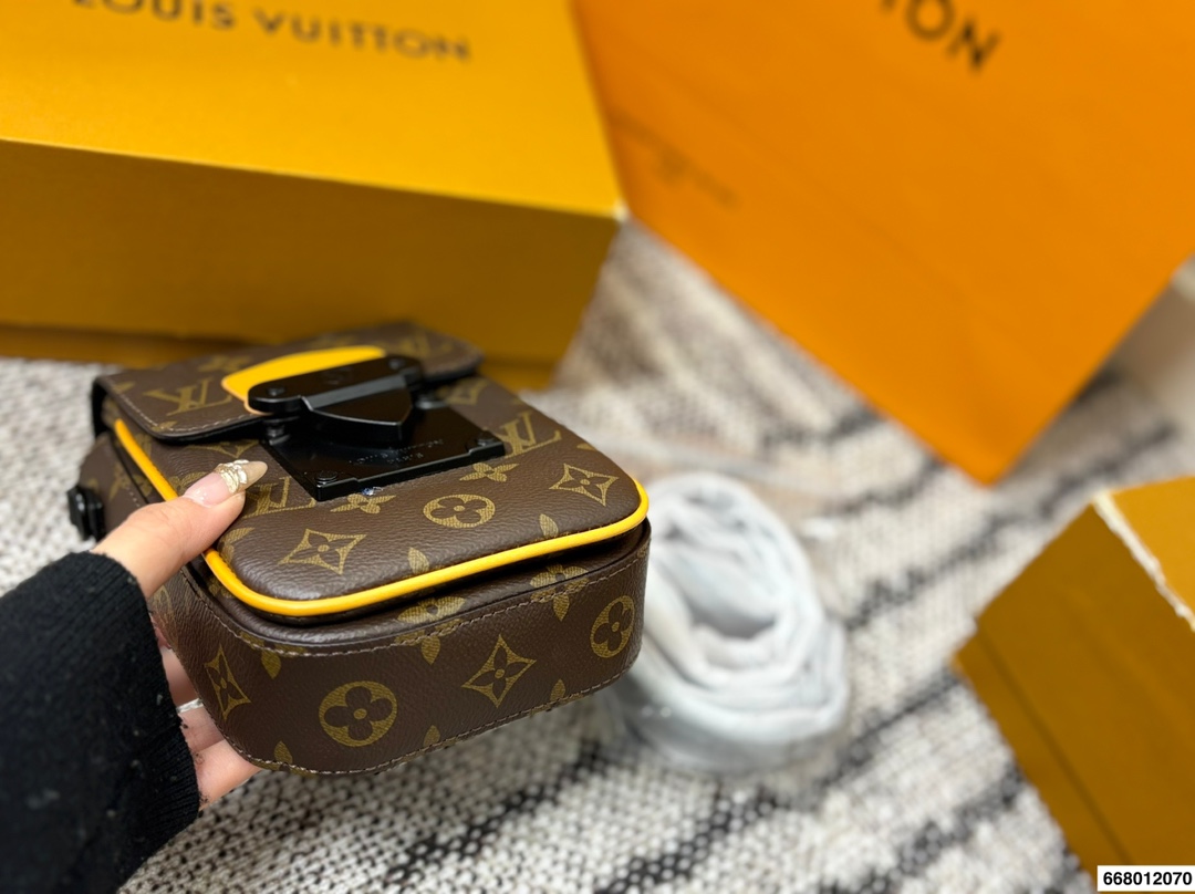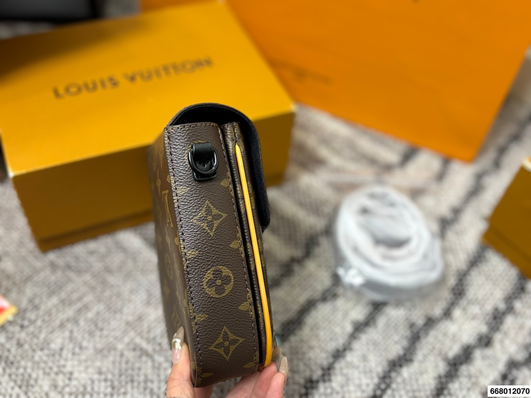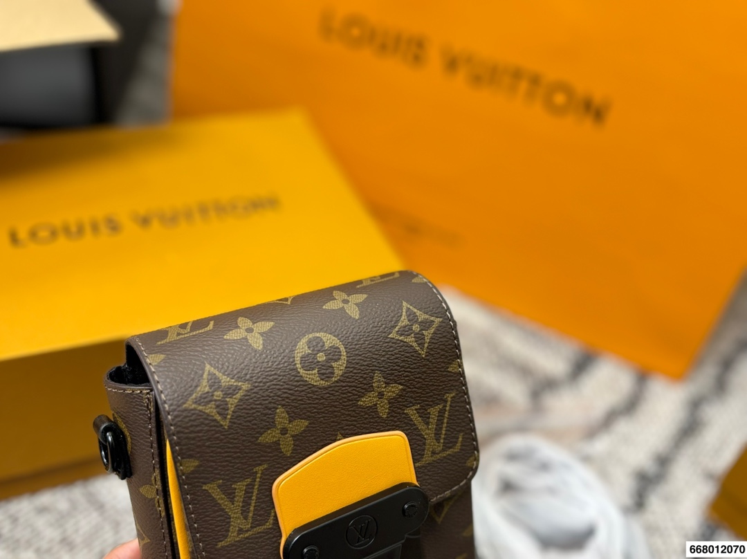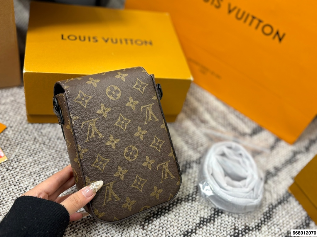 DetailThe LV Slock phone bag is incredibly stylish and timeless. The metal magnetic clasp replaces buttons and zippers, making it super convenient to access your belongings. Its clean, sleek design eliminates any unnecessary lines. It looks stunning on women too. The large capacity can hold several phones. It's both beautiful and functional.