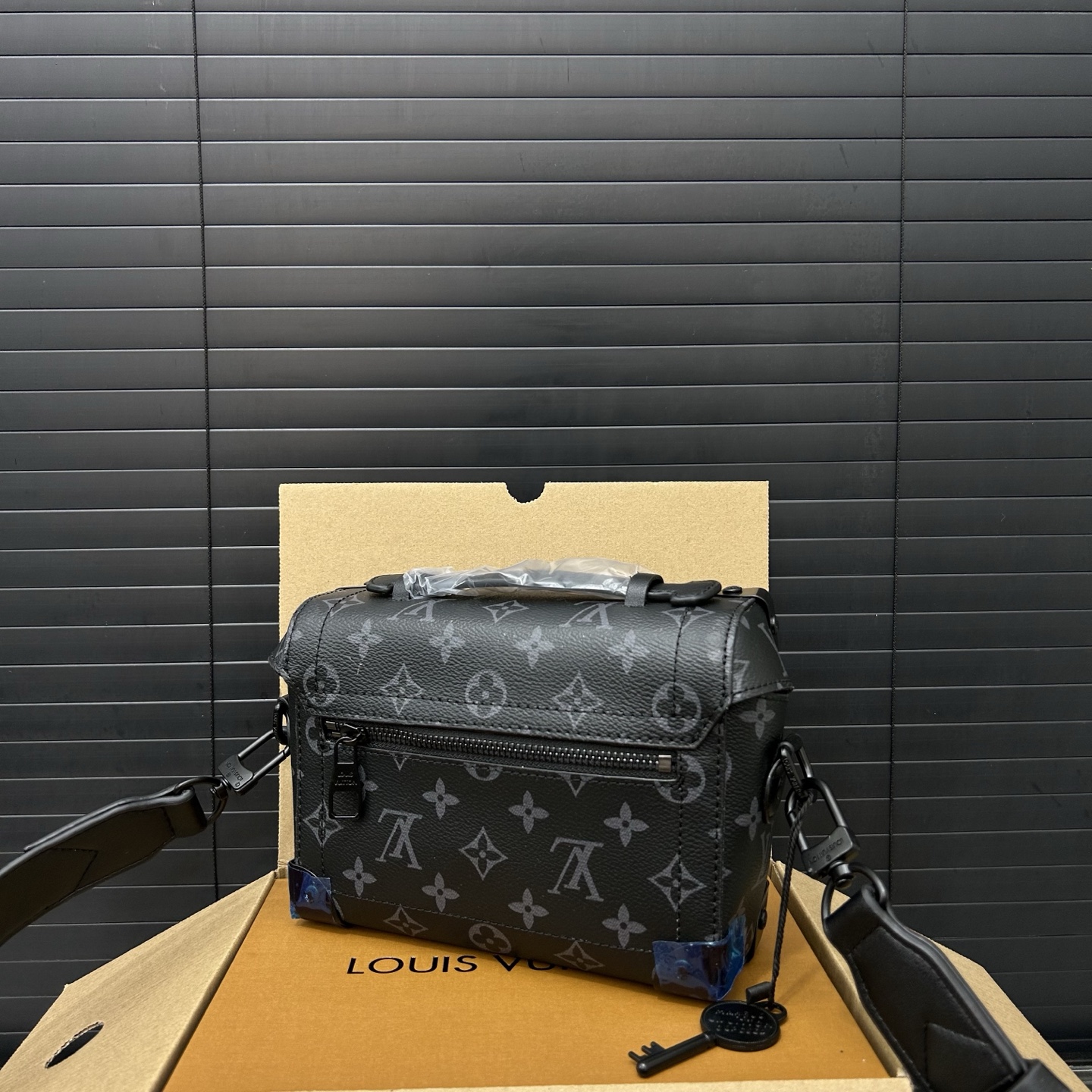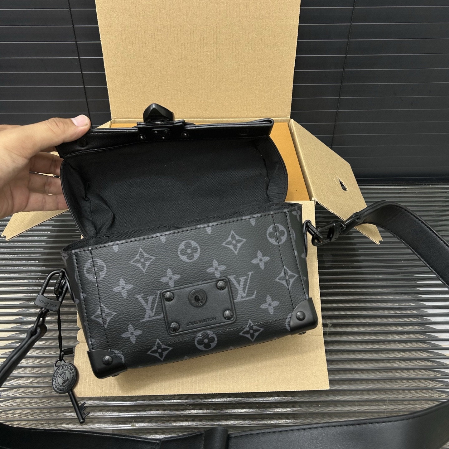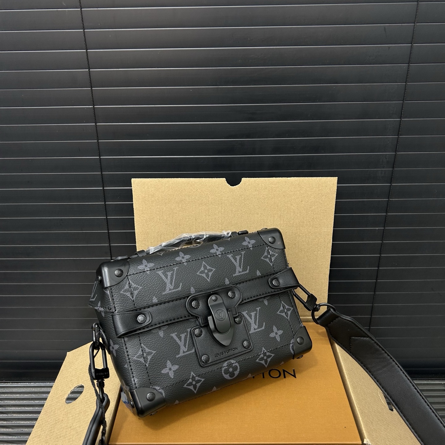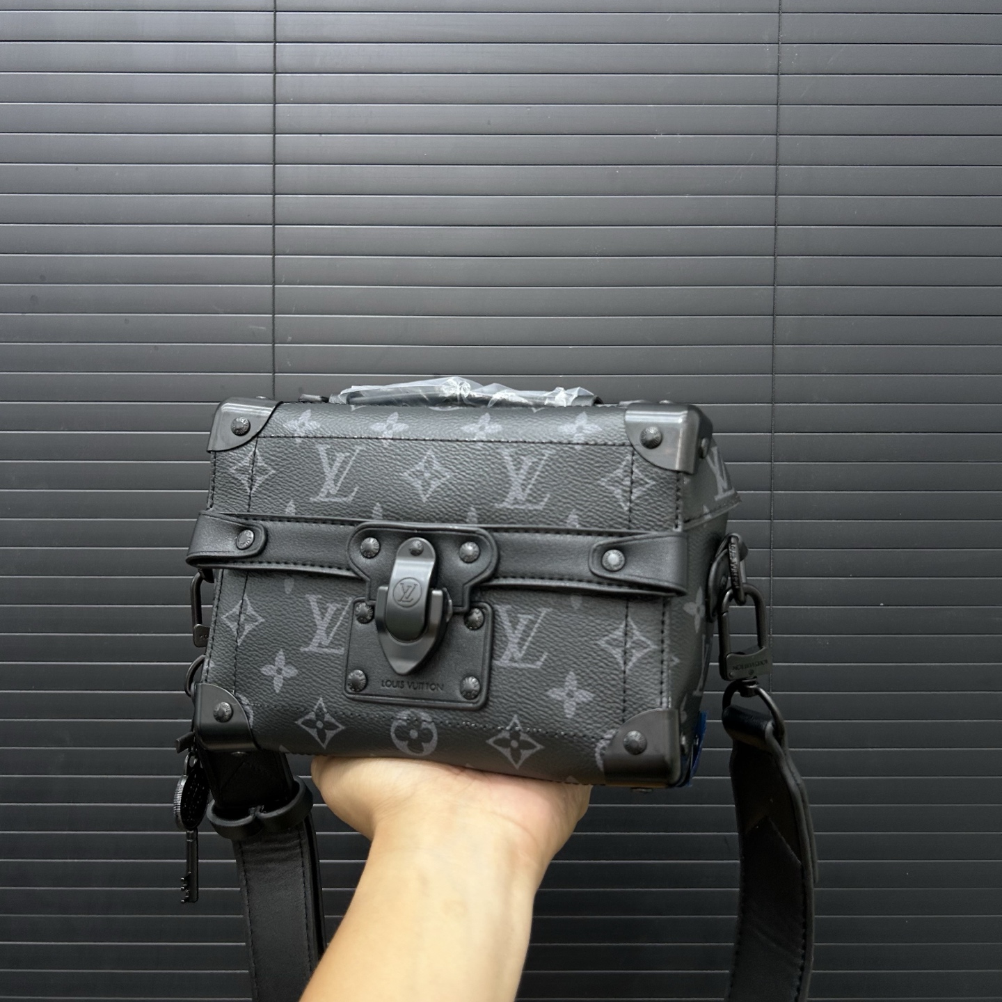 LV SOUL TRUNK distressed detachable and adjustable shoulder strap with lock closure Monogram Heritage coated canvas box bag shoulder messenger bag unisex camera bag real shot original fabric.