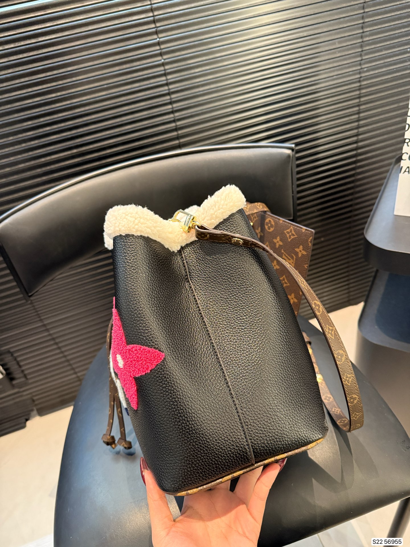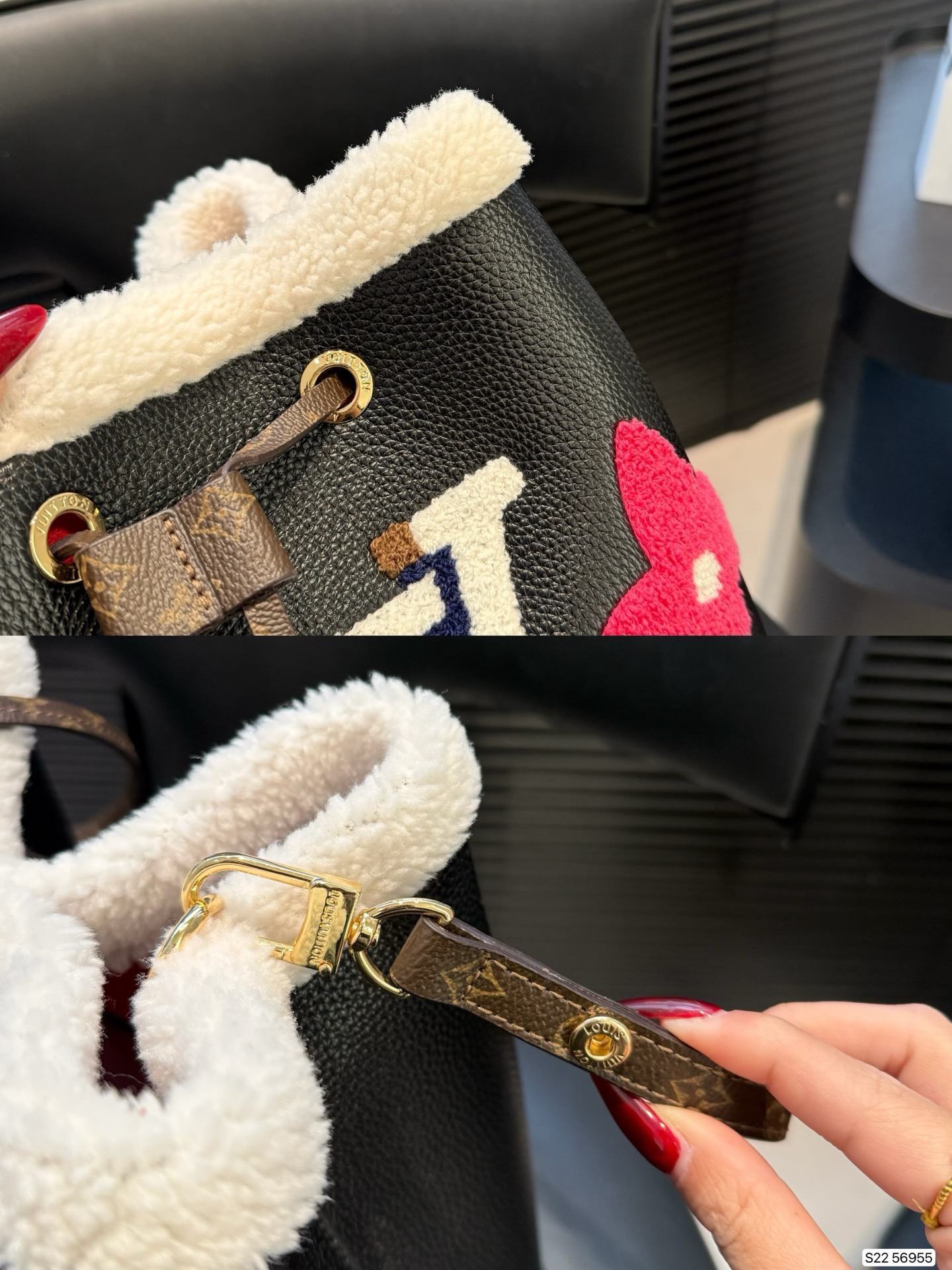 DetailThe LV teddy bear bucket bag is here!! It looks so warm!It's so cute!The design is also fantastic! The color scheme is perfect for autumn and winter! It's easy to match! Made of pebbled cowhide with the monogram pattern, plus the enlarged logo and shearling elements on the opening and edges, it's super autumnal!