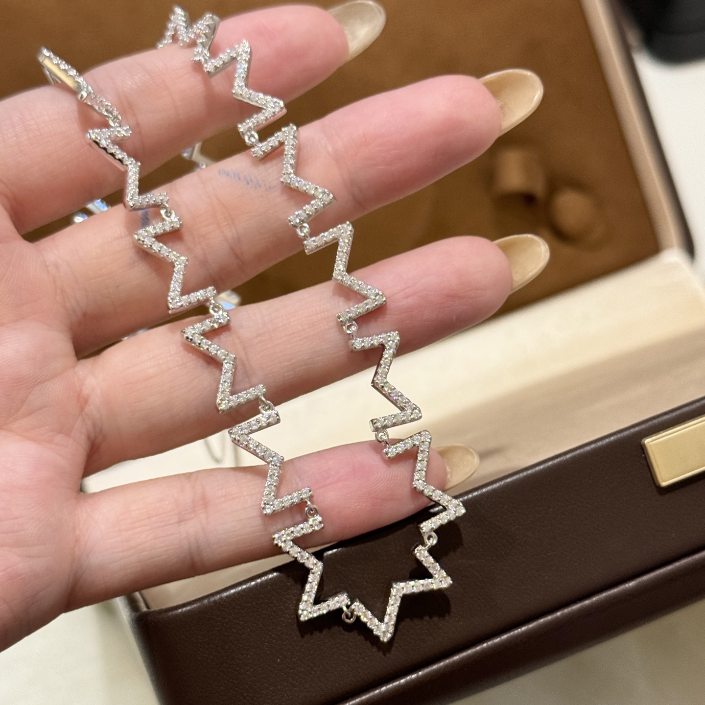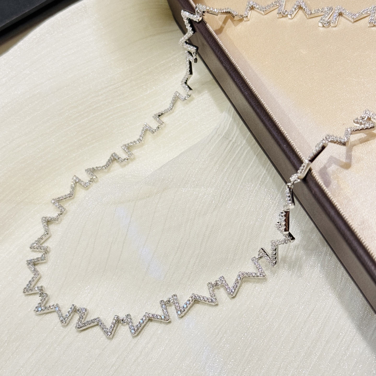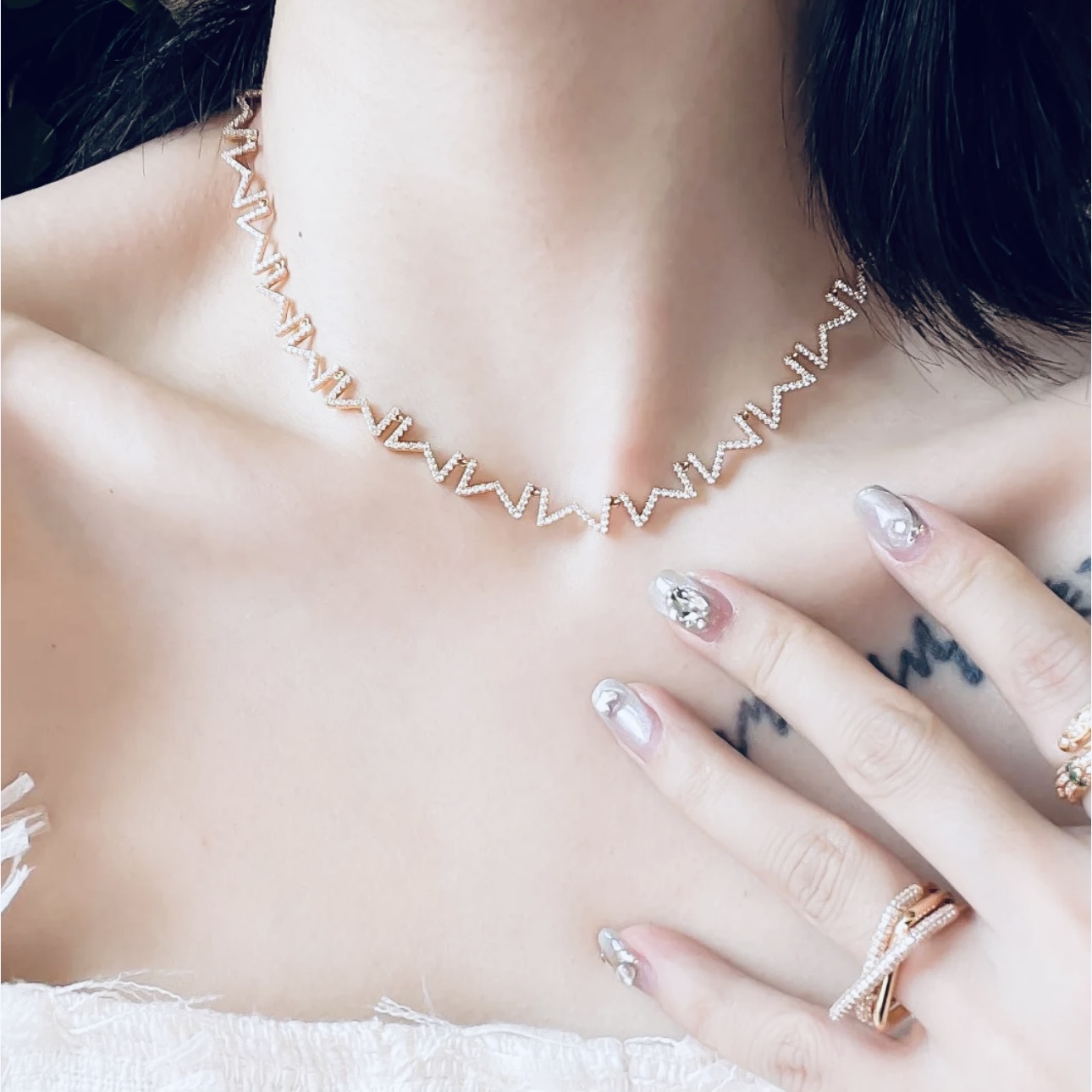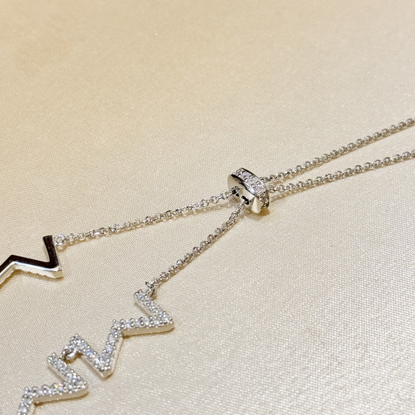 DetailIndependent designer's new letter M necklace, featuring diamonds, made from high-end 925 sterling silver with 18k gold plating for long-lasting color retention! Rich texture, exquisite workmanship, and a unique platinum-colored sterling silver necklace.