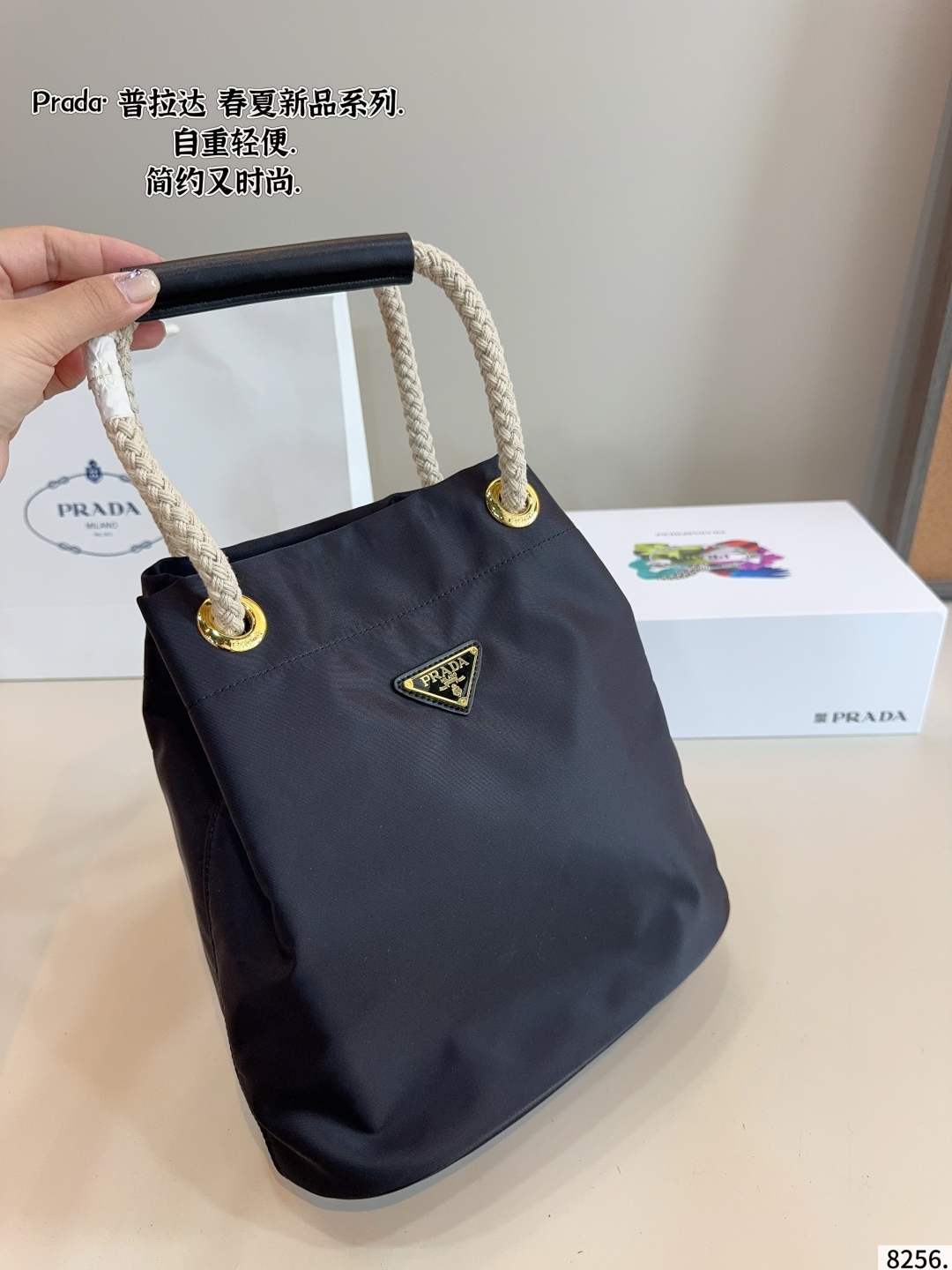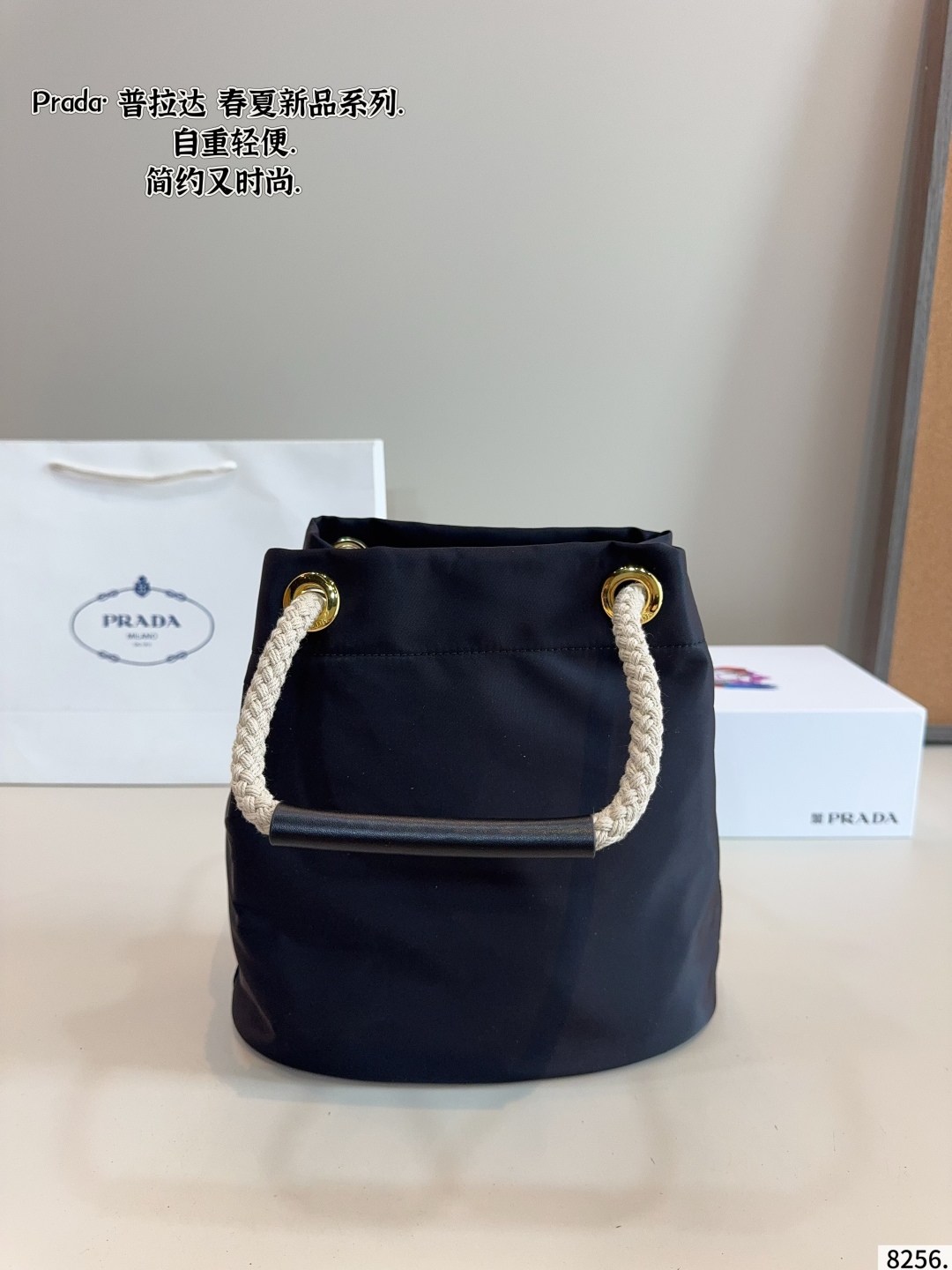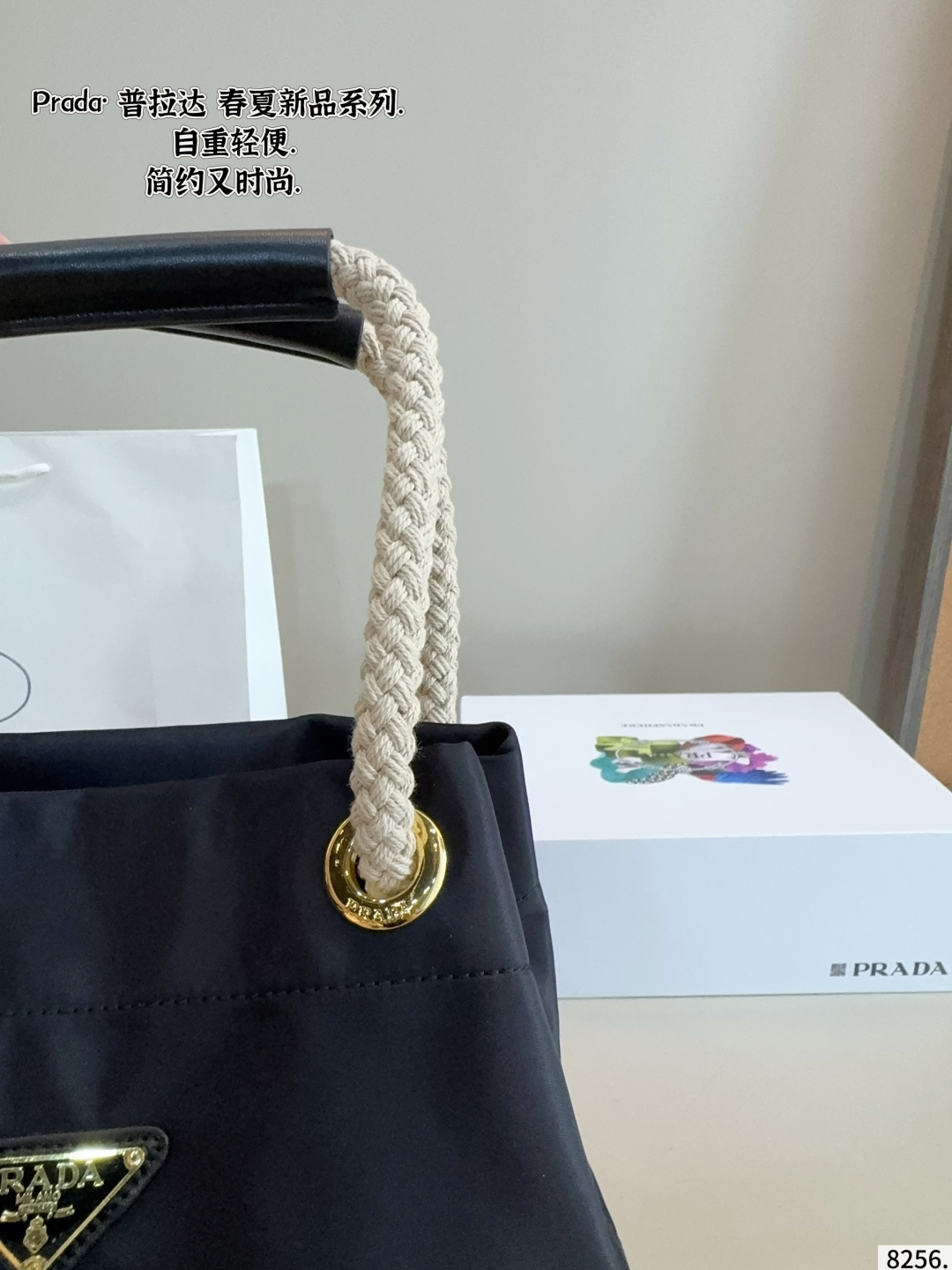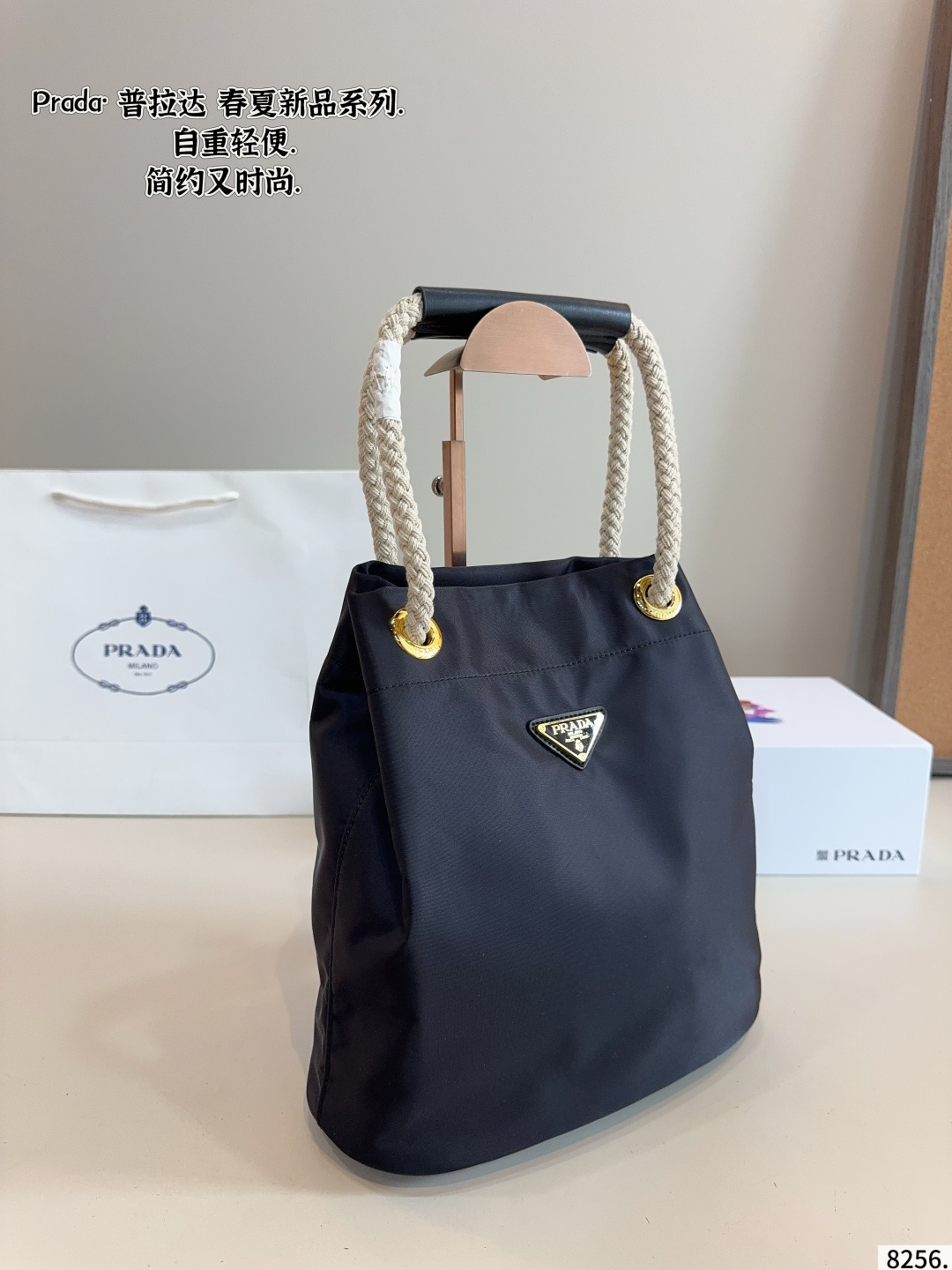 DetailPrada woven underarm bucket bag. Easily interpret retro fashion. The bag is wide and simple, and does not need too much decoration. It can be paired with a suit and a T-shirt to fully reflect the sense of luxury!