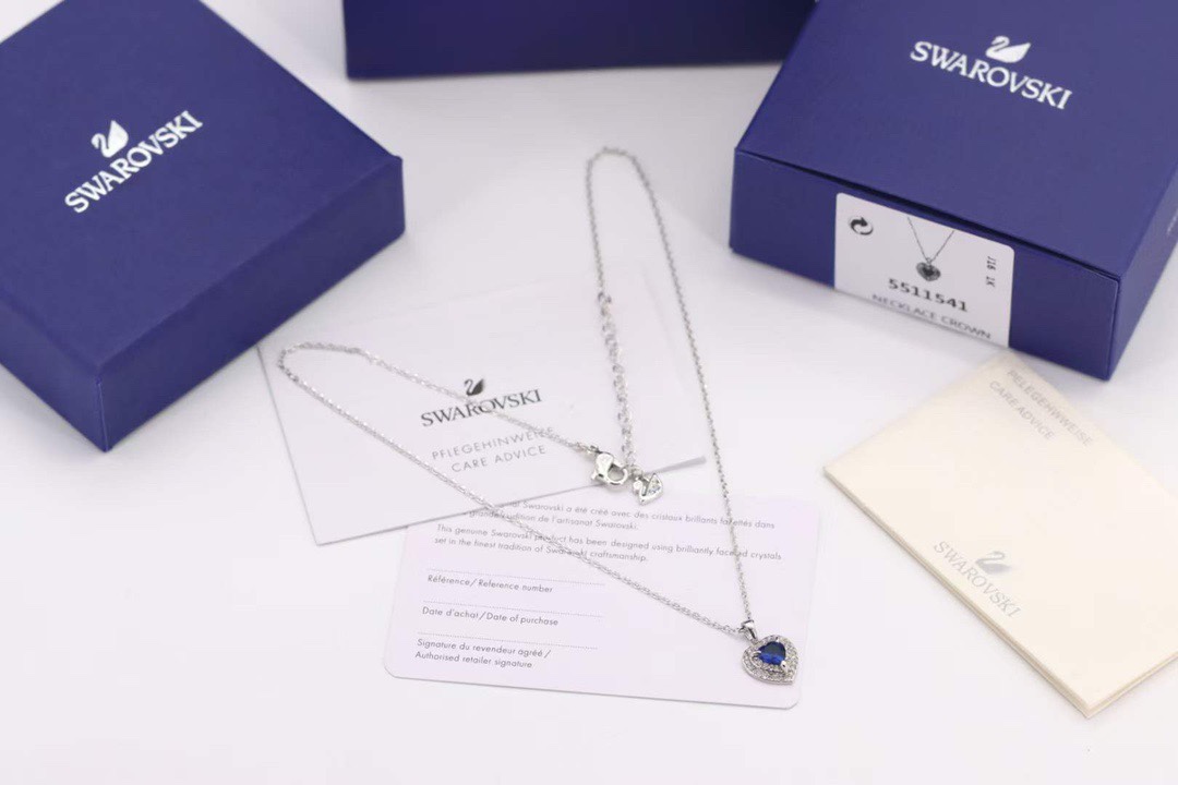 This dazzling white gold necklace features a heart-shaped pattern in deep blue Swarovski crystals. Perfect for everyday wear or as a gift for that special someone.