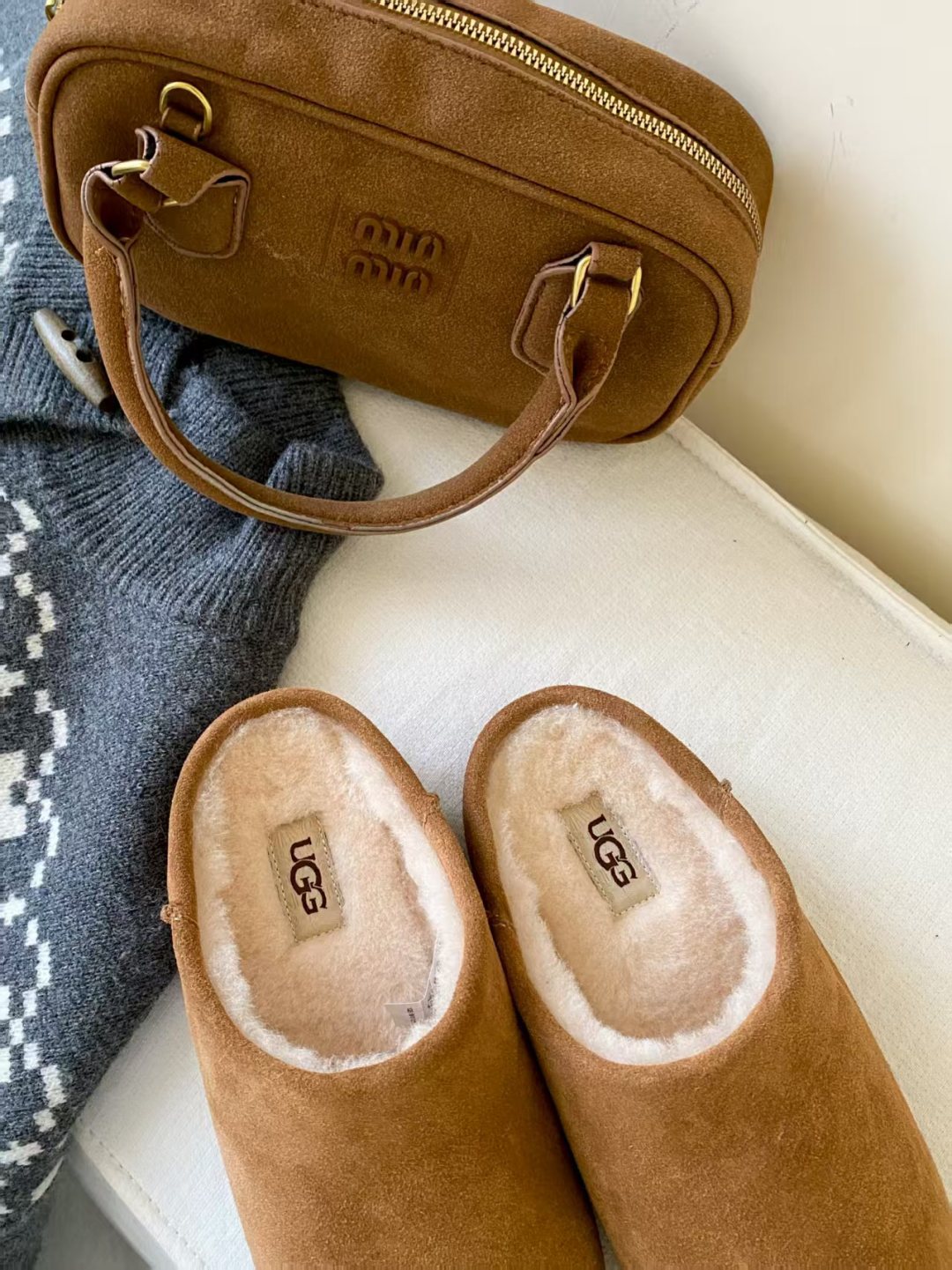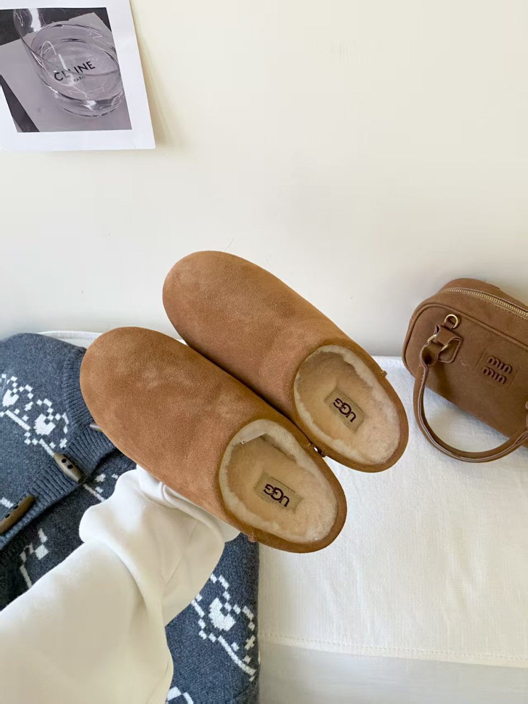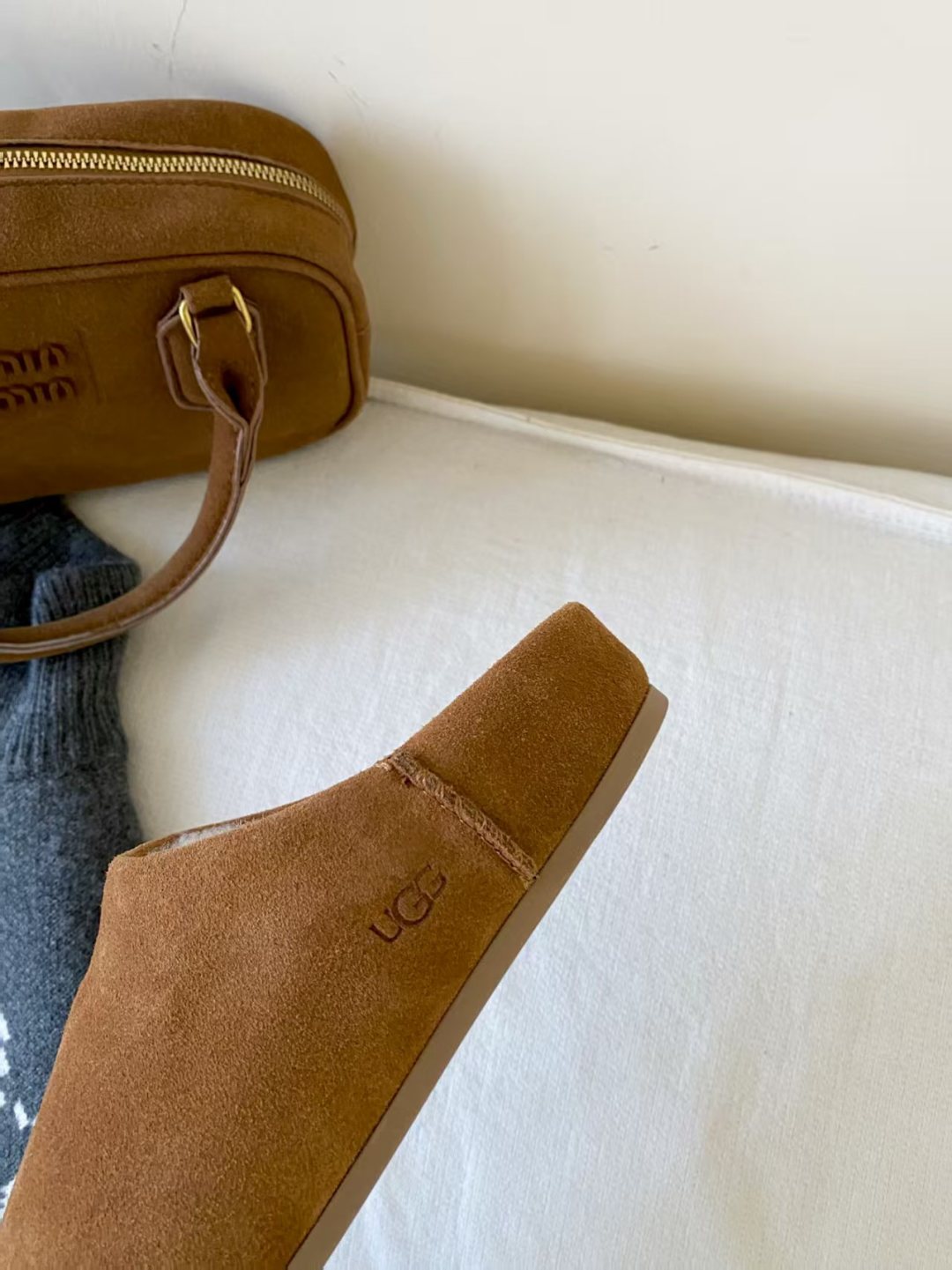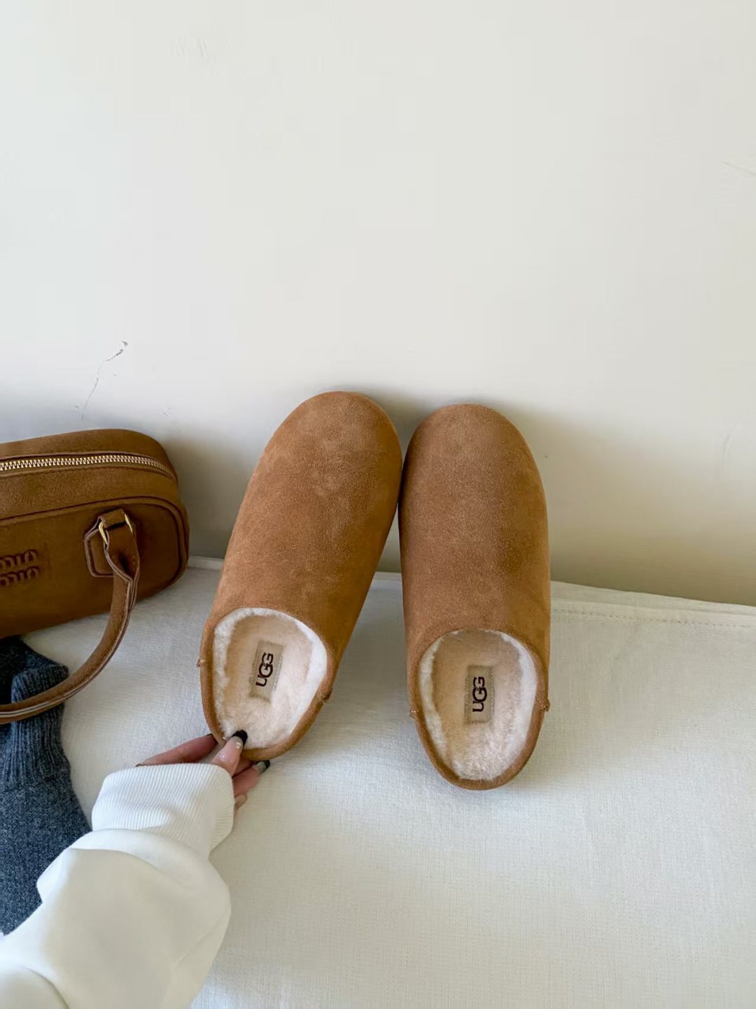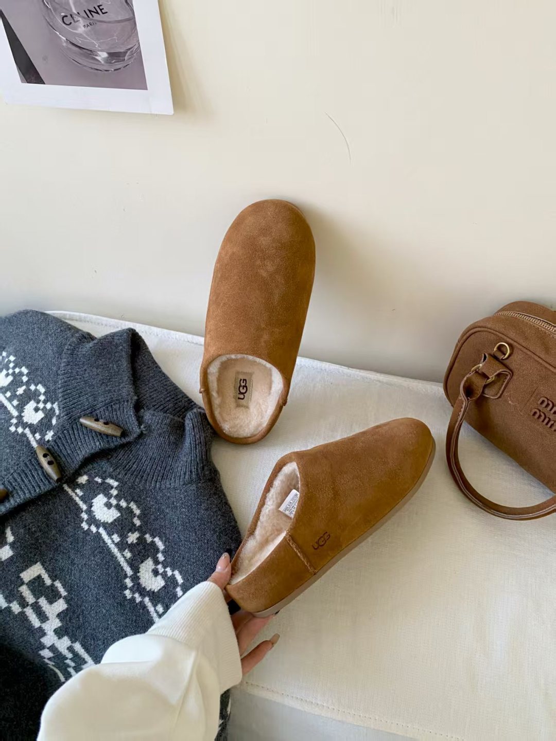 DetailUGG 2025 new product Little Potato, the new series of Elea slip-ons, half-slip on to unlock the relaxed feeling of the foot, lightweight and thin soles are always light and fashionable, and a new style is created casually. This feels very UGG, classic suede with soft wool lining, rubber outsole, and heat-pressed logo.