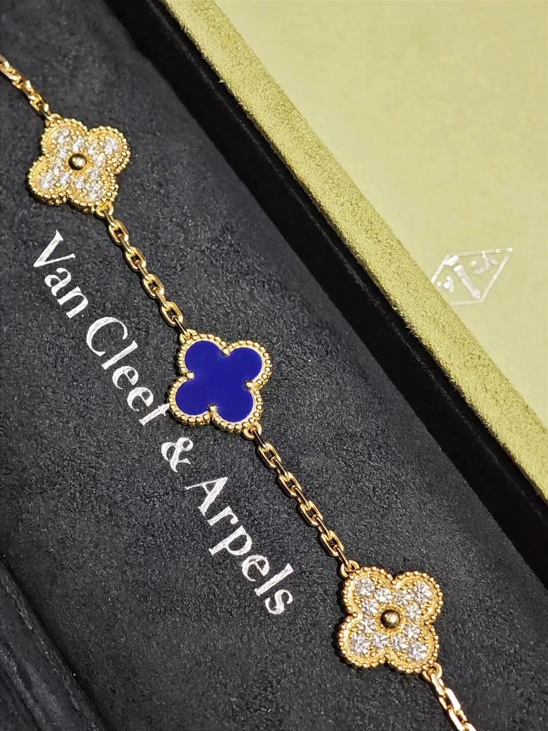 Van Cleef & Arpels Royal Blue Agate Interval Diamond Five-Flower Four-Leaf Clover Bracelet
