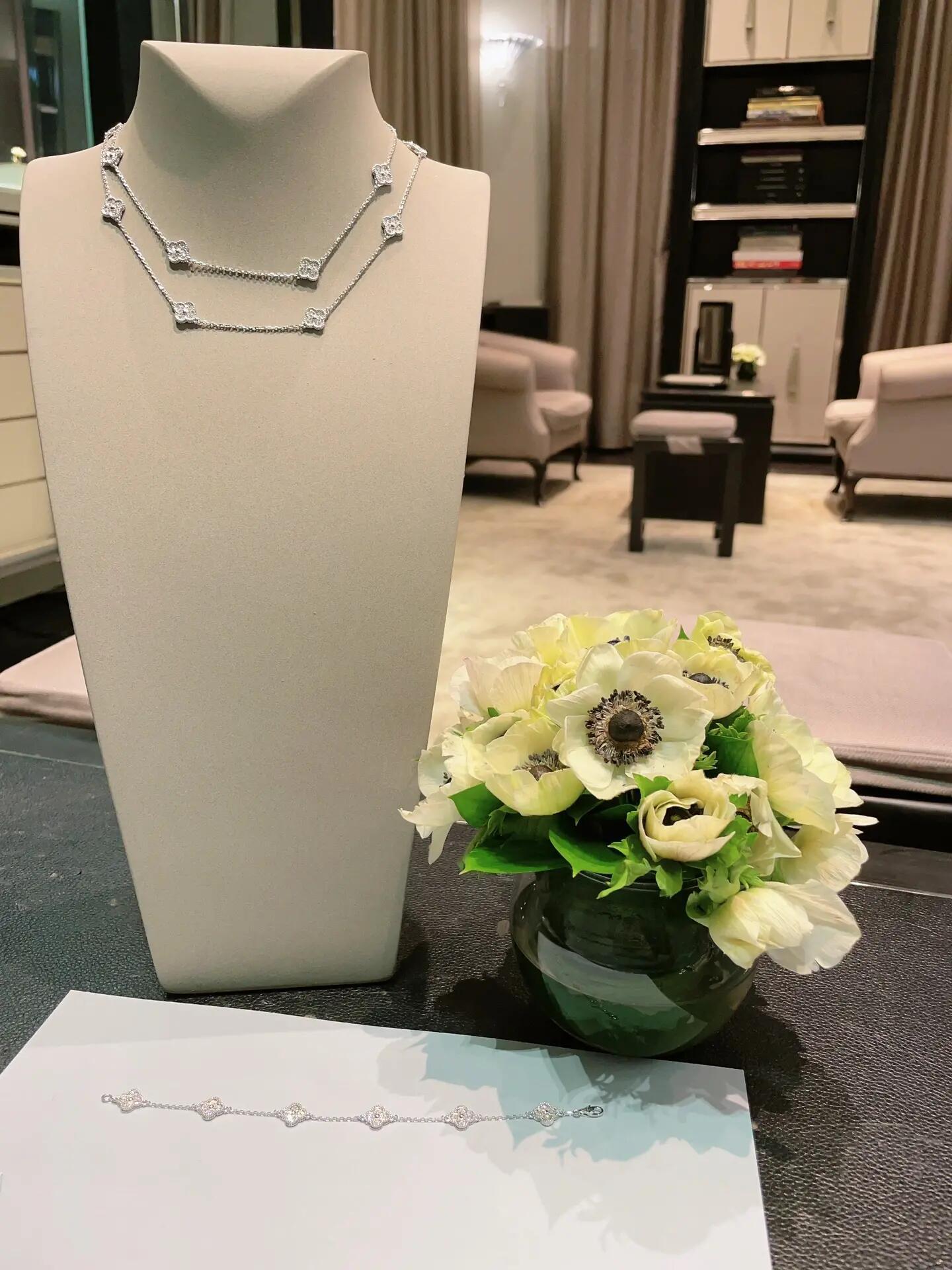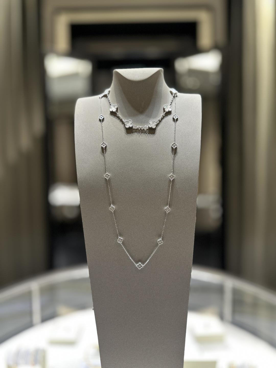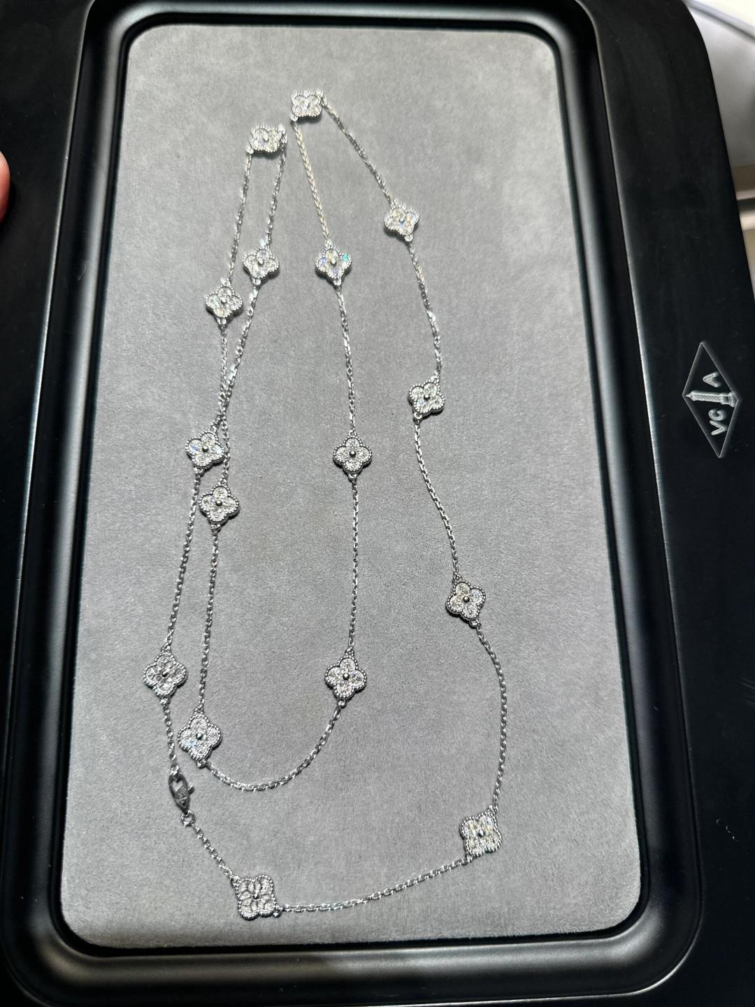 Home / Van Cleef & Arpels white gold 16 flower mini diamond necklace