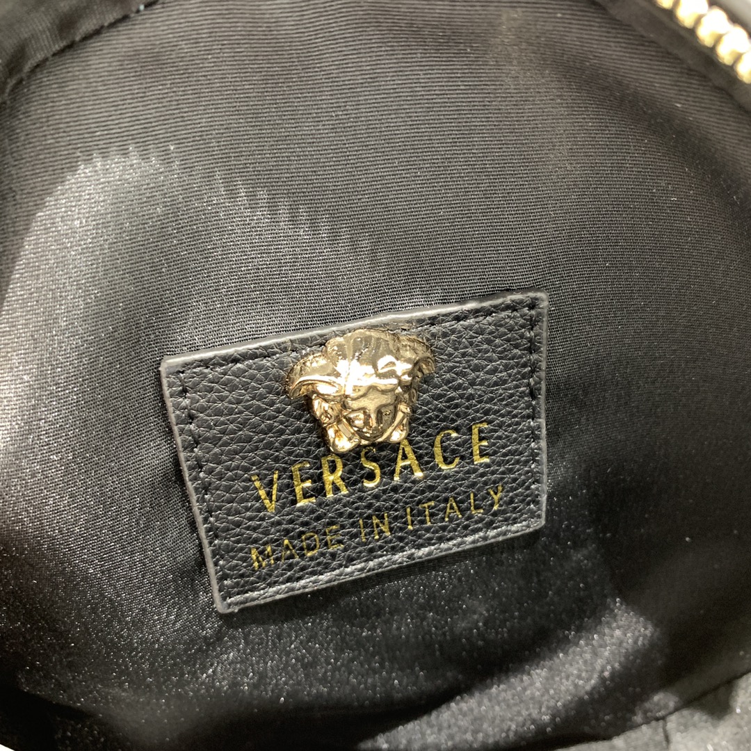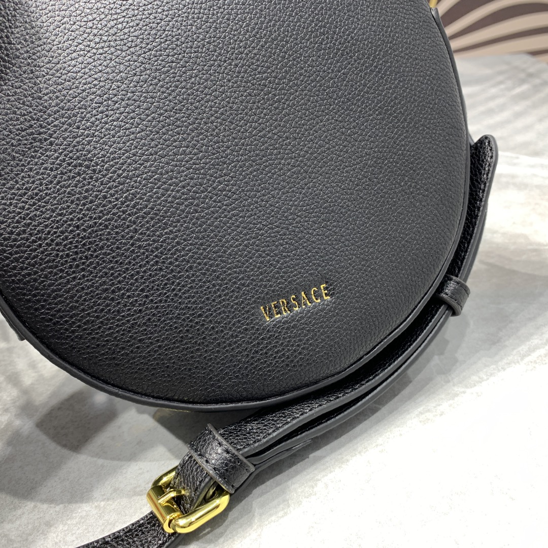 The round La Medusa crossbody bag has a playful silhouette, embellished with a chain inlay and La Medusa plaque – the brand’s signature that also appears at the entrance to the brand’s first headquarters in Milan. Crafted in Italy from grained leather, this modern crossbody bag features an adjustable shoulder strap.